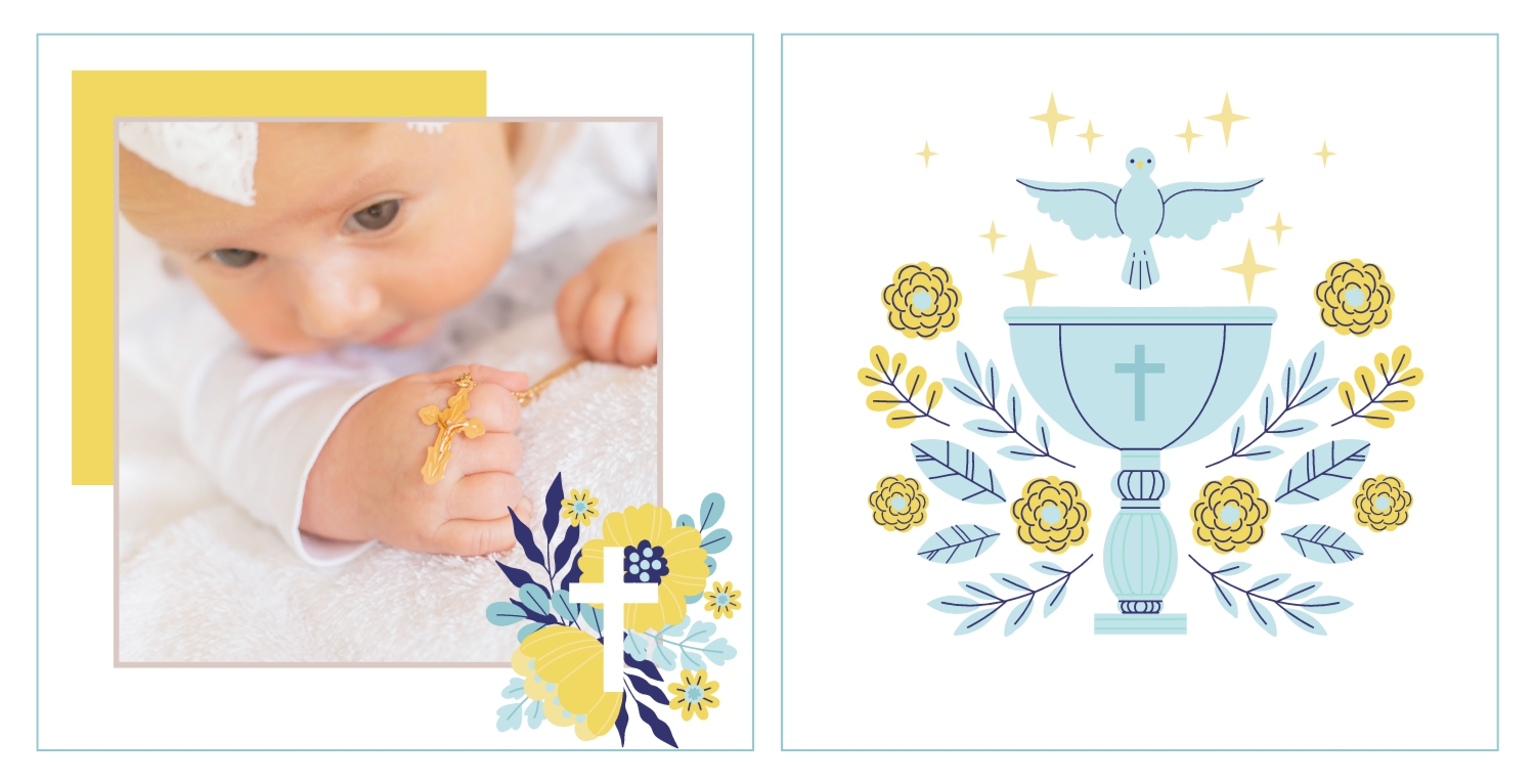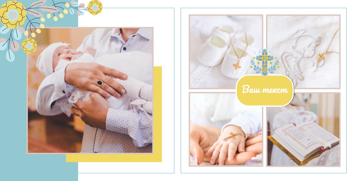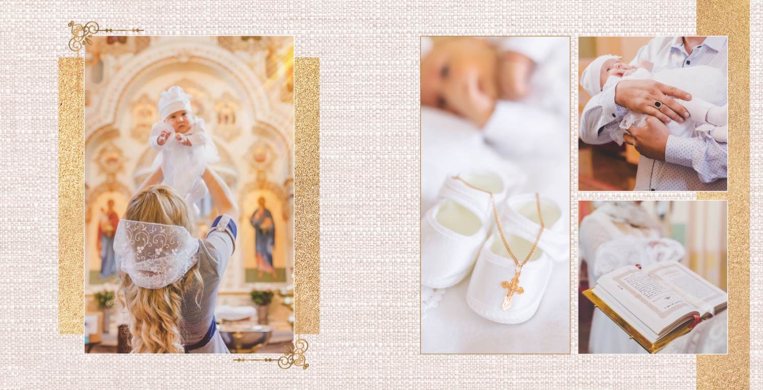 Готовий шаблон фотокниги в твердій обкладинці "Таїнство Хрещення" для дівчинки — це ніжний і зворушливий дизайн, який допоможе зберегти в пам'яті один з найважливіших днів у житті дитини. В оформленні переважають світлі, пастельні відтінки, витончені візерунки і символічні елементи, такі як ангели, свічки і хрестики, що створюють атмосферу духовності і урочистості. Такий шаблон ідеально підійде не тільки для батьків, які бажають відобразити моменти Хрещення своєї дочки, але і для професійних фотографів, які працюють з сімейними та церковними фотосесіями, а також для церковних друкарень і майстерень, що займаються оформленням пам'ятних альбомів. В онлайн-конструкторі цей квадратний шаблон можна легко адаптувати під особисті переваги. Кожна сторінка редагується: можна змінити розташування фотографій, додати нові знімки або прибрати непотрібні елементи. Тексти, підписи і вірші також піддаються налаштуванню — можна вибрати інший шрифт, змінити розмір букв або підібрати відтінки, які краще поєднуються з обраними фотографіями. Крім того, можна вставити імена хрещених батьків, дату і місце проведення таїнства, що додасть фотокнизі унікальність і зробить її по-справжньому персональної. Простота роботи в онлайн-конструкторі дозволяє створити професійно виглядає фотокнигу своїми руками, навіть якщо раніше не доводилося займатися дизайном. Завдяки широким можливостям редагування цей шаблон можна перетворити в неповторний сімейний альбом, який стане цінним спогадом на довгі роки.
