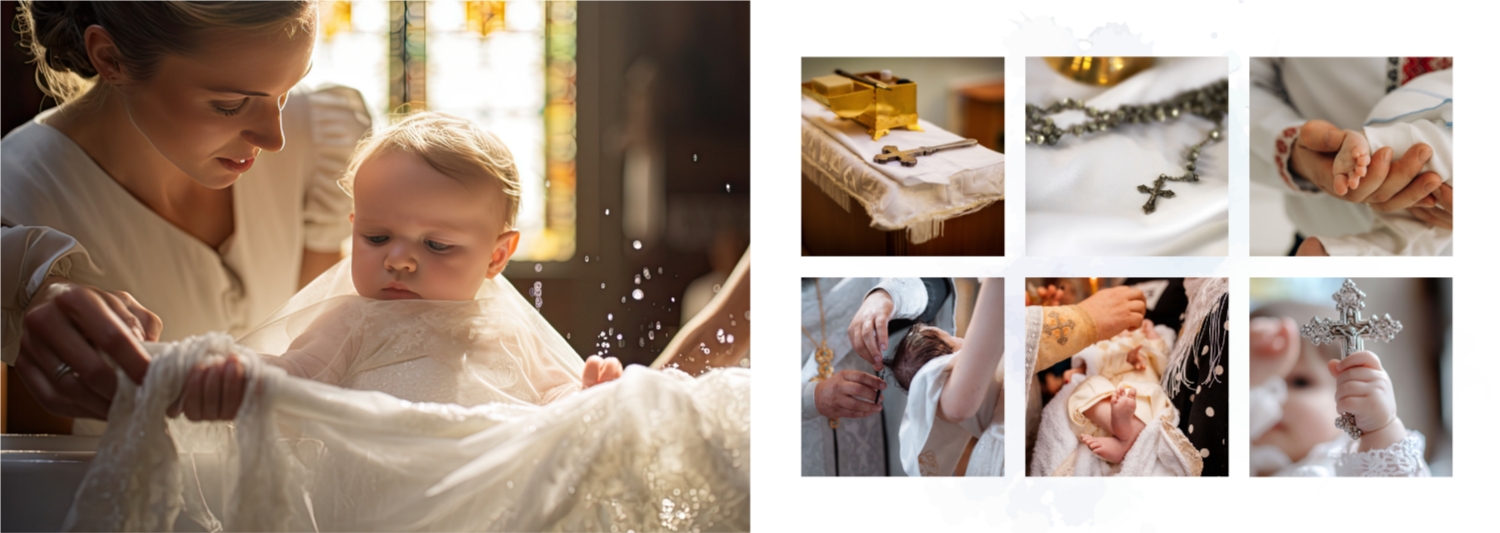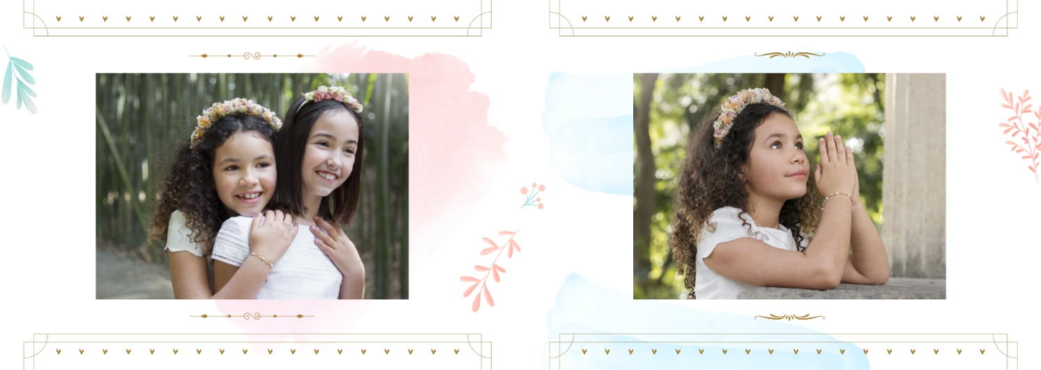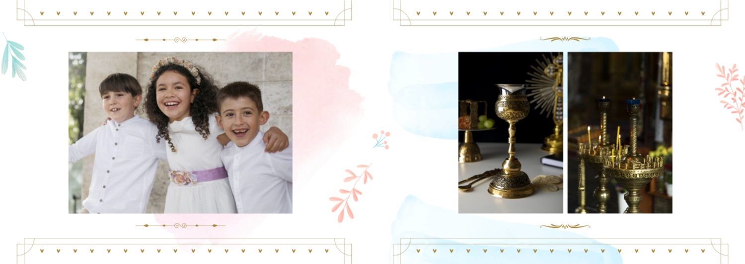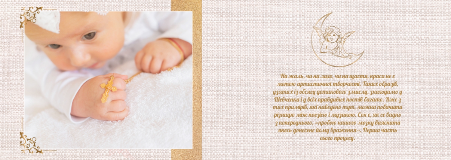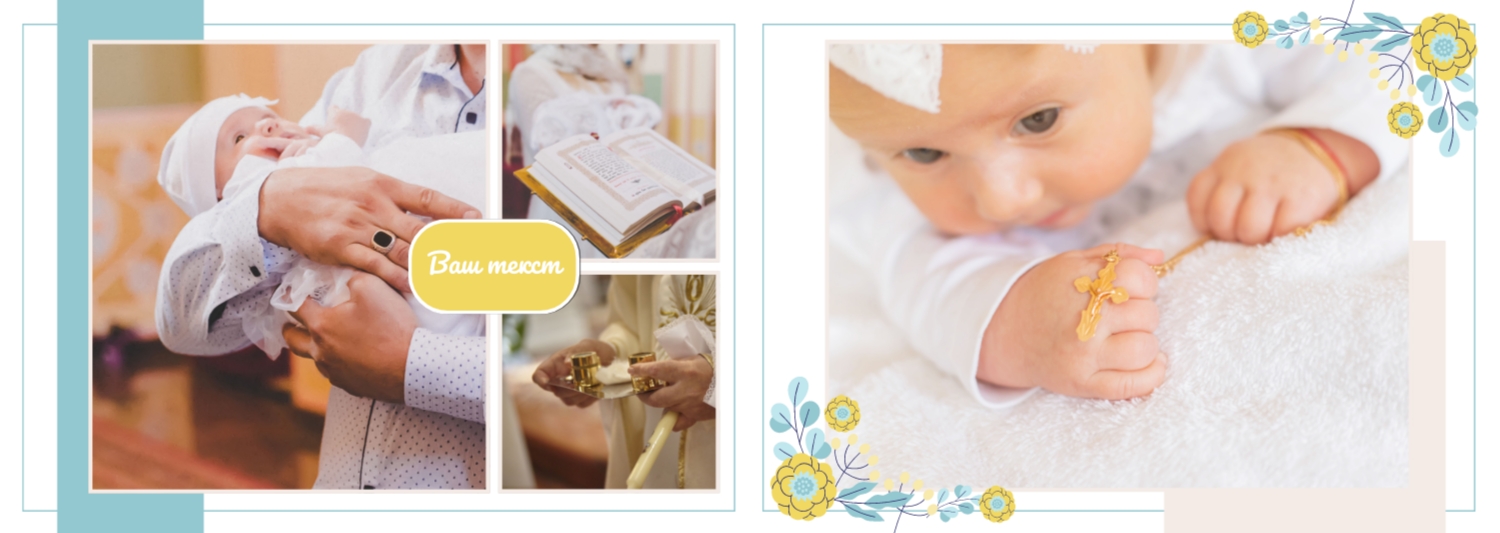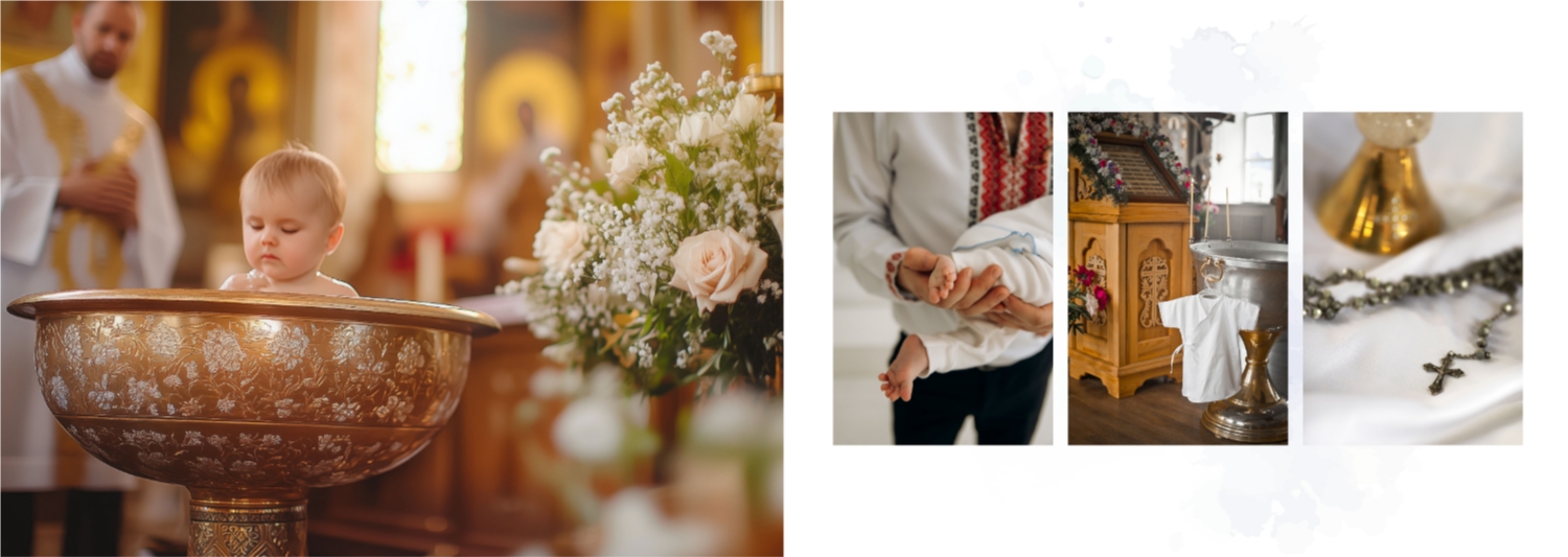 Готовий шаблон горизонтальної фотокниги в твердій обкладинці "Таїнство Хрещення" для дівчинки — це ніжний і зворушливий дизайн, який допоможе зберегти в пам'яті один з найважливіших днів у житті дитини. В оформленні переважають світлі, пастельні відтінки, витончені візерунки і символічні елементи, такі як ангели, свічки і хрестики, що створюють атмосферу духовності і урочистості. Такий шаблон ідеально підійде не тільки для батьків, які бажають відобразити моменти Хрещення своєї дочки, але і для професійних фотографів, які працюють з сімейними та церковними фотосесіями, а також для церковних друкарень і майстерень, що займаються оформленням пам'ятних альбомів. В онлайн-конструкторі цей шаблон можна легко адаптувати під особисті переваги. Кожна сторінка редагується: можна змінити розташування фотографій, додати нові знімки або прибрати непотрібні елементи. Тексти, підписи і вірші також піддаються налаштуванню — можна вибрати інший шрифт, змінити розмір букв або підібрати відтінки, які краще поєднуються з обраними фотографіями. Крім того, можна вставити імена хрещених батьків, дату і місце проведення таїнства, що додасть фотокнизі унікальність і зробить її по-справжньому персональної.
