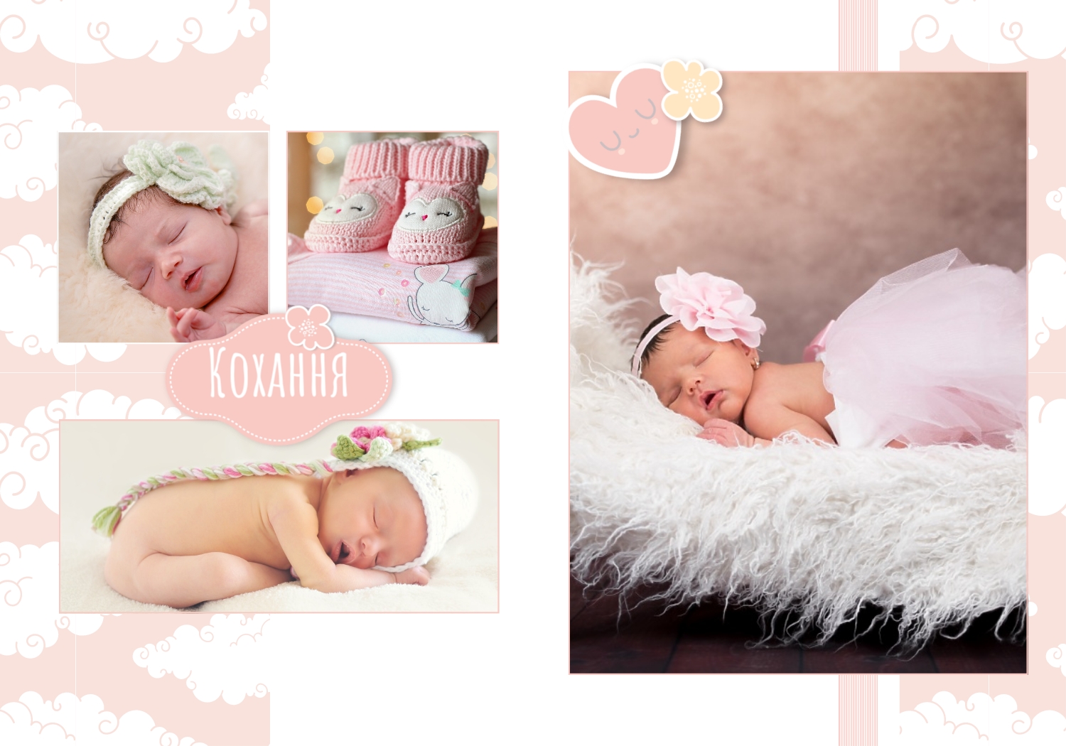 Готовий шаблон панорамної фотокниги для фото новонародженого "маленька принцеса" - це ніжний і зворушливий макет, який допоможе зберегти найцінніші моменти перших днів життя малятка. Дизайн виконаний в м'яких пастельних тонах з витонченими декоративними елементами: повітряними хмарами, милими іграшками, квітковими візерунками і казковими мотивами. Цей шаблон можна використовувати не тільки в особистих цілях, але і в професійній сфері. Він стане прекрасною основою для роботи фотографів, дизайнерів і фахівців, що займаються оформленням дитячих фотоальбомів. Також він підійде для співробітників фотостудій, які пропонують клієнтам створення ексклюзивних книг з фотографіями малюків. В онлайн-конструкторі макет легко редагується, дозволяючи зробити його дійсно унікальним. Можна замінити фон, додати додаткові декоративні елементи або прибрати непотрібні деталі. Поля з текстом і фотографіями повністю настроюються: можна змінити розмір і розташування знімків, вибрати відповідний шрифт і колір підписів, додати теплі побажання або забавні коментарі. Фотографії зручно завантажуються прямо в конструктор, де їх можна обрізати, відредагувати і розмістити в потрібному порядку.