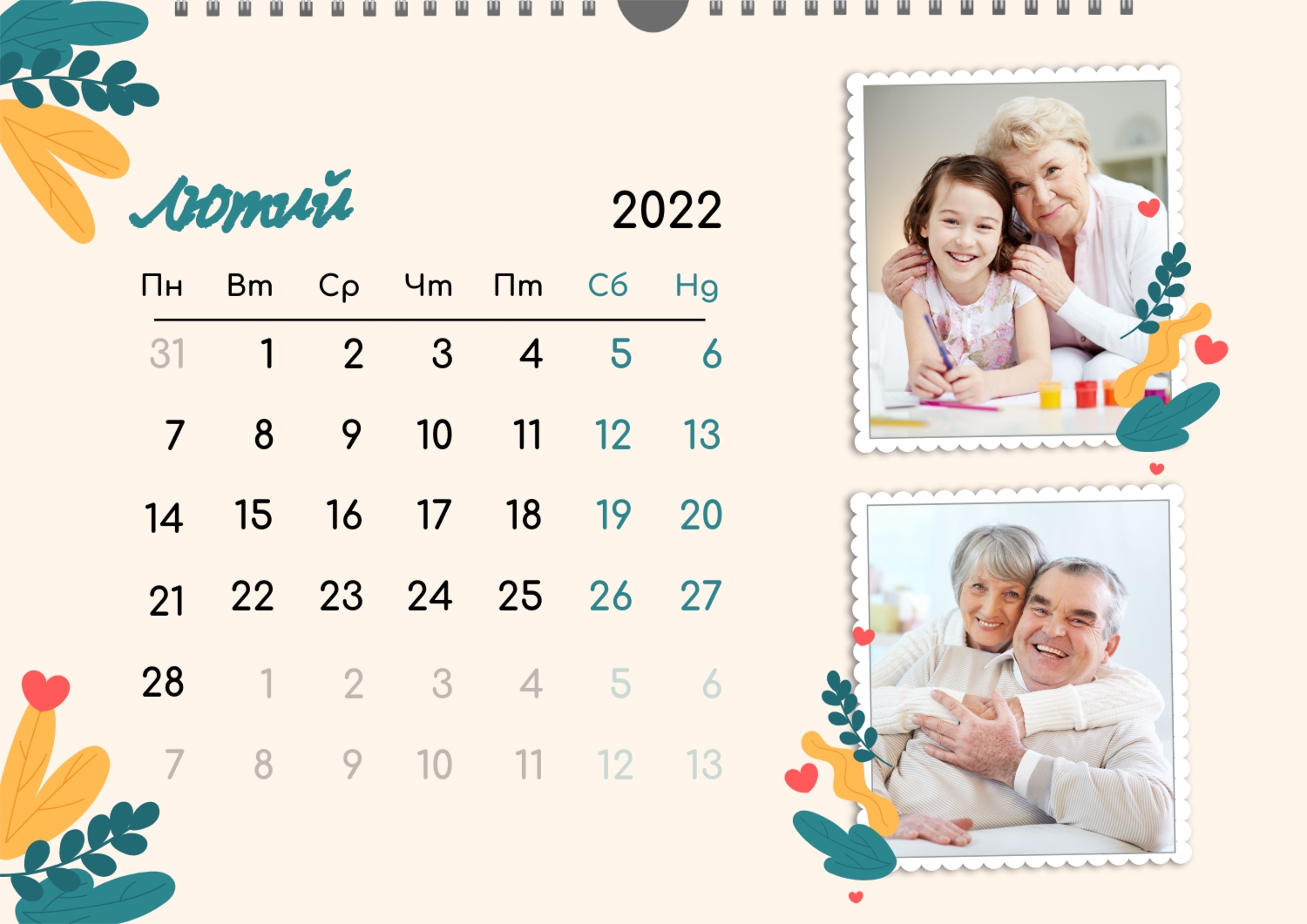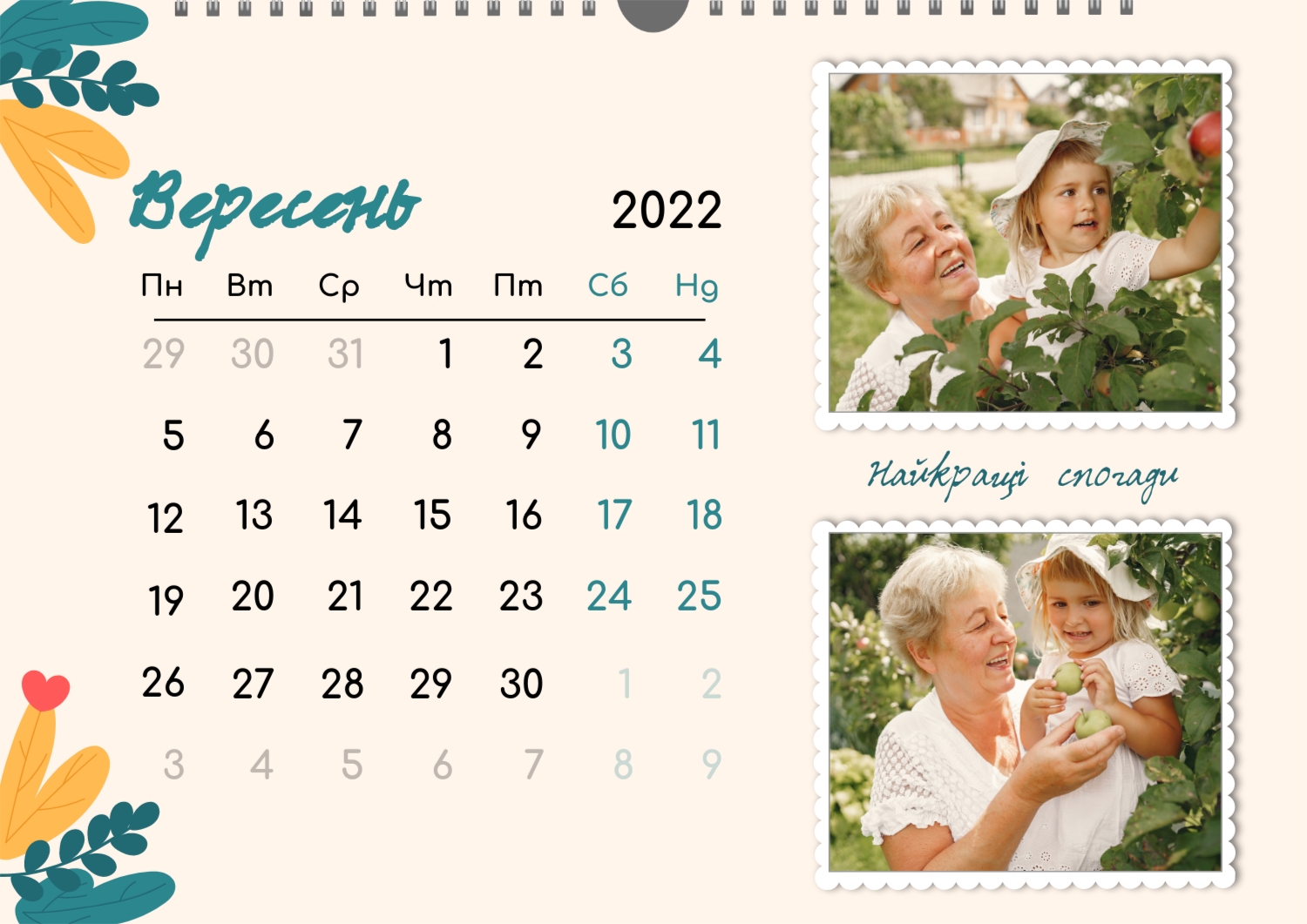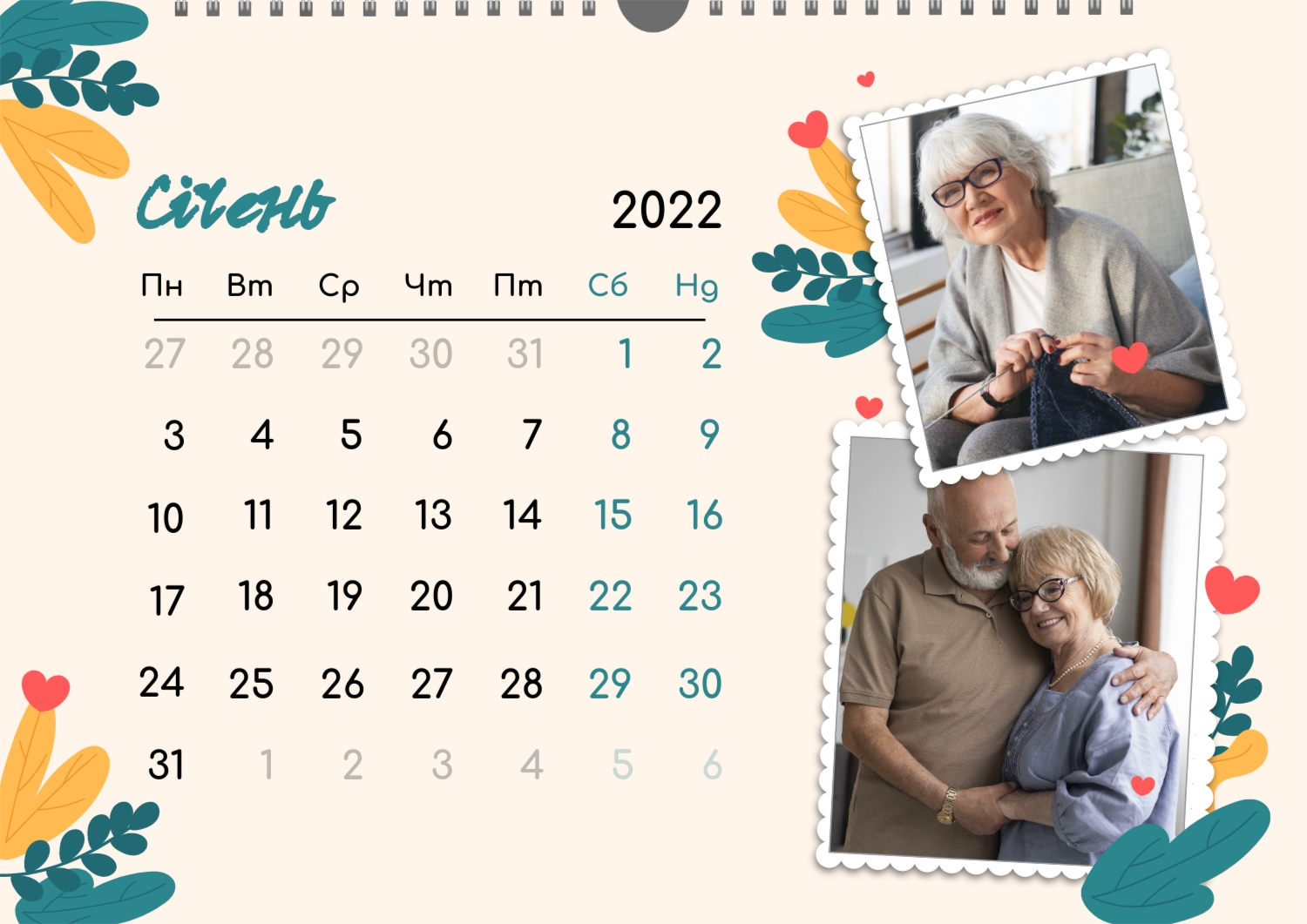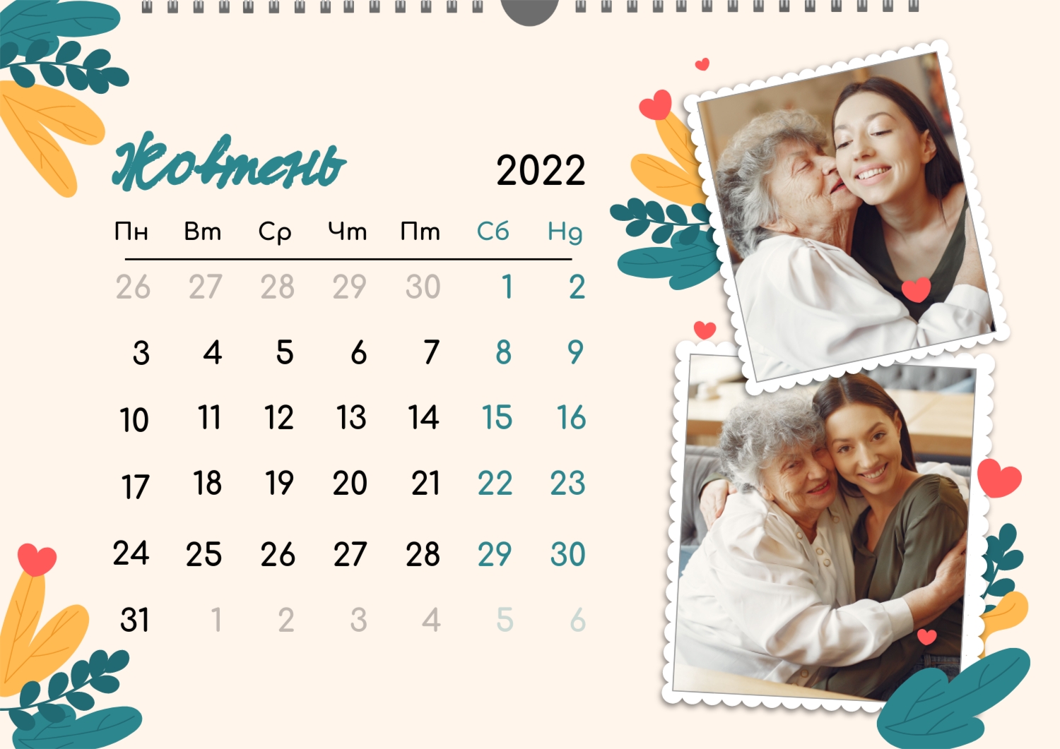 Готовий шаблон настінного горизонтального календаря для коханої мами-це зворушлива і красива основа для створення персонального подарунка, який наповнений теплом і турботою. В онлайн-конструкторі шаблон легко перетворюється в унікальний продукт. Можна вставити сімейні фотографії, вибрати улюблені моменти з життя, додати написи з теплими словами, змінити кольори і шрифти під індивідуальні переваги. Кожен місяць можна оформити в своєму стилі, вставляючи фото або побажання, пов'язані з певним часом року або важливими сімейними датами. Також доступно додавання власних свят і заміток прямо на календарну сітку. Конструктор дозволяє працювати інтуїтивно, навіть тим, хто вперше створює дизайн з нуля. Це дає повну свободу творчості і можливість створити по-справжньому унікальний настінний календар, який буде радувати маму кожен день протягом року.