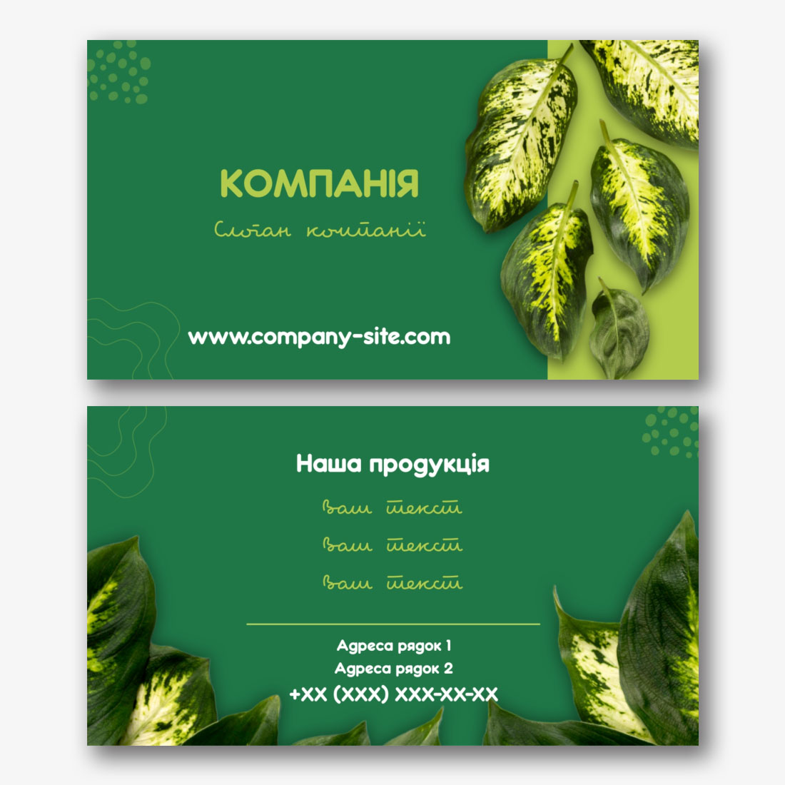 Безкоштовний шаблон візитки квітникаря, флориста, квіткового магазину. Створіть макет своїми руками у конструкторі візиток.