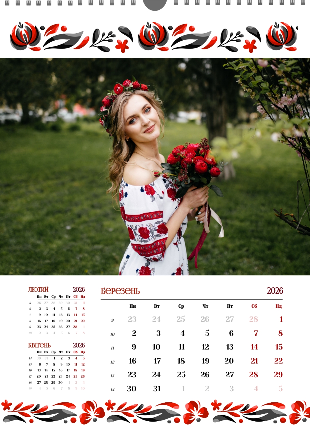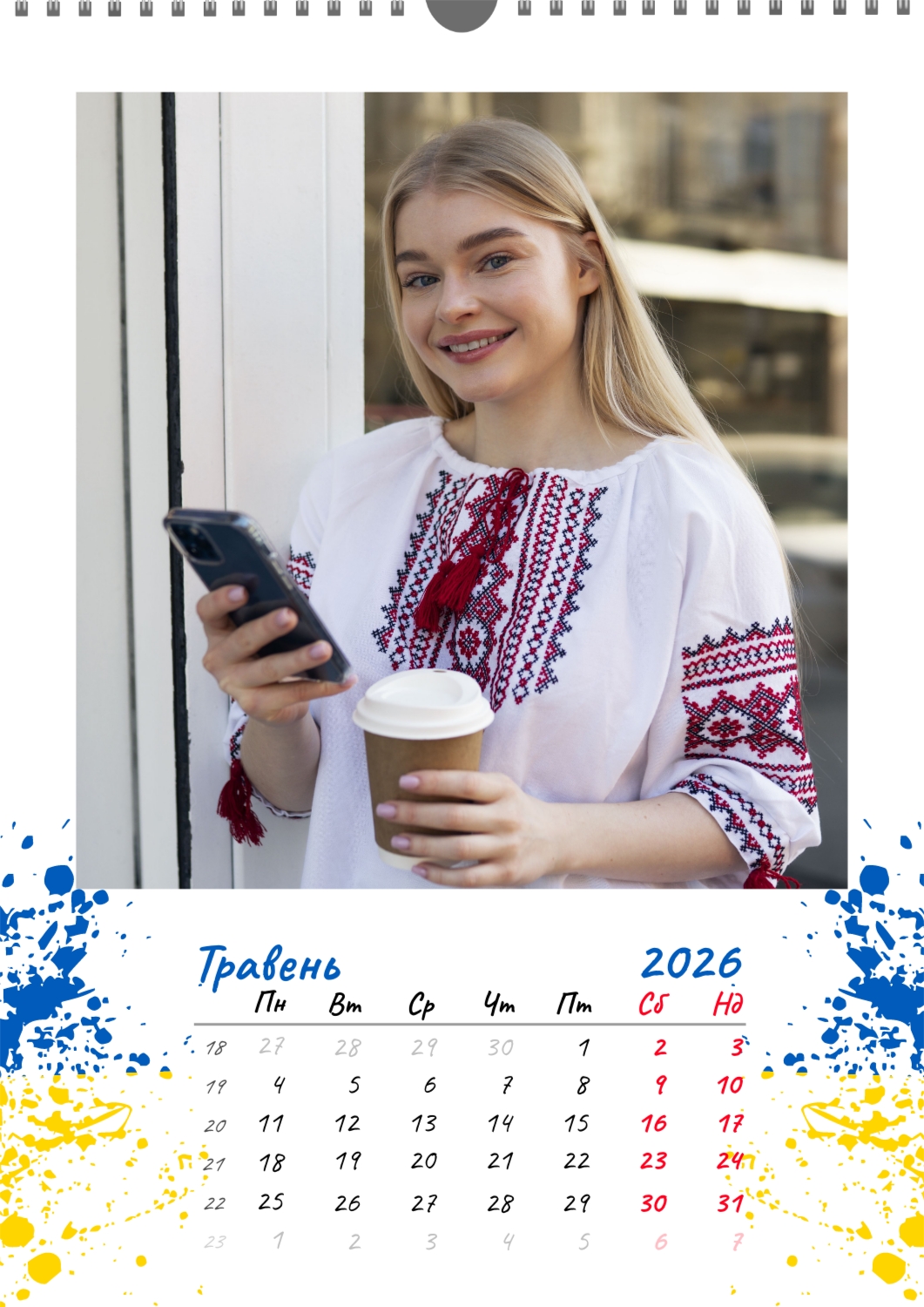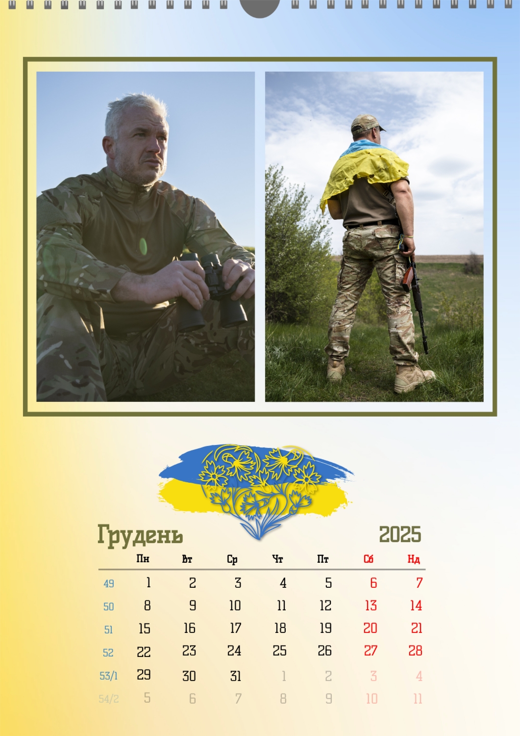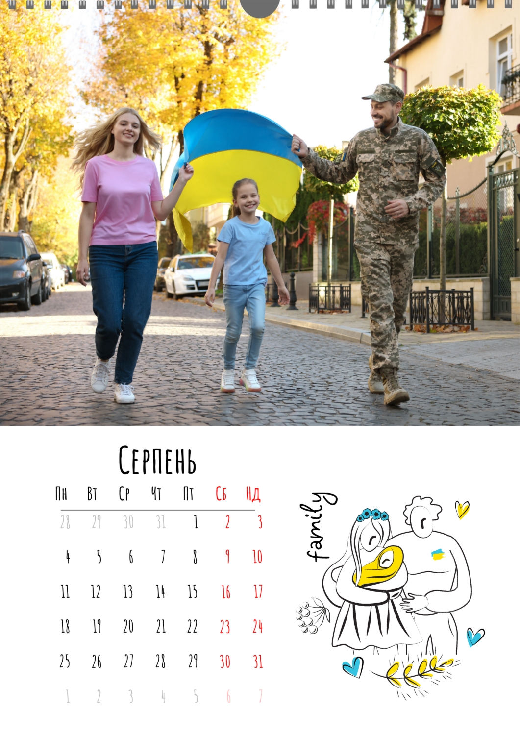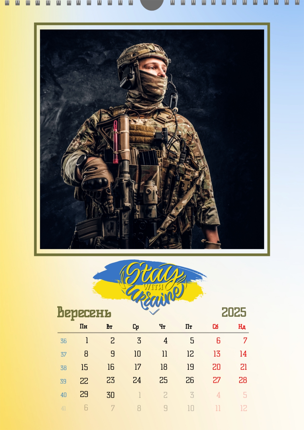 Готовий шаблон українського календаря для військових — це патріотичне та змістовне оформлення, яке несе у собі не лише практичну функцію, а й емоційне посилання. Такий календар особливо актуальний для військовослужбовців, ветеранів, волонтерів, представників оборонної сфери та всіх, хто так чи інакше пов'язаний із армією чи військовими організаціями. В онлайн-конструкторі цей шаблон можна легко адаптувати під конкретні цілі та потреби. Ви можете замінити фотографії на власні знімки — як портретні, так і групові, змінити підписи, додати індивідуальні тексти або важливі дати, пов'язані з військовою службою, пам'ятними подіями або особистими досягненнями. Також є можливість редагувати шрифти, кольори, оформлення сітки календаря і навіть додати власні цитати або емблеми. Інтерфейс конструктора інтуїтивно зрозумілий, що дозволяє швидко внести правки та побачити результат у реальному часі. Це чудовий спосіб створити персоналізований подарунок для бійця, командира чи цілого підрозділу — календар, у якому відображено не лише структуру місяців, а й повагу, подяку та пам'ять. Такий шаблон стає не просто друкованим виробом, а важливим символом підтримки та гордості.