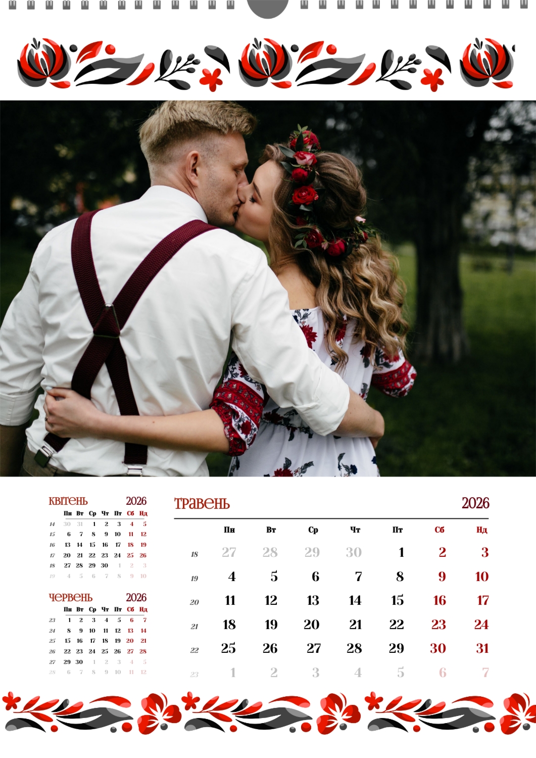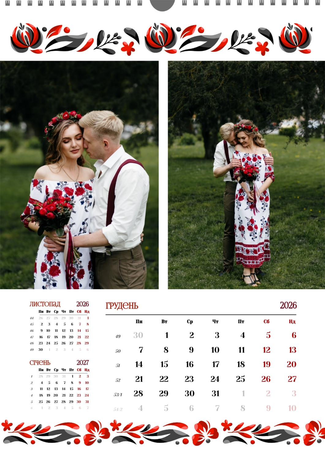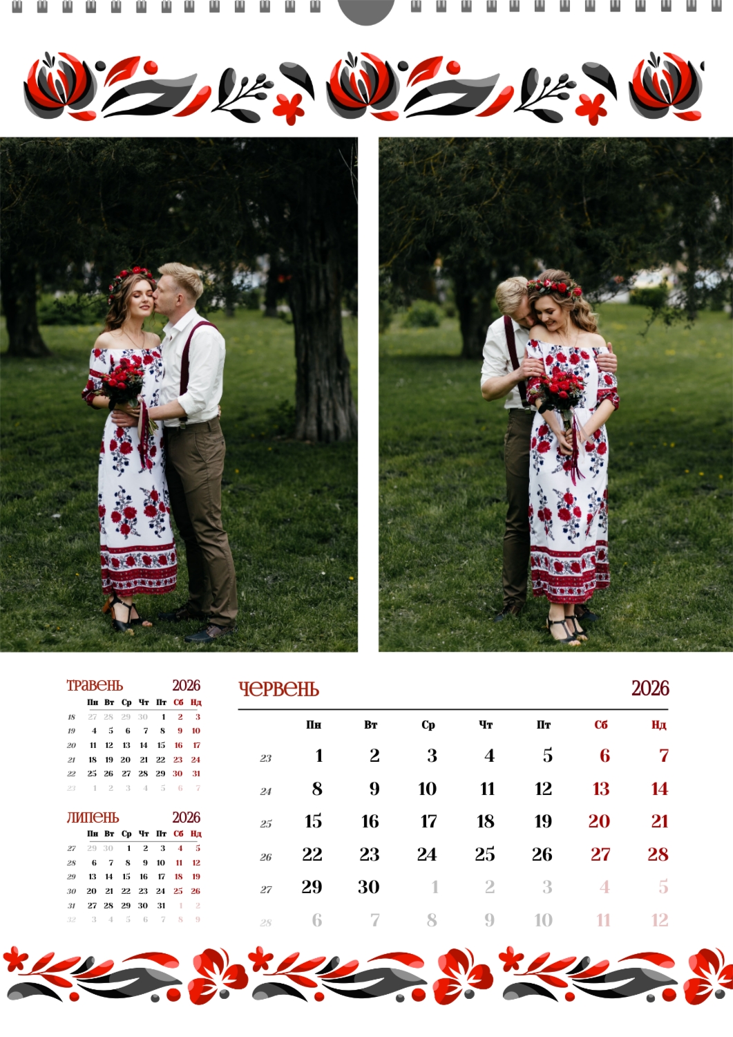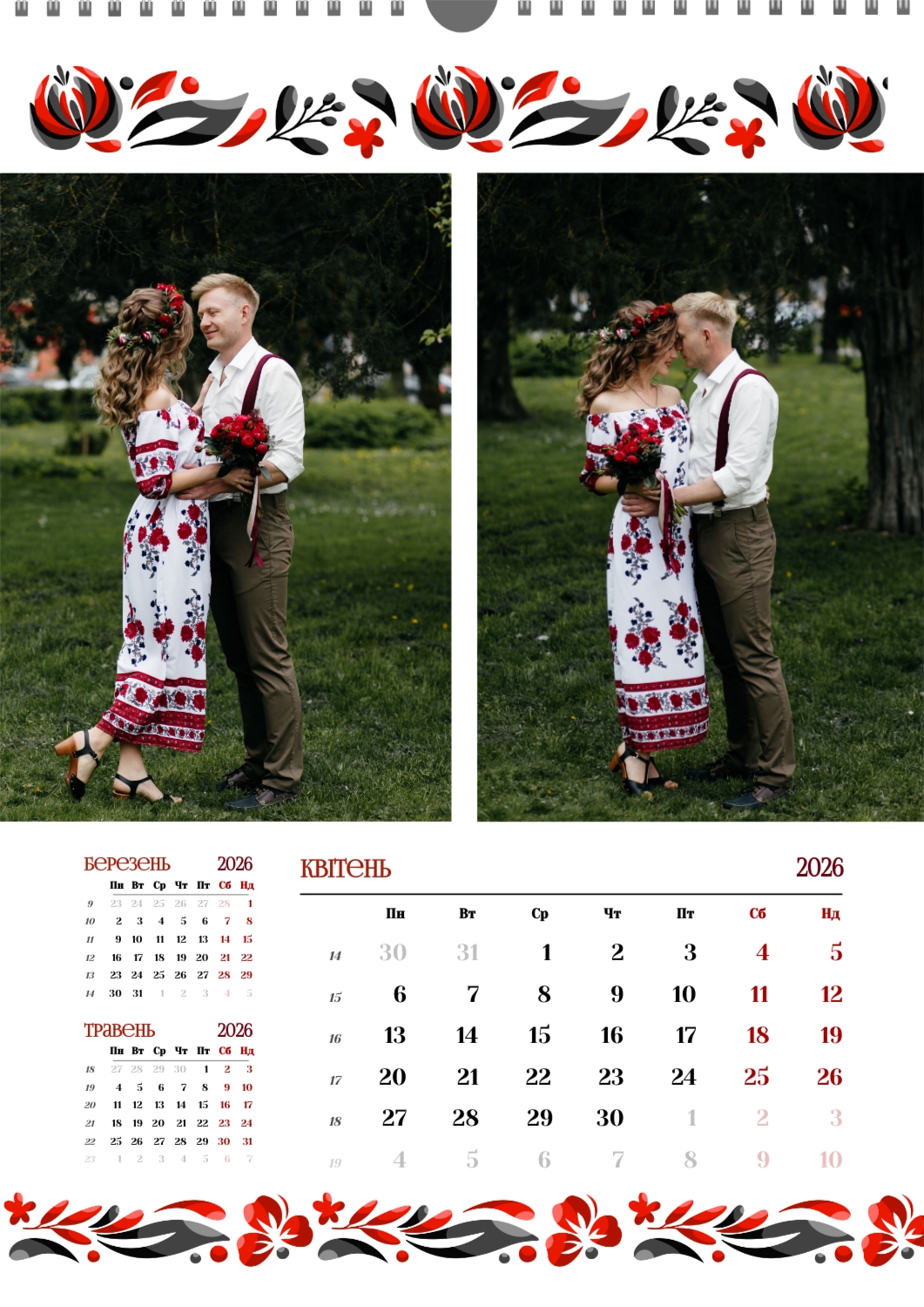 Готовий шаблон українського календаря для військових — це патріотичне та змістовне оформлення, яке несе у собі не лише практичну функцію, а й емоційне посилання. Такий календар особливо актуальний для військовослужбовців, ветеранів, волонтерів, представників оборонної сфери та всіх, хто так чи інакше пов'язаний із армією чи військовими організаціями. В онлайн-конструкторі цей шаблон можна легко адаптувати під конкретні цілі та потреби. Ви можете замінити фотографії на власні знімки — як портретні, так і групові, змінити підписи, додати індивідуальні тексти або важливі дати, пов'язані з військовою службою, пам'ятними подіями або особистими досягненнями. Також є можливість редагувати шрифти, кольори, оформлення сітки календаря і навіть додати власні цитати або емблеми. Інтерфейс конструктора інтуїтивно зрозумілий, що дозволяє швидко внести правки та побачити результат у реальному часі. Це чудовий спосіб створити персоналізований подарунок для бійця, командира чи цілого підрозділу — календар, у якому відображено не лише структуру місяців, а й повагу, подяку та пам'ять. Такий шаблон стає не просто друкованим виробом, а важливим символом підтримки та гордості.