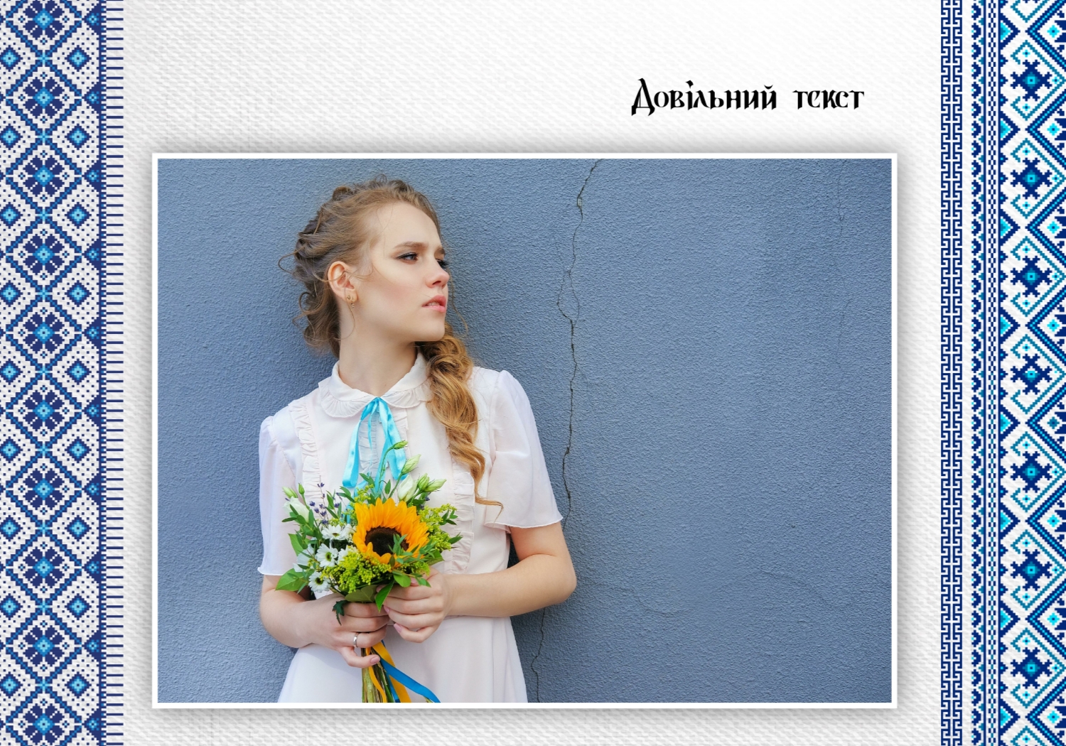 Готовий шаблон панорамної вертикальної фотокниги з українським орнаментом — це стильне та автентичне рішення для тих, хто хоче зберегти спогади у дусі національних традицій. Головна перевага цього шаблону – гнучкість редагування в онлайн-конструкторі. Користувач може легко змінювати фотографії, редагувати підписи, доповнювати сторінки своїми коментарями, додавати нові блоки та елементи декору. У кожному розділі можна змінити фон, експериментувати з палітрою або вставити власні зображення. Орнамент може бути посилений або, навпаки, зроблений стриманішим — все залежить від настрою та цілей фотокниги. Онлайн-конструктор дає повну свободу творчості: достатньо вибрати цей шаблон і розпочати оформлення, крок за кроком перетворюючи його на персональну історію. Навіть без досвіду роботи в графічних редакторах можна легко створити гармонійну фотокнигу з національним характером.
