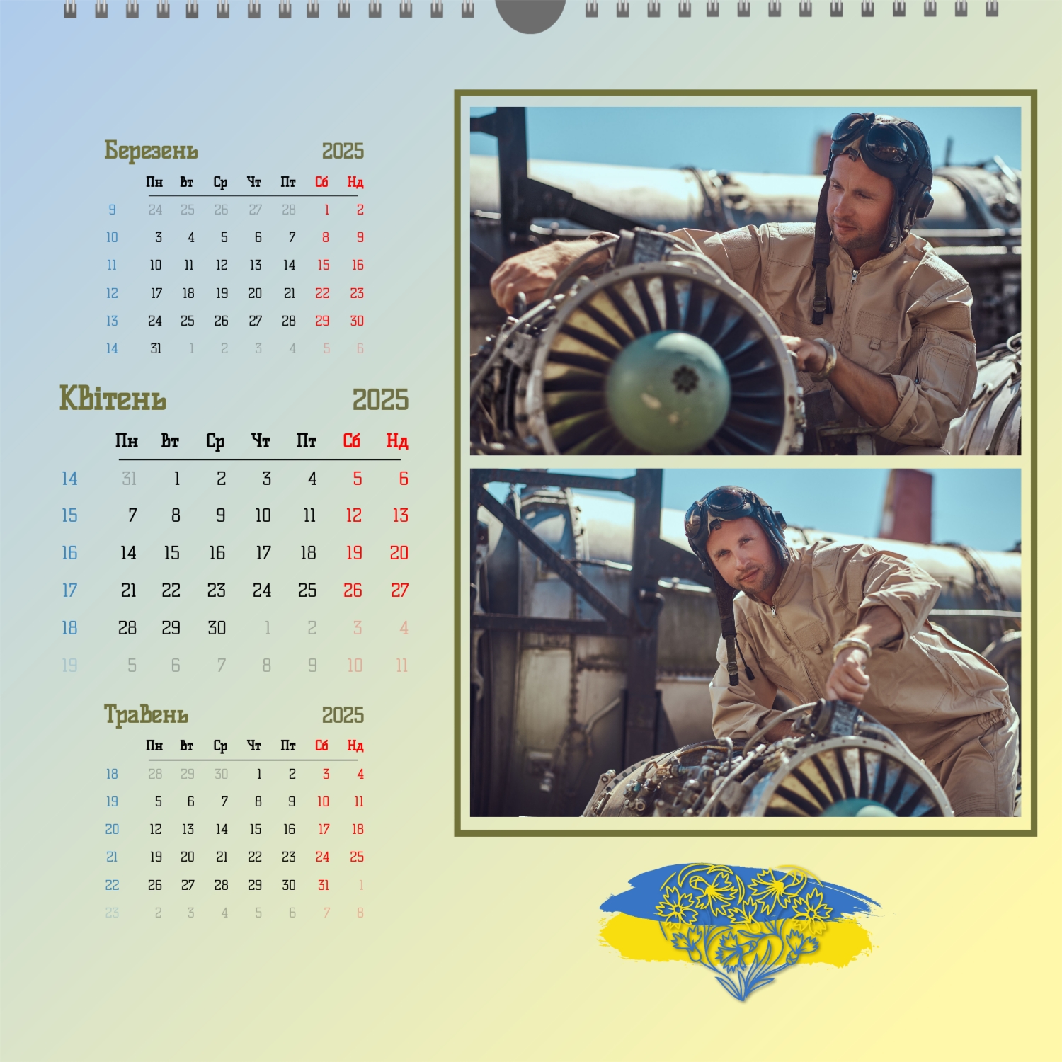 Готовий шаблон українського настінного квадратного календаря "Наша історія" з орнаментом – це гармонійне поєднання національного стилю та теплої сімейної атмосфери. Він прикрашений традиційними українськими візерунками, що символізують єдність, родинні зв'язки та повагу до культурної спадщини. Такий календар особливо доречний для сімейних фотоісторій, але також чудово підійде для майстрів хендмейду, етнодизайнерів, працівників у сфері культури, педагогів, етнографів та всіх, хто цінує українську ідентичність та хоче наголосити на цьому в оформленні. В онлайн-конструкторі цей шаблон можна легко адаптувати до особистих потреб. Користувач може завантажити свої фотографії, додати підписи до кожного місяця, змінити розташування елементів, вибрати інший стиль шрифту або підкоригувати колірну гаму, зберігши народний колорит. Всі зміни відбуваються прямо в браузері, без необхідності встановлювати програми - достатньо пари кліків, щоб створити по-справжньому індивідуальний та теплий календар.