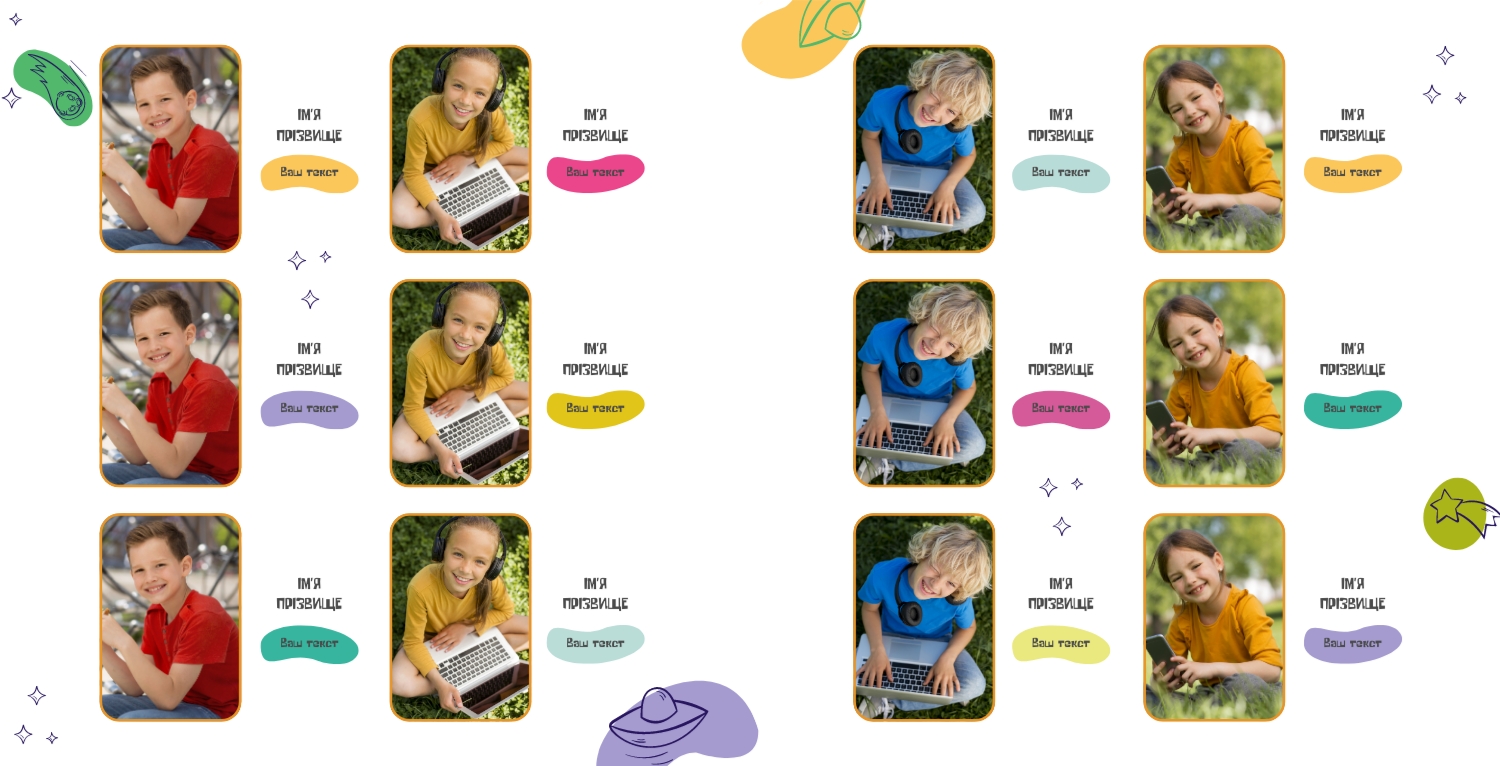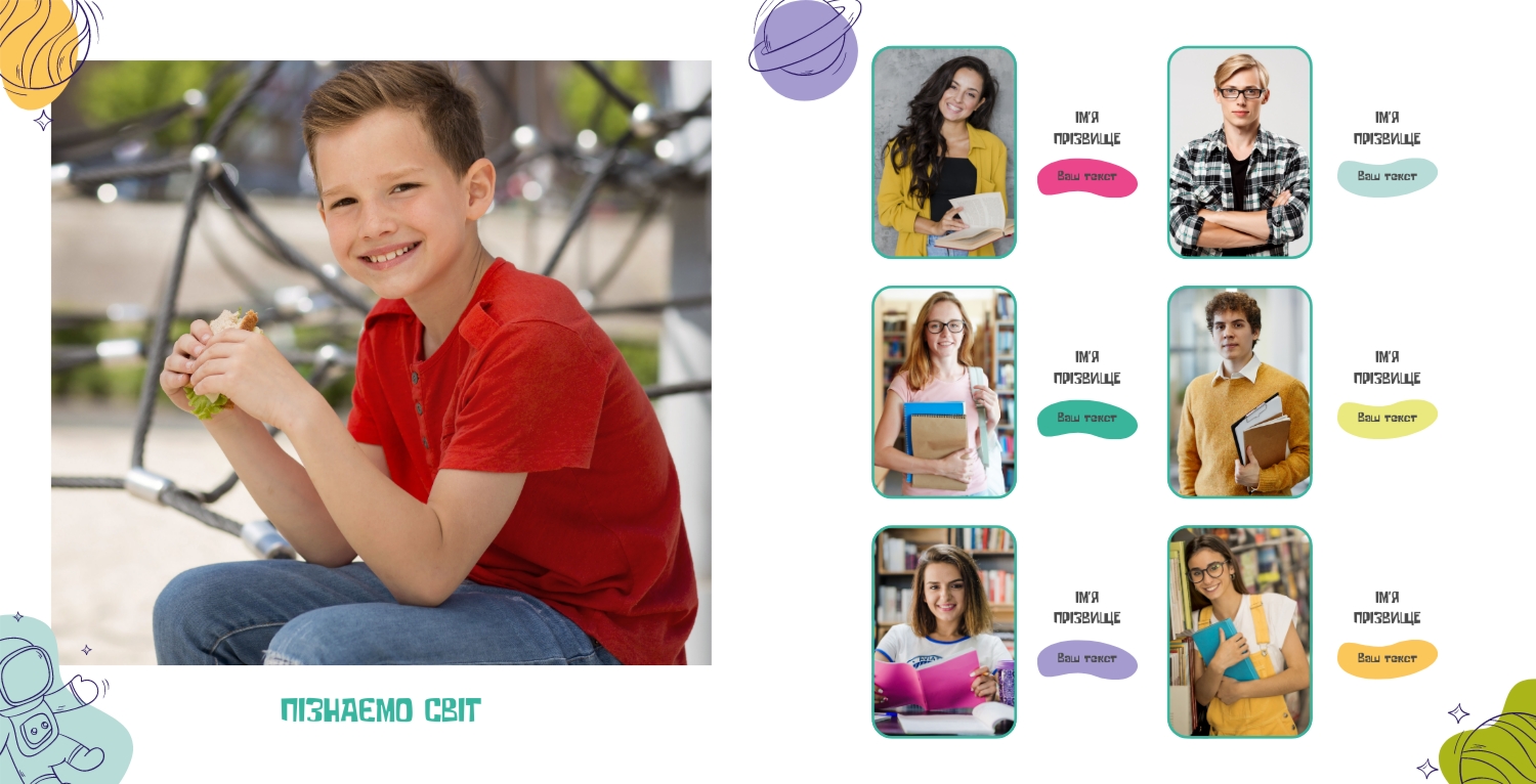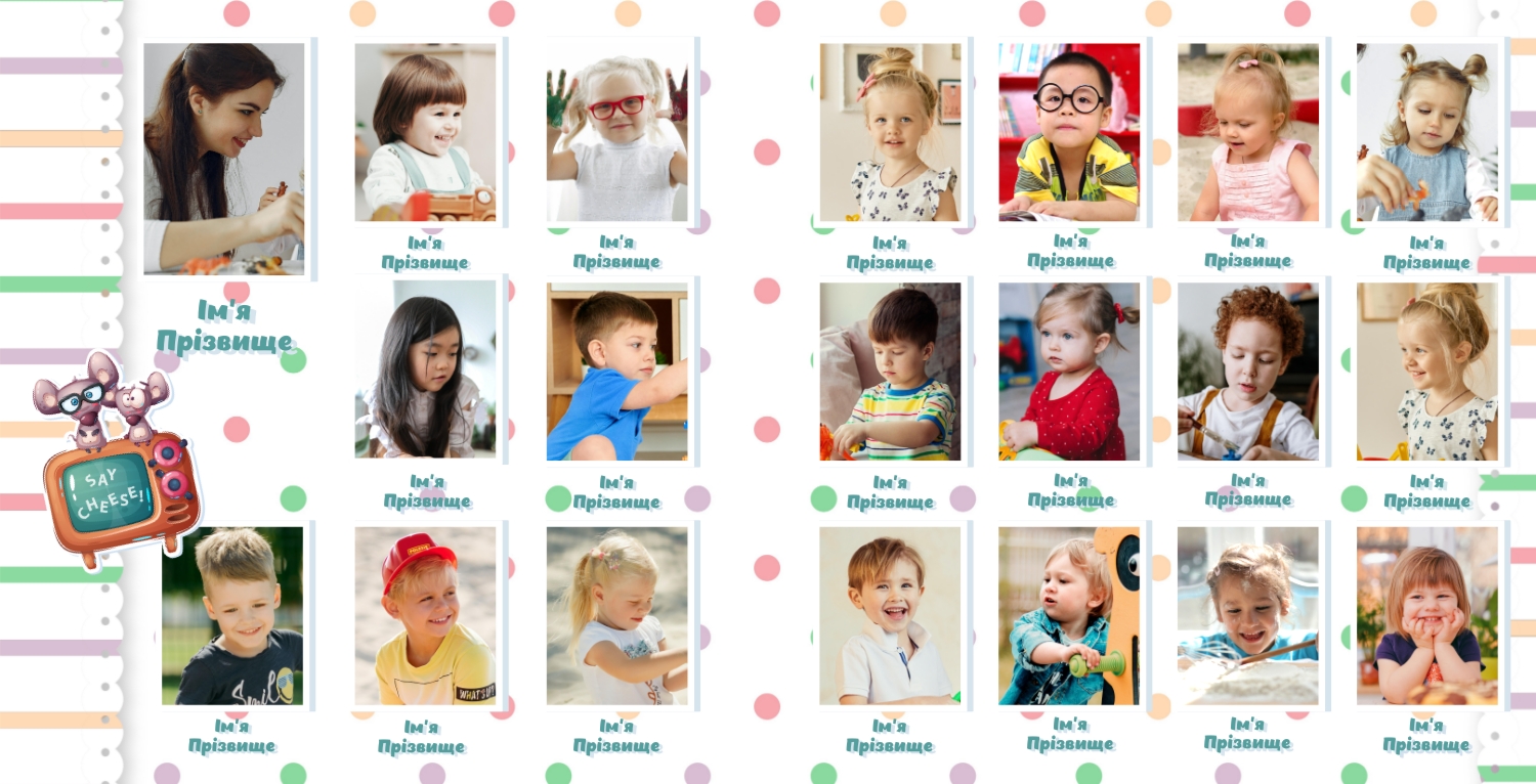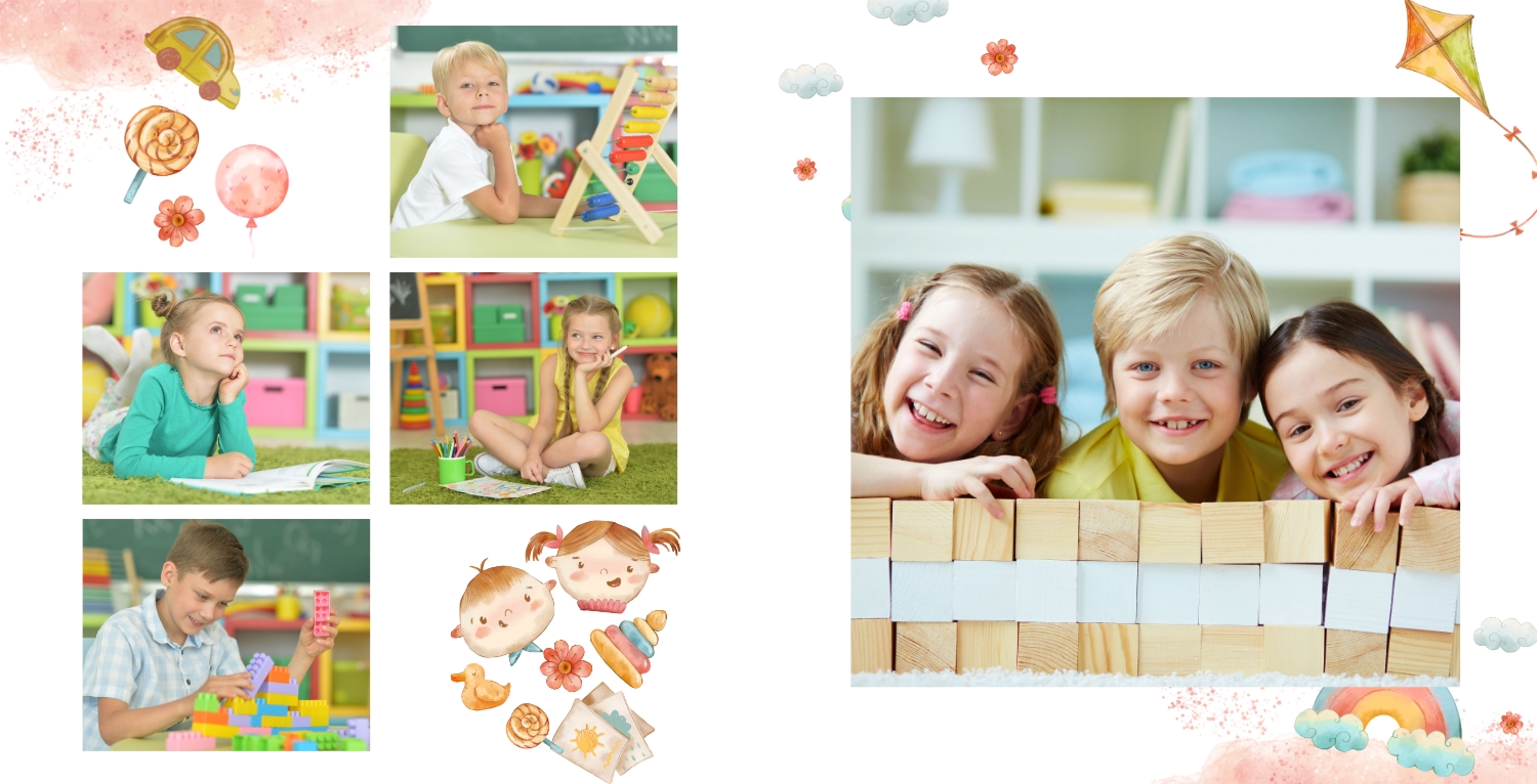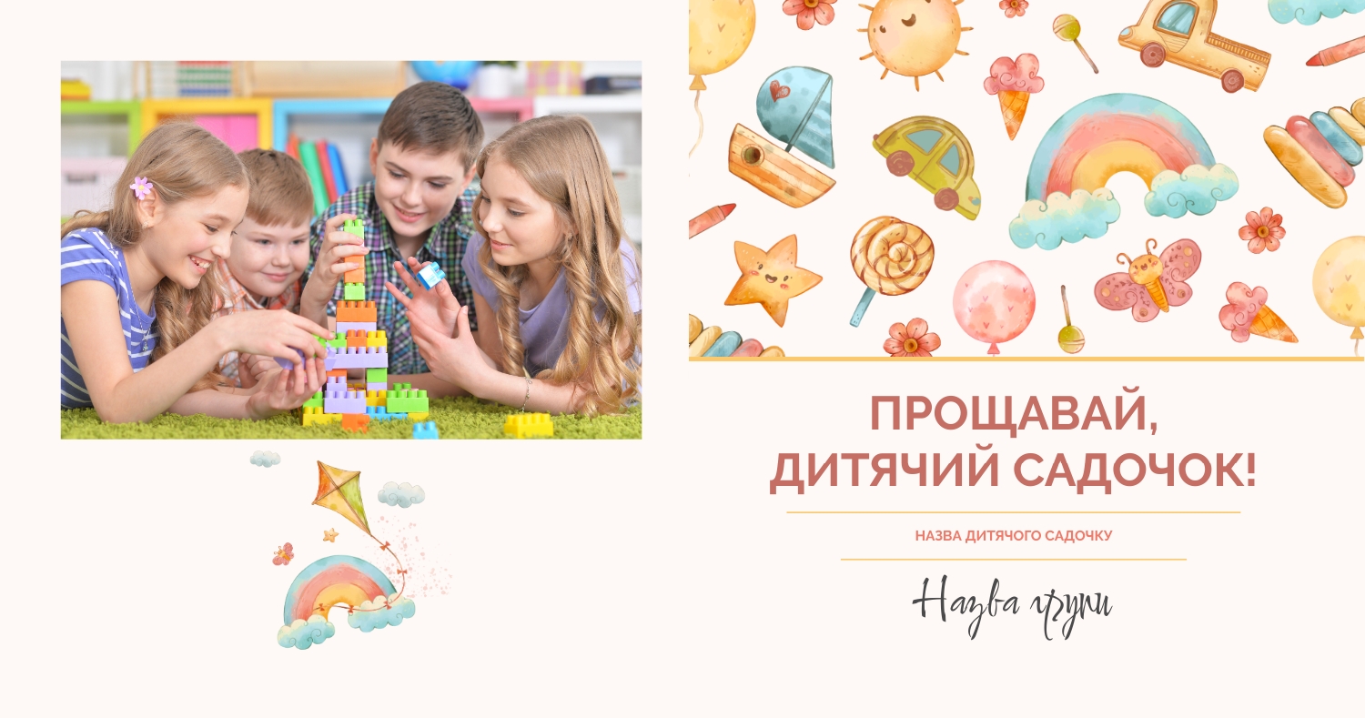 Готовий шаблон випускної української квадратної фотокниги для дитячого садка — це яскраве та зворушливе оформлення, яке допомагає зберегти найважливіші спогади про перші кроки у житті дитини. У дизайні поєднуються національні мотиви, ніжні кольори, дитячі ілюстрації та теплі деталі, що створюють атмосферу радості, безтурботності та кохання. Цей шаблон ідеально підійде для вихователів, завідувачів дитячих садків, фотографів, які працюють із дитячими закладами, а також для батьків, які бажають самостійно оформити фотокнигу до випускного свята. Онлайн-конструктор дозволяє легко адаптувати шаблон під конкретну групу, садок чи захід. Можна замінити фотографії, вписати імена дітей та вихователів, змінити шрифти та колір тексту, доповнити сторінки віршами, привітаннями чи навіть малюнками самих малюків. Фони, рамки, декоративні елементи - все можна редагувати, переміщати і комбінувати, щоб фотокнига вийшла не тільки красивою, а й унікальною.