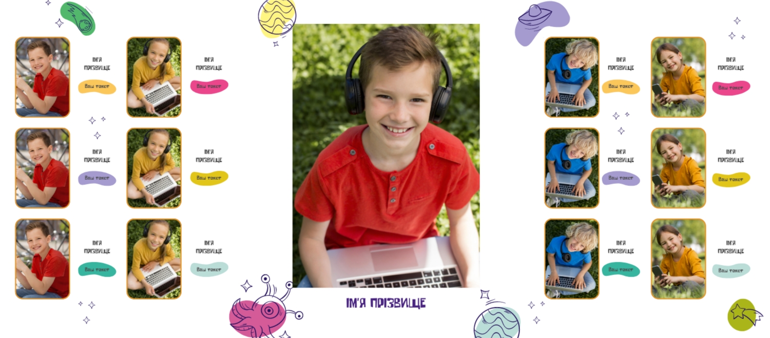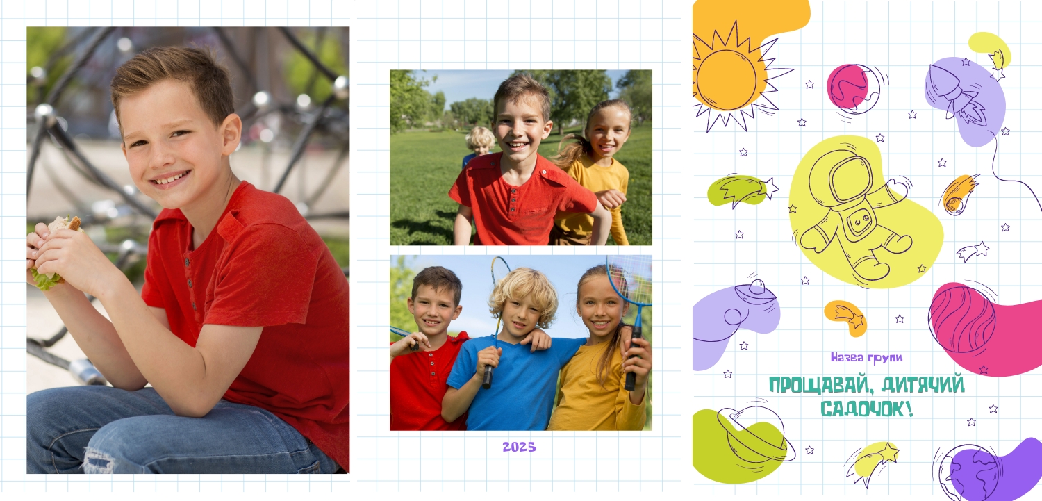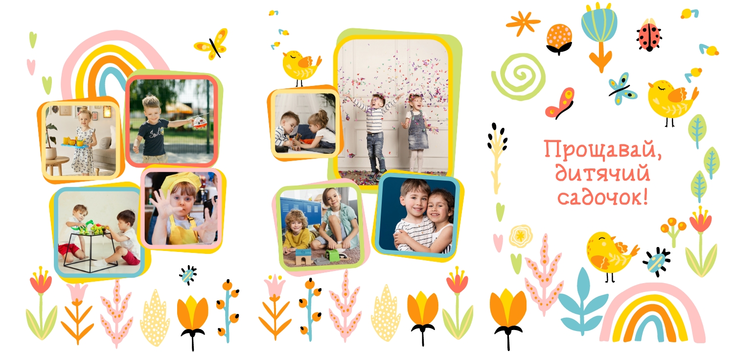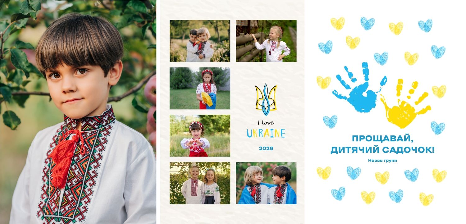 Готовий шаблон випускної фотовіньєтки Тріо для дитячого садка в українському стилі – це яскраве та душевне оформлення, наповнене національними мотивами, що створюють атмосферу тепла та свята. Такий дизайн особливо підходить для педагогів та вихователів дитячих садків, які хочуть підкреслити національні традиції та зробити пам'ять про випуск особливою. В онлайн-конструкторі цей шаблон можна легко адаптувати до власних побажань. Всі елементи редагуються – від фону та декоративних візерунків до розташування фотографій та тексту. Можна вибрати зручний формат підпису для кожної дитини, змінити шрифти та кольори, додати індивідуальні написи, привітання чи логотип дитячого садка. За потреби фон можна доповнити елементами народного мистецтва або навпаки зробити лаконічнішим.