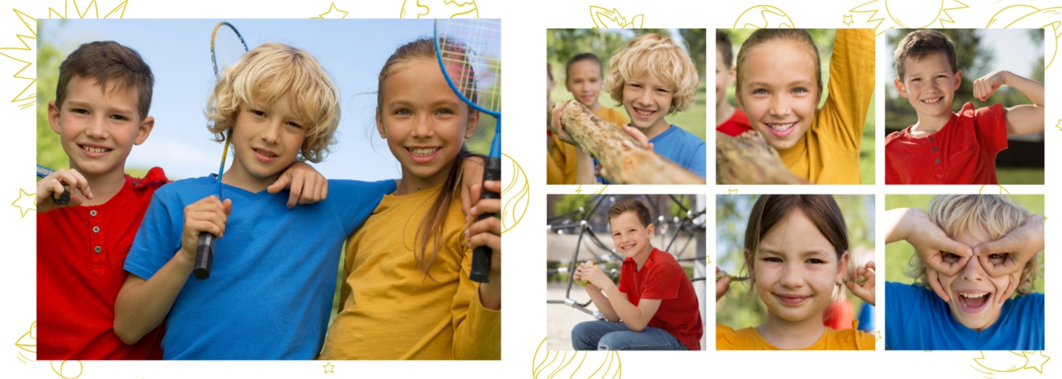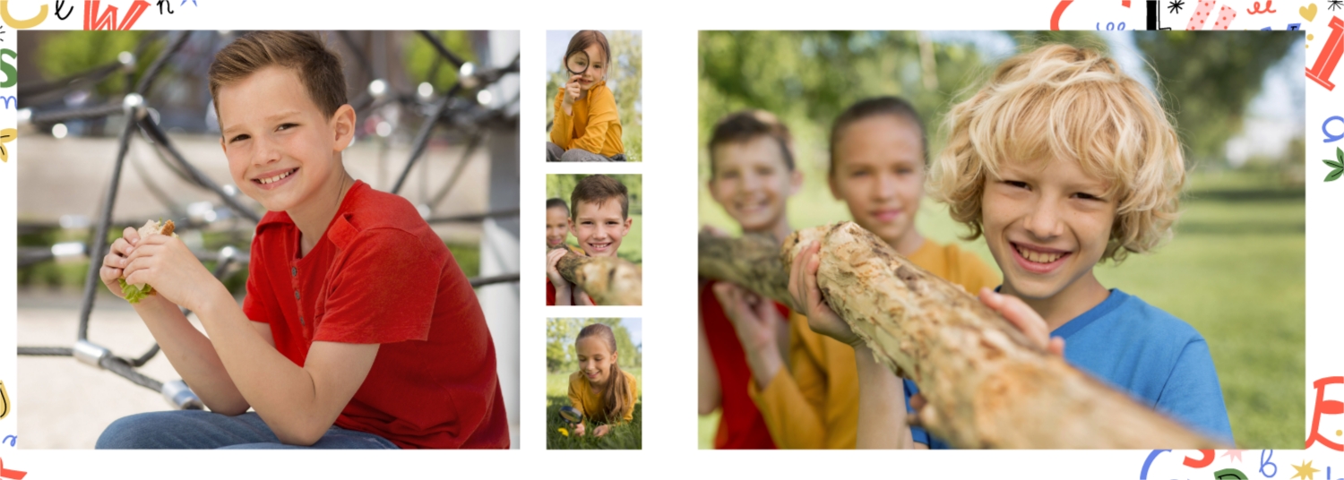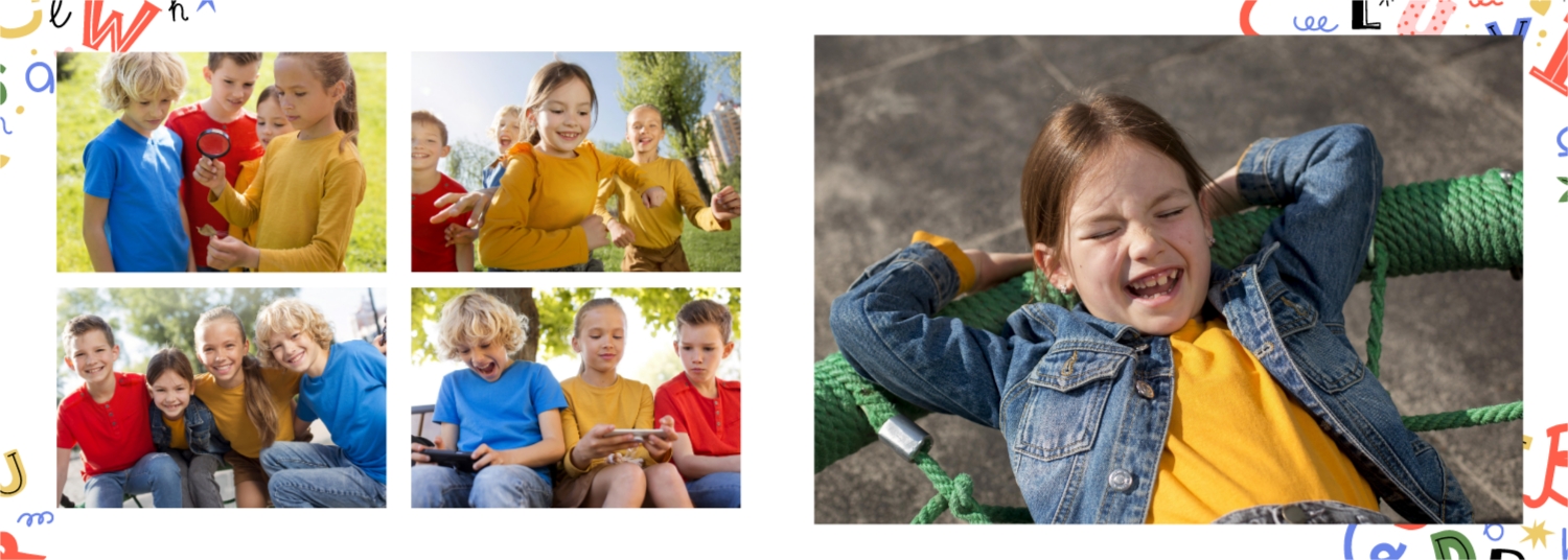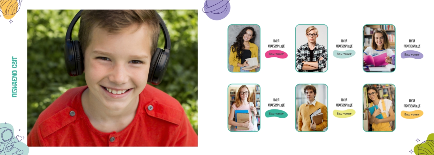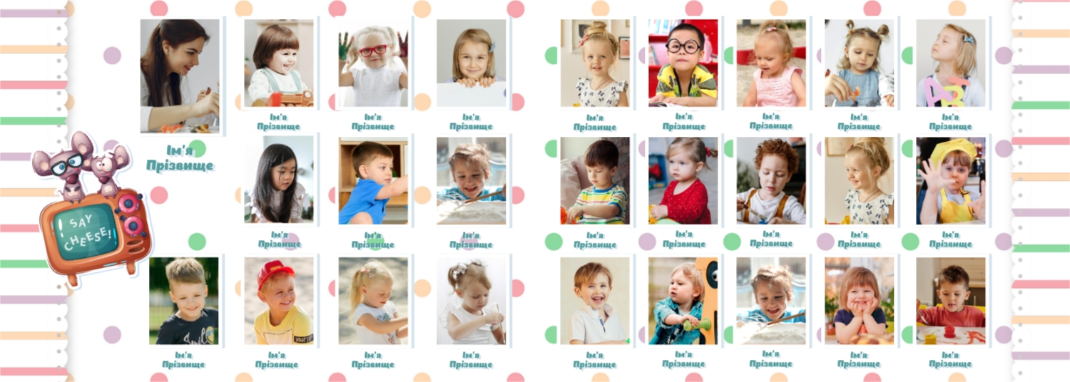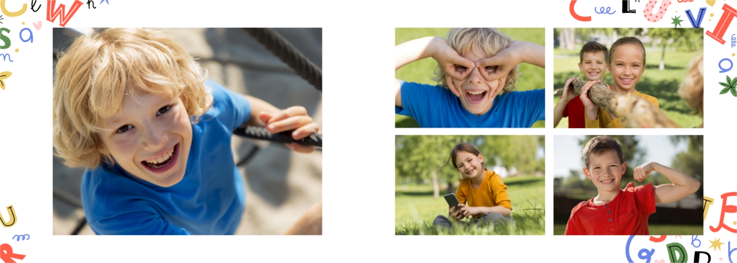 Готовий шаблон випускної української горизонтальної панорамної фотокниги для дитячого садка — це яскраве та зворушливе оформлення, яке допомагає зберегти найважливіші спогади про перші кроки у житті дитини. У дизайні поєднуються національні мотиви, ніжні кольори, дитячі ілюстрації та теплі деталі, що створюють атмосферу радості, безтурботності та кохання. Цей шаблон ідеально підійде для вихователів, завідувачів дитячих садків, фотографів, які працюють із дитячими закладами, а також для батьків, які бажають самостійно оформити фотокнигу до випускного свята. Онлайн-конструктор дозволяє легко адаптувати шаблон під конкретну групу, садок чи захід. Можна замінити фотографії, вписати імена дітей та вихователів, змінити шрифти та колір тексту, доповнити сторінки віршами, привітаннями чи навіть малюнками самих малюків. Фони, рамки, декоративні елементи - все можна редагувати, переміщати і комбінувати, щоб фотокнига вийшла не тільки красивою, а й унікальною.