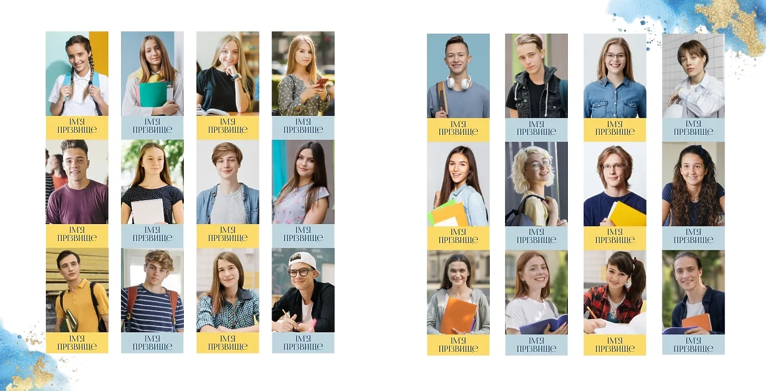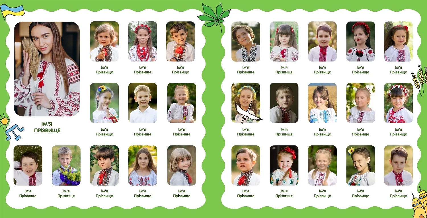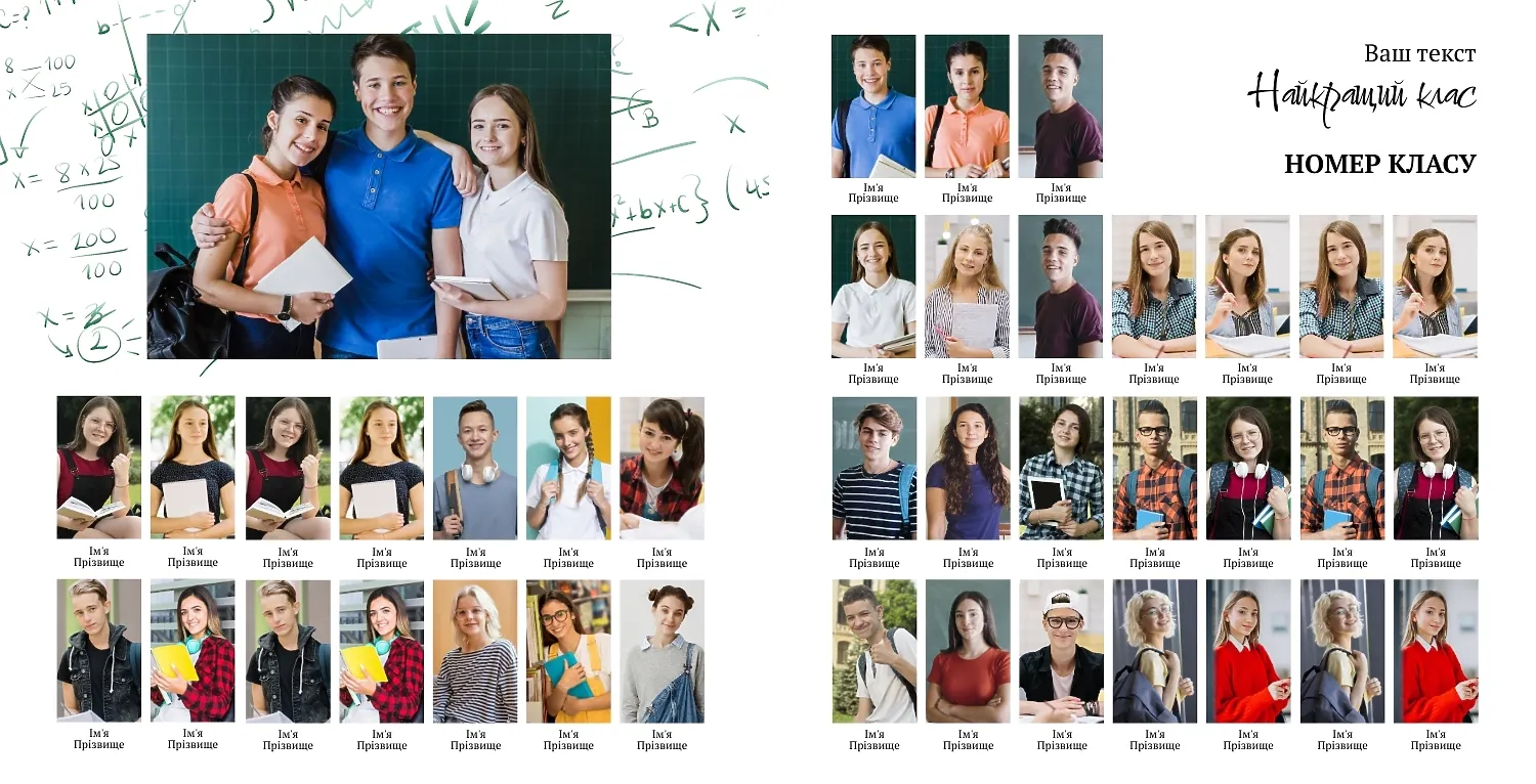 Готовий шаблон випускної квадратної фотокниги у твердій обкладинці у сучасному українському стилі – це стильне та актуальне оформлення, що відображає дух часу та національні мотиви. Яскраві орнаменти, модернізовані народні елементи, пастельні чи насичені кольори в українській палітрі роблять такий макет особливо привабливим для оформлення шкільних спогадів. Він відмінно підійде для учнів середньої школи, особливо якщо хочеться наголосити на любові до рідної культури і зробити акцент на національній ідентичності. Цей шаблон можна легко адаптувати під будь-які побажання в онлайн-конструкторі. Тут все продумано для зручної та гнучкої роботи: ви можете змінювати тексти, заголовки, розташування блоків, додавати фотографії, стилізовані графічні елементи та навіть вносити авторські правки у фон. Завдяки продуманій структурі та зрозумілому інтерфейсу редагування стає легким та захоплюючим процесом, навіть якщо ви раніше ніколи не працювали з подібними макетами.