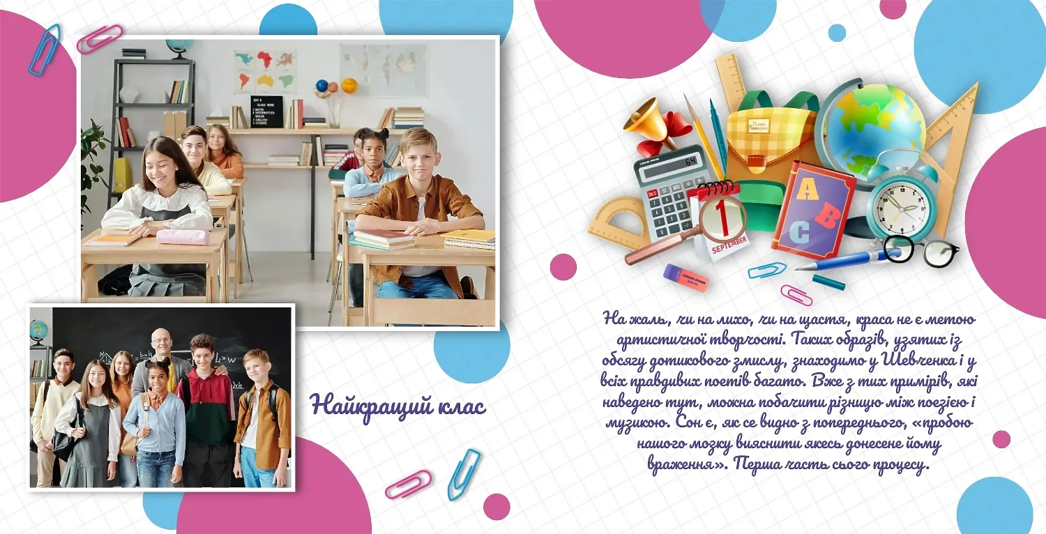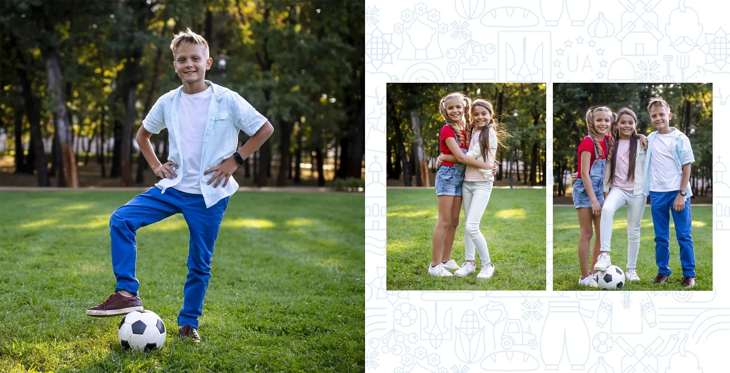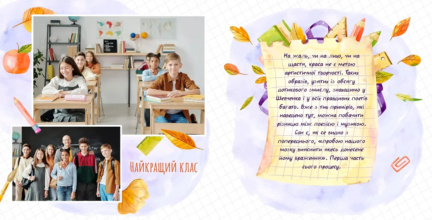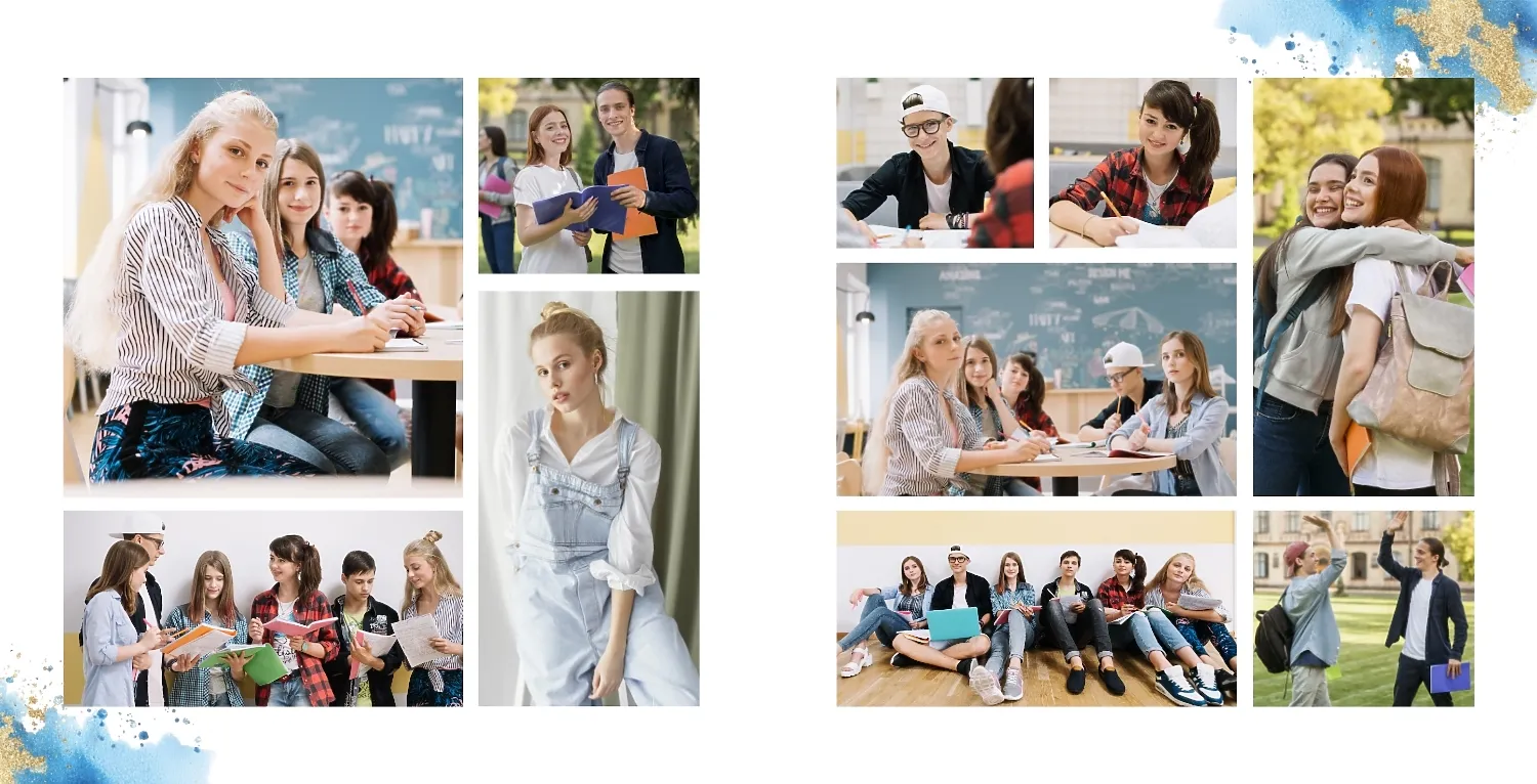 Готовий шаблон випускної квадратної фотокниги у твердій обкладинці у сучасному українському стилі – це стильне та актуальне оформлення, що відображає дух часу та національні мотиви. Яскраві орнаменти, модернізовані народні елементи, пастельні чи насичені кольори в українській палітрі роблять такий макет особливо привабливим для оформлення шкільних спогадів. Він відмінно підійде для учнів середньої школи, особливо якщо хочеться наголосити на любові до рідної культури і зробити акцент на національній ідентичності. Цей шаблон можна легко адаптувати під будь-які побажання в онлайн-конструкторі. Тут все продумано для зручної та гнучкої роботи: ви можете змінювати тексти, заголовки, розташування блоків, додавати фотографії, стилізовані графічні елементи та навіть вносити авторські правки у фон. Завдяки продуманій структурі та зрозумілому інтерфейсу редагування стає легким та захоплюючим процесом, навіть якщо ви раніше ніколи не працювали з подібними макетами.