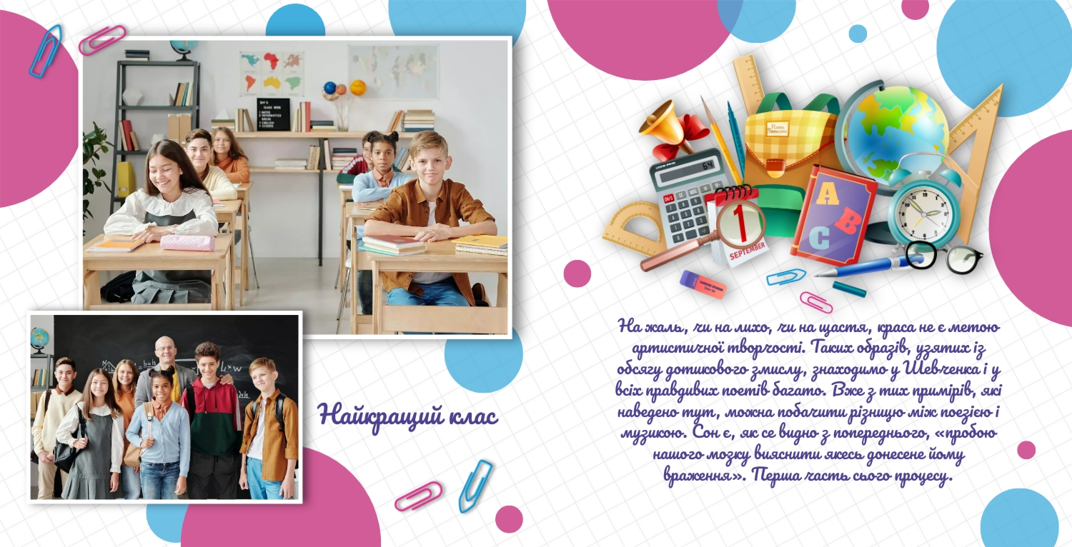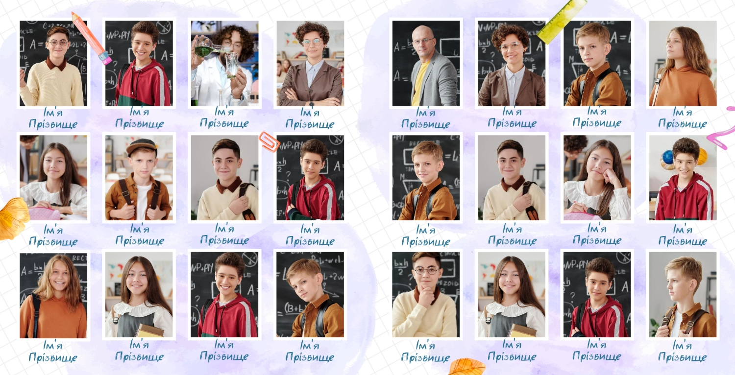Готовий шаблон випускної квадратної фотокниги у твердій обкладинці у сучасному українському стилі – це стильне та актуальне оформлення, що відображає дух часу та національні мотиви. Яскраві орнаменти, модернізовані народні елементи, пастельні чи насичені кольори в українській палітрі роблять такий макет особливо привабливим для оформлення шкільних спогадів. Він відмінно підійде для учнів середньої школи, особливо якщо хочеться наголосити на любові до рідної культури і зробити акцент на національній ідентичності. Цей шаблон можна легко адаптувати під будь-які побажання в онлайн-конструкторі. Тут все продумано для зручної та гнучкої роботи: ви можете змінювати тексти, заголовки, розташування блоків, додавати фотографії, стилізовані графічні елементи та навіть вносити авторські правки у фон. Завдяки продуманій структурі та зрозумілому інтерфейсу редагування стає легким та захоплюючим процесом, навіть якщо ви раніше ніколи не працювали з подібними макетами.