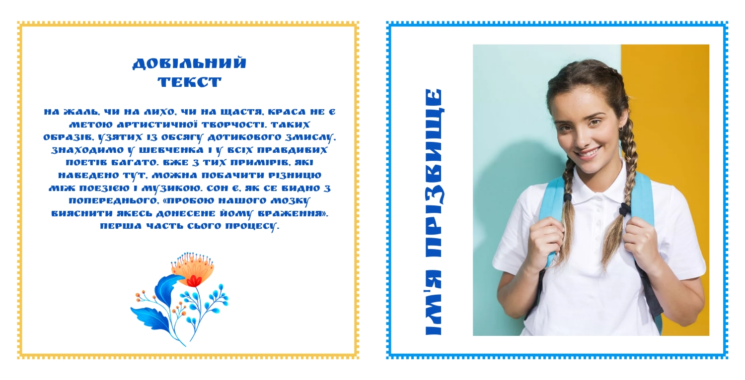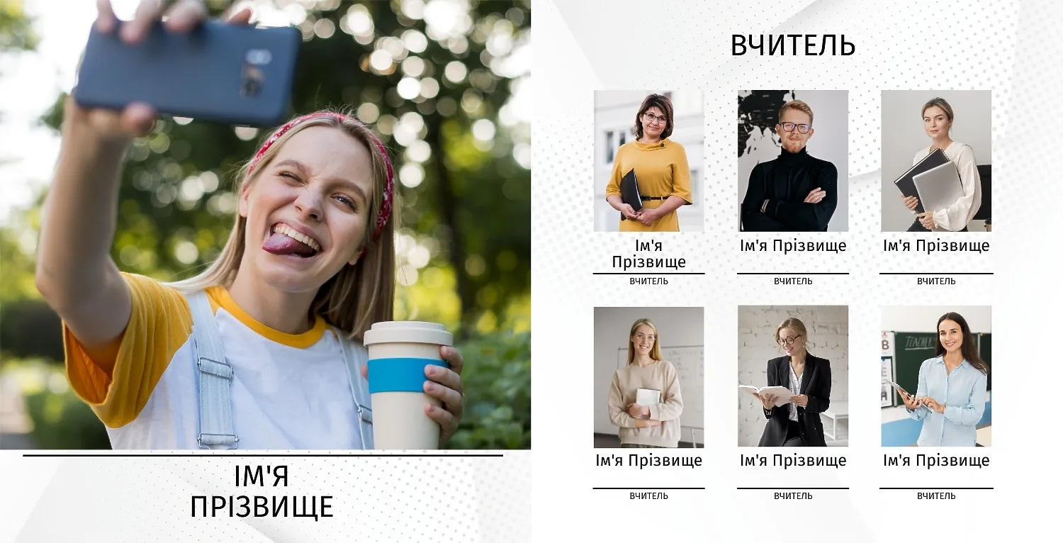 Готовий шаблон квадратної випускної української фотокниги у твердій обкладинці — це продуманий до дрібниць макет, який поєднує національний колорит, сучасні дизайнерські рішення та урочисту атмосферу важливого життєвого етапу. Головна перевага шаблону - гнучкість у редагуванні за допомогою нашого онлайн-конструктора. Ви можете легко замінити фотографії, підписати імена, додати індивідуальні написи, побажання чи цитати. Конструктор дозволяє переміщати елементи, підбирати шрифти, змінювати кольори фонів та декоративних акцентів. Завдяки цьому кожна фотокнига набуває власного характеру — веселого, ностальгічного, урочистого або навіть романтичного, залежно від вашого задуму.