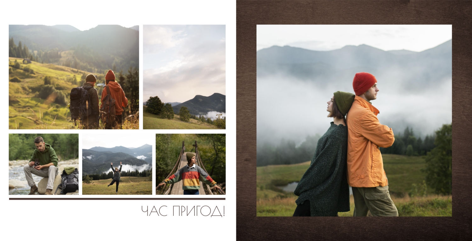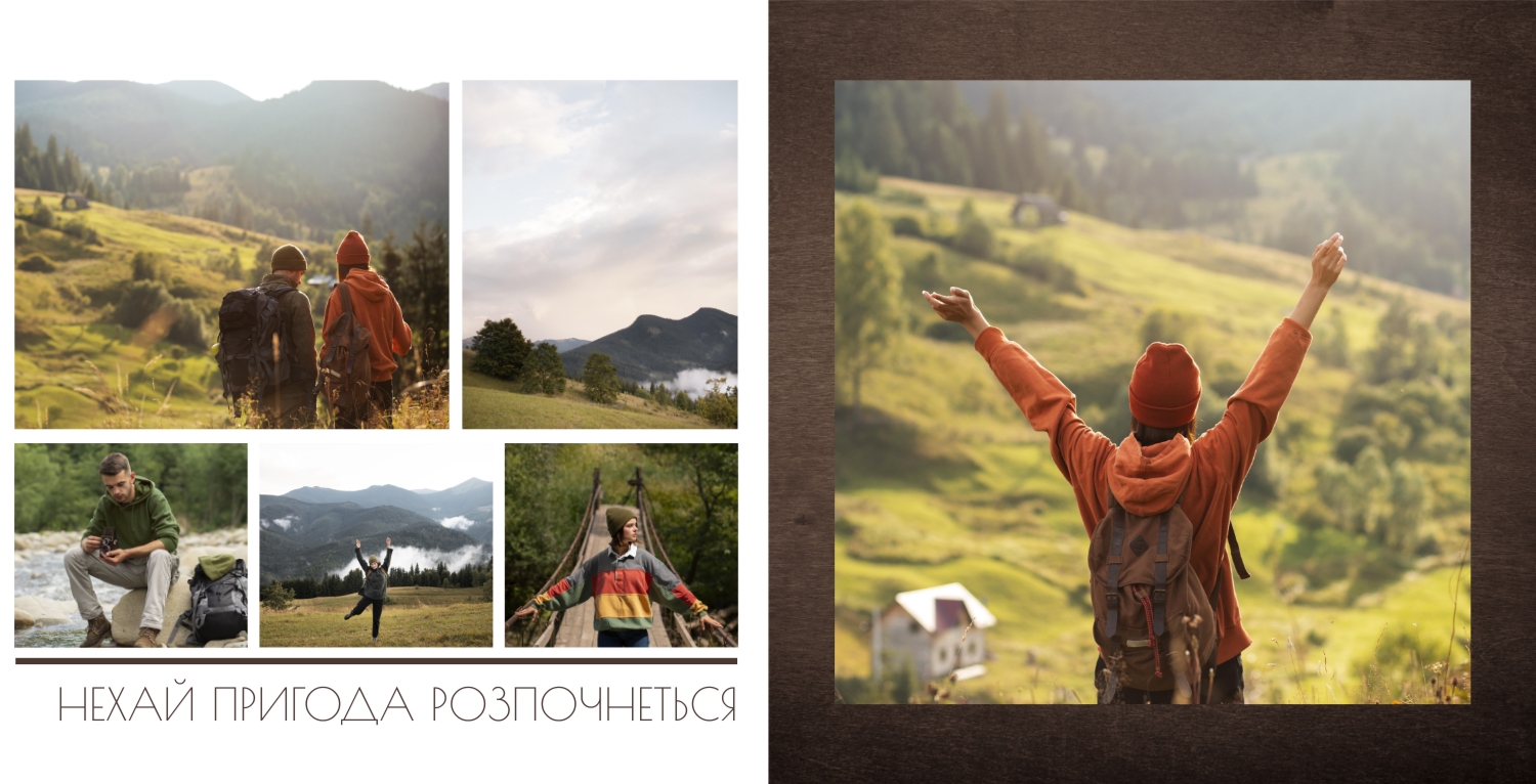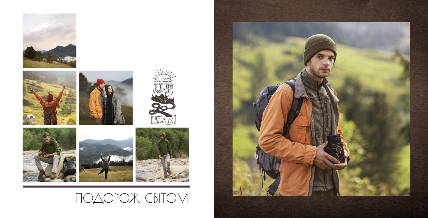 Безкоштовний шаблон фотокниги подорожей з найкращими спогадами. Створіть макет власноруч в онлайн-конструкторі фотокниг.