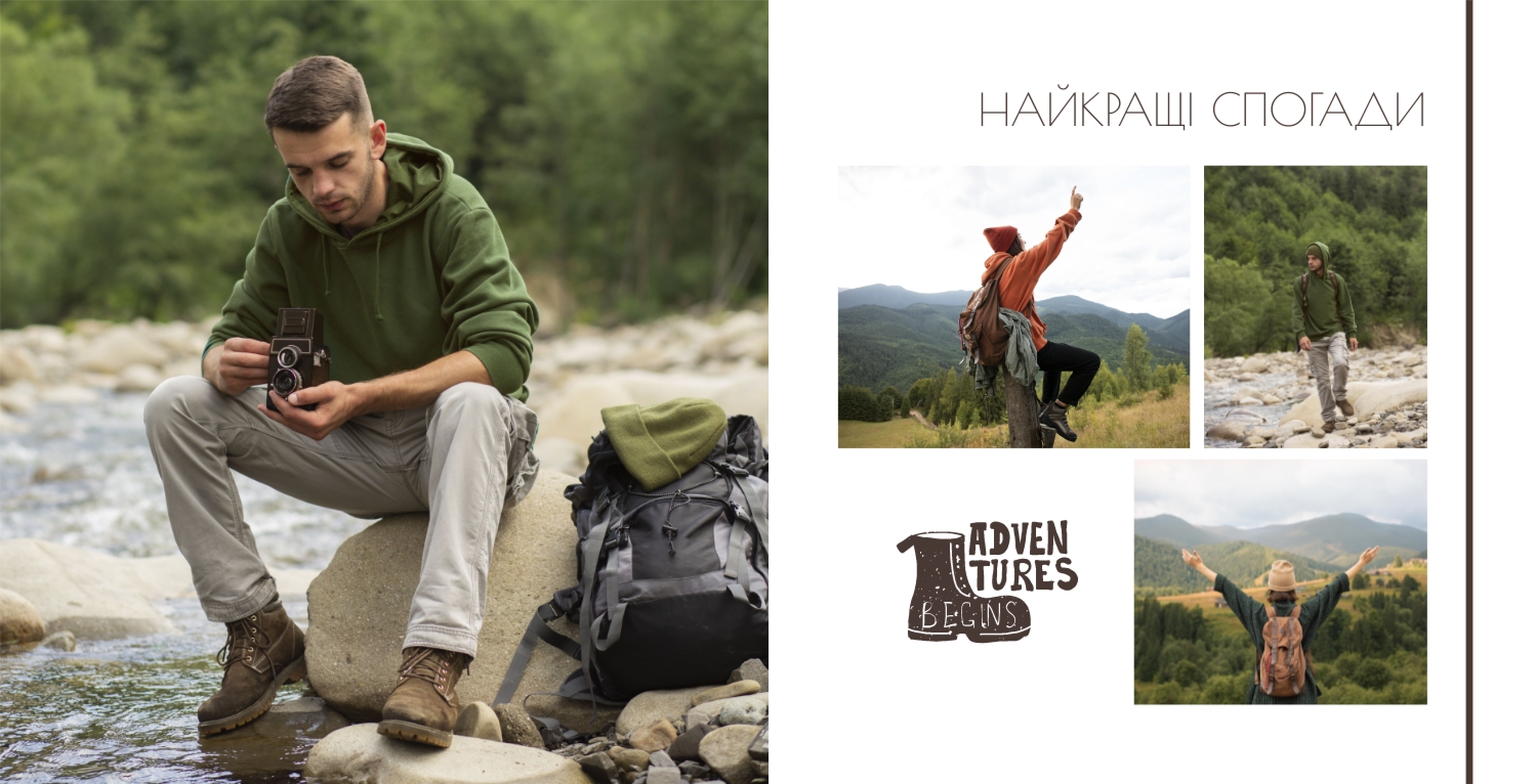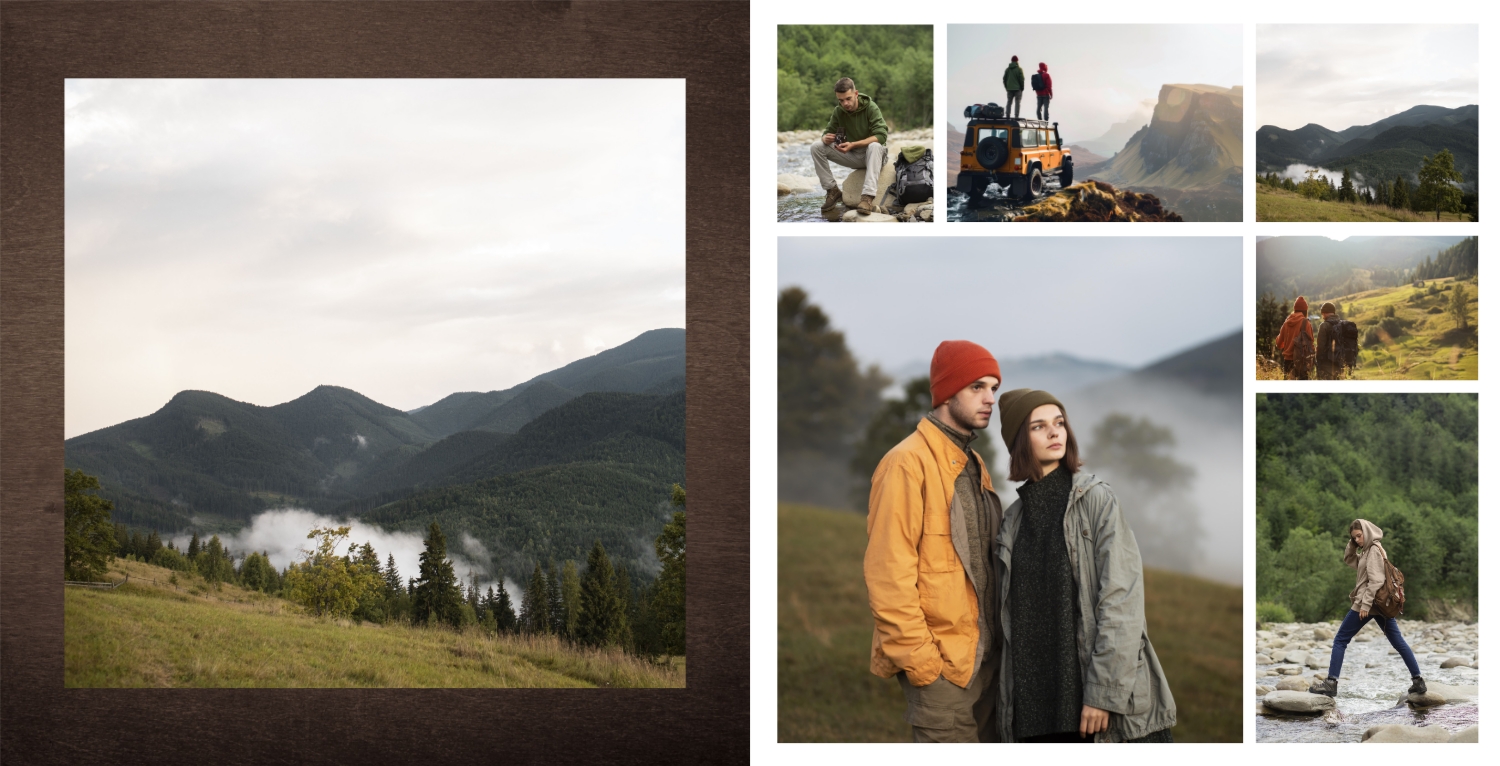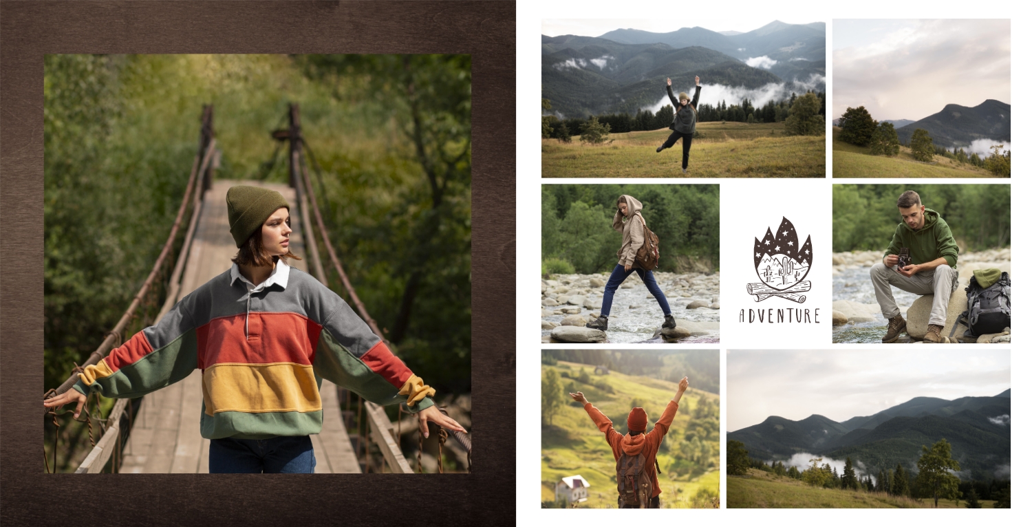 Безкоштовний шаблон фотокниги подорожей з найкращими спогадами. Створіть макет власноруч в онлайн-конструкторі фотокниг.