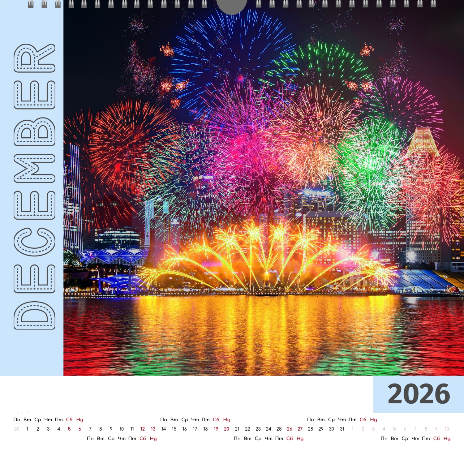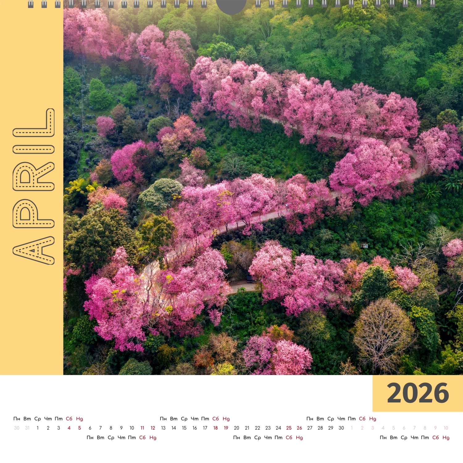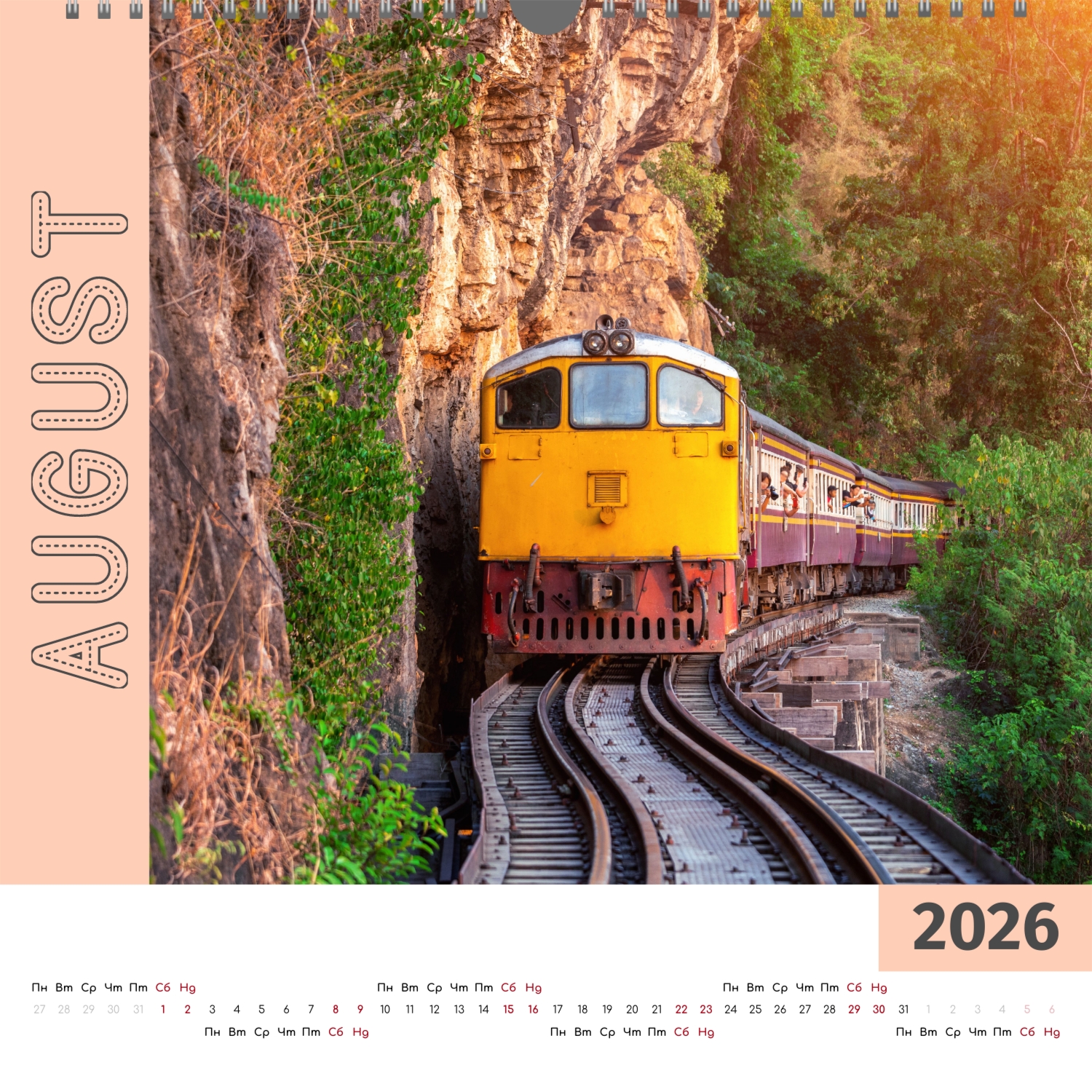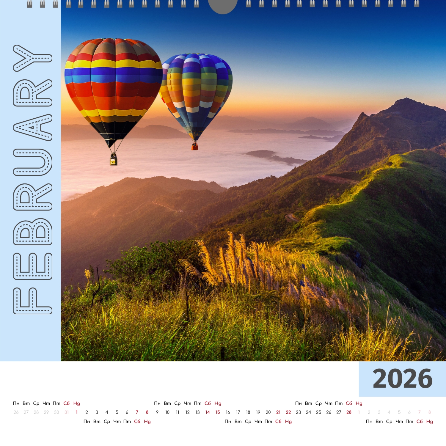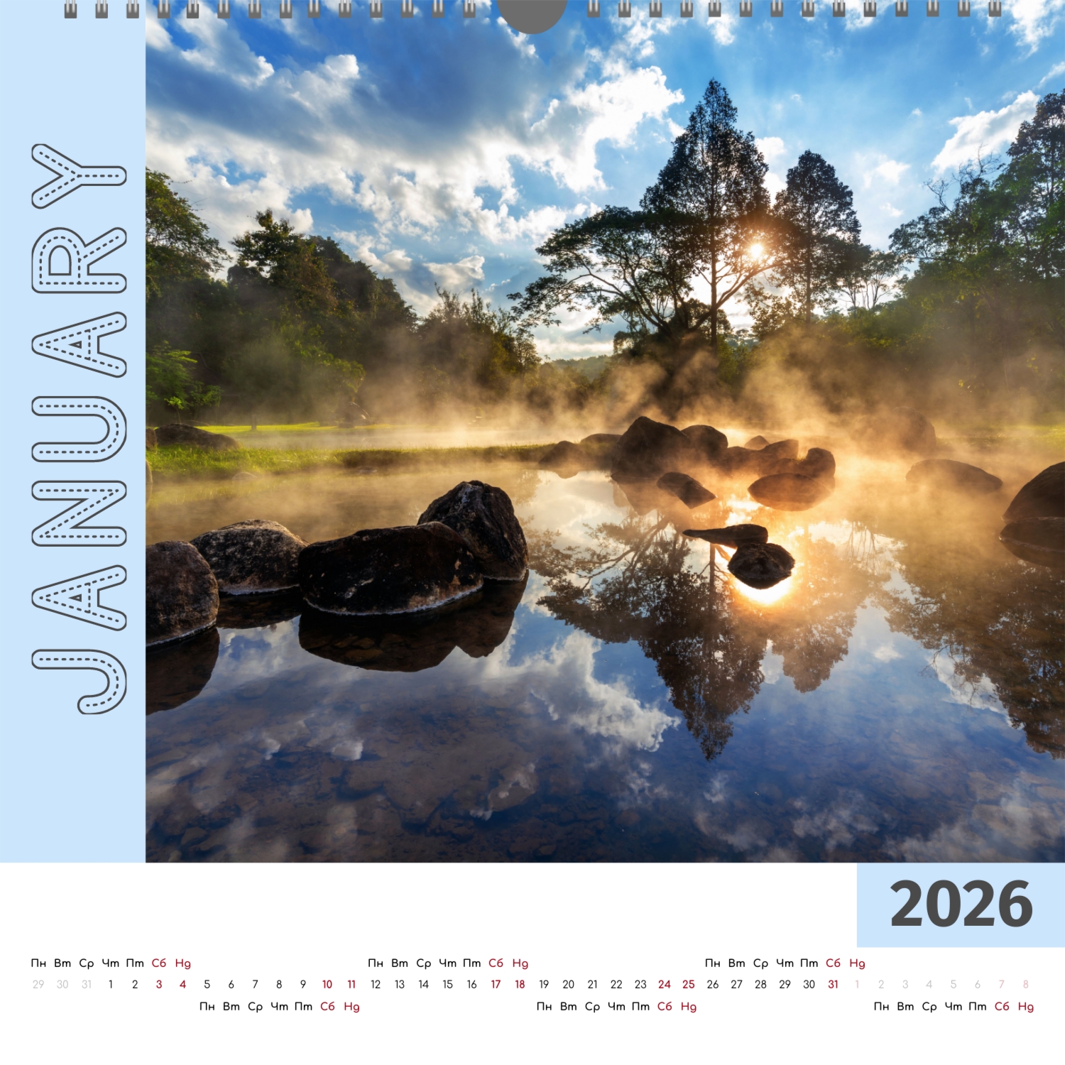 Готовий шаблон настінного календаря з фото подорожей-це ідеальний інструмент для створення персоналізованого виробу, який стане справжнім відображенням вашої любові до відкриттів і яскравих моментів. Даний шаблон, розроблений в нашому онлайн-конструкторі, пропонує універсальну базу для оформлення настінного квадратного календаря з унікальними фотографіями, пов'язаними з подорожами. Такий календар стане прекрасним рішенням для професіоналів, чия робота пов'язана з туризмом, подорожами або організацією заходів. Він відмінно підійде для турагентів, гідів, фотографів і блогерів, що розповідають про подорожі. Крім того, шаблон стане в нагоді компаніям, що займаються просуванням туристичних напрямків, а також для особистого використання — наприклад, в якості подарунка для друзів і близьких. Ви можете легко додавати свої фотографії, змінювати кольори та шрифти, додавати нотатки та пам'ятні дати. Конструктор дозволяє адаптувати шаблон під будь-які завдання і створити дійсно унікальний продукт. Вам не потрібно володіти спеціальними навичками дизайну — інтерфейс простий і інтуїтивно зрозумілий. Кожен елемент календаря можна налаштувати так, щоб він повністю відповідав вашим уподобанням. Готовий шаблон календаря з фото подорожей-це спосіб втілити вашу креативність в практичному і стильному виробі, яке буде радувати вас або ваших клієнтів весь рік.