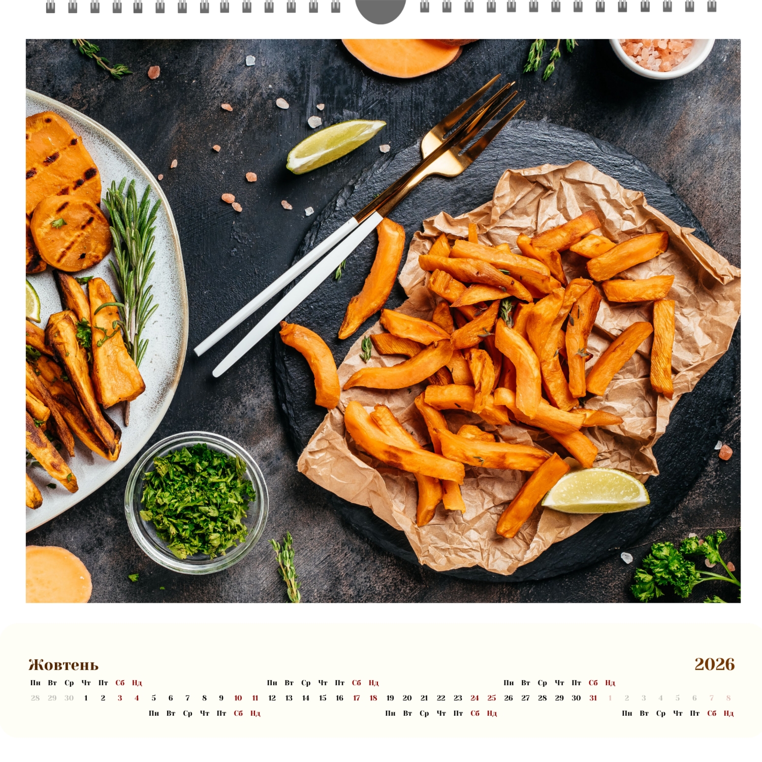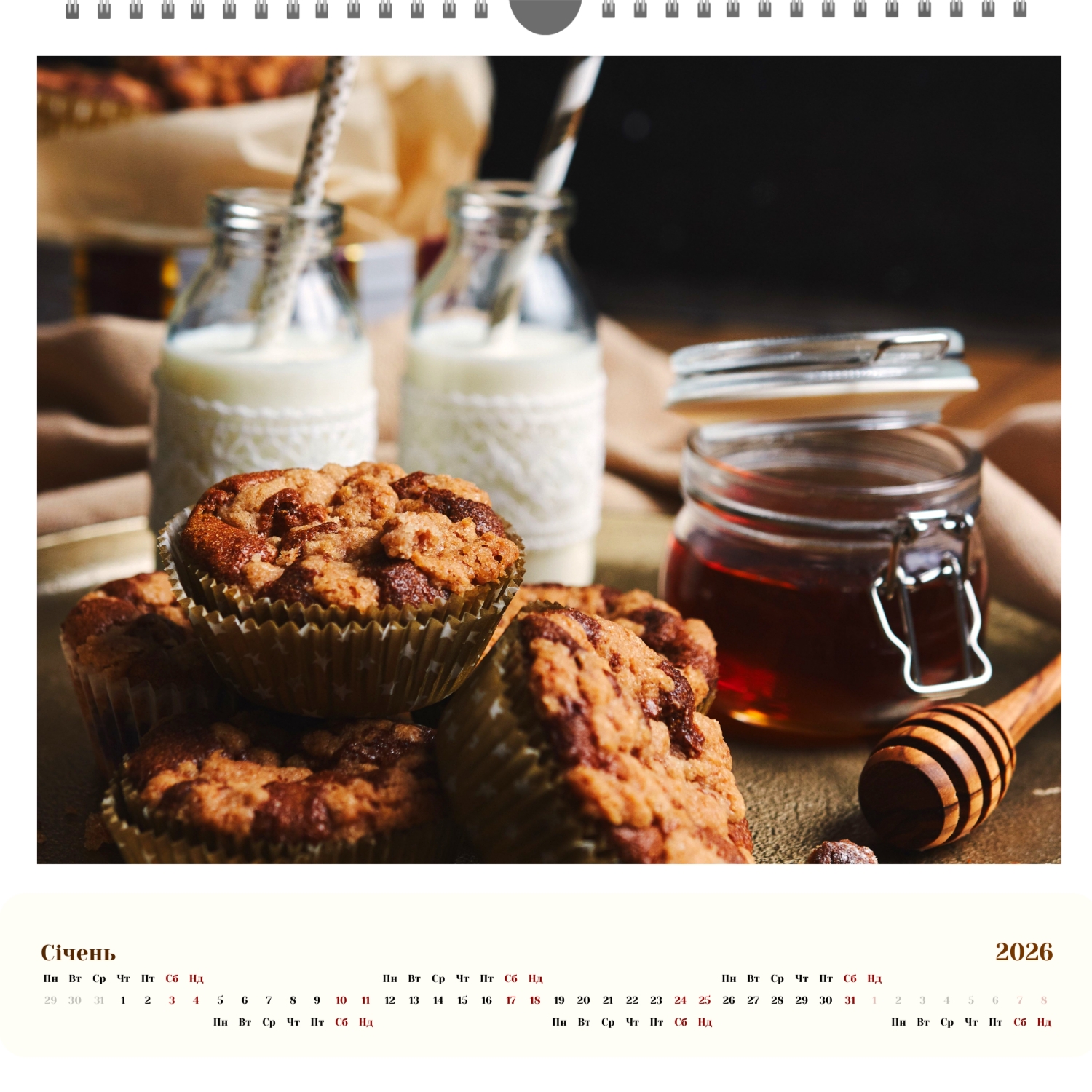 Шаблон календаря з кавою-це стильне і надихаюче рішення для тих, хто цінує затишок, тепло і атмосферу продуктивної роботи. Елегантний дизайн із зображеннями ароматної кави створює настрій і ідеально підходить для професіоналів, пов'язаних з креативними і діловими сферами. Такий календар стане відмінним вибором для власників кав'ярень, бариста, дизайнерів, офісних співробітників, а також для тих, хто працює в маркетингу, IT або творчої індустрії. Особливістю цього шаблону є можливість його повної кастомізації в нашому онлайн-конструкторі. Ви можете адаптувати дизайн під свої уподобання: додати логотип компанії, змінити шрифти або колірну палітру, а також вставити персональні фотографії, які підкреслять вашу індивідуальність. Конструктор інтуїтивно зрозумілий і надає повний контроль над кожною деталлю.