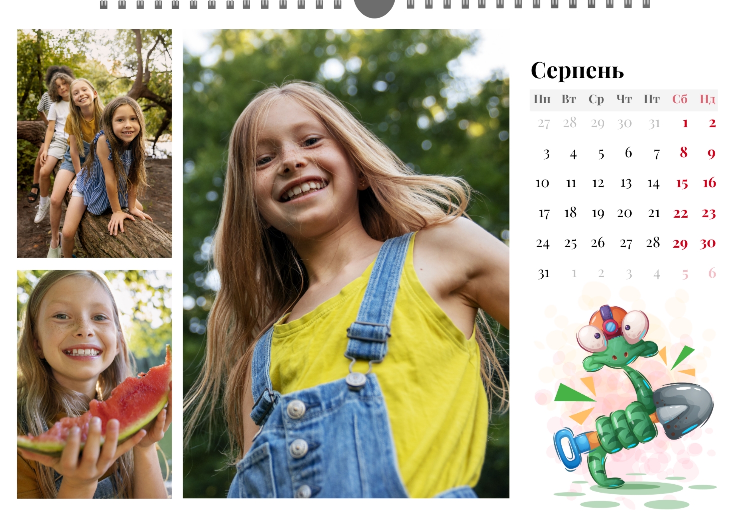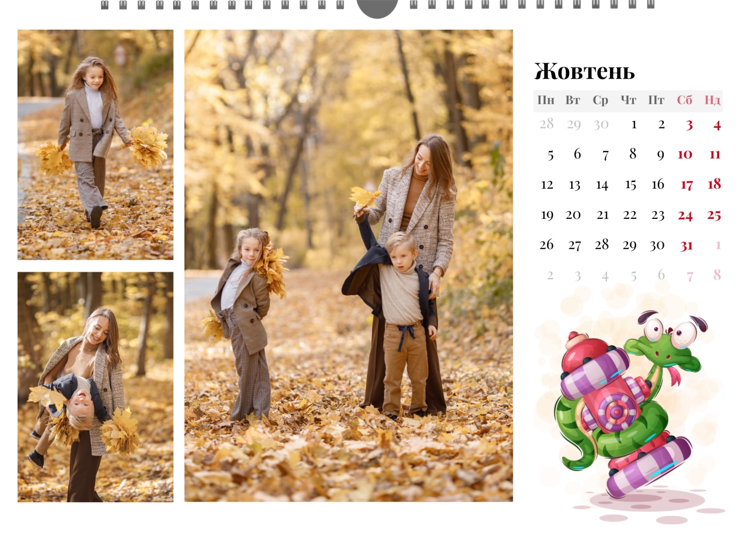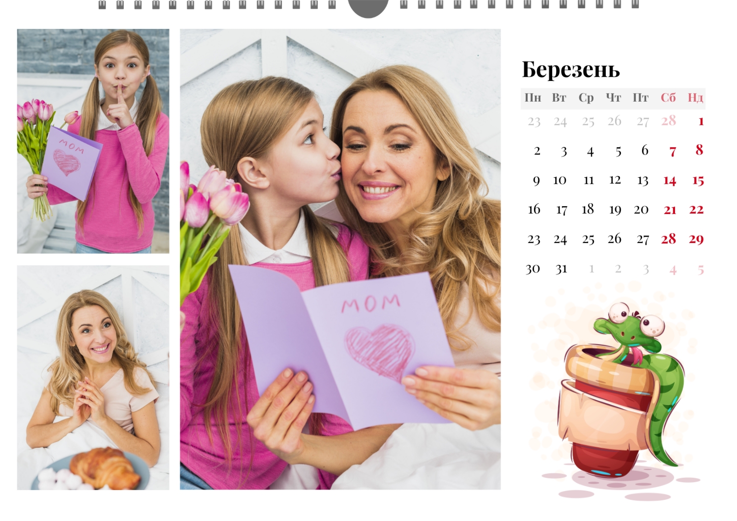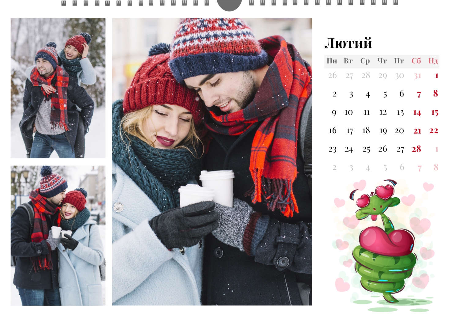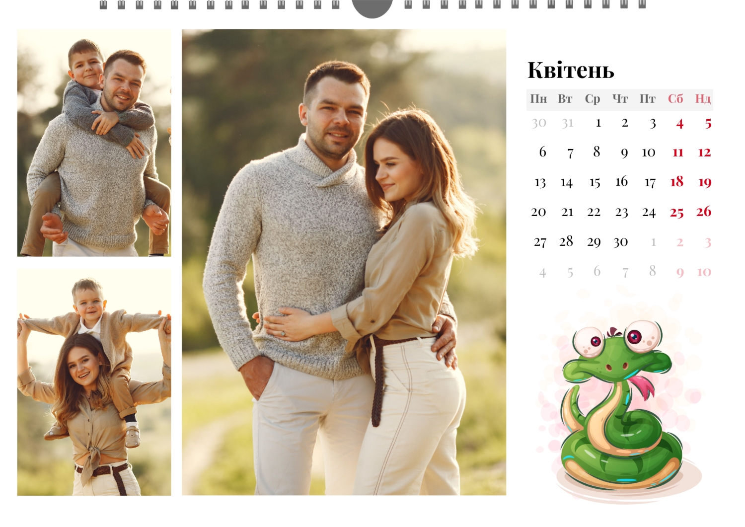Календар "Наша сім'я" з весільними фото — це готовий шаблон, який прекрасно підходить для створення унікального і пам'ятного сімейного календаря. Його теплий і романтичний стиль робить його ідеальним для пар, які бажають зберегти спогади про весілля, або для тих, хто хоче подарувати близьким щось особливе. Такий Настінний Горизонтальний календар може стати відмінним подарунком для батьків, родичів або навіть друзів, які були частиною вашого важливого події. Ви можете замінити фотографії на свої, підбираючи найбільш зворушливі моменти весілля, змінити підписи, додавши імена, дати або короткі фрази, які будуть нагадувати про яскраві моменти вашої історії. В онлайн-конструкторі також легко адаптувати кольори, шрифти і розташування елементів, щоб календар повністю відображав вашу унікальність і стиль. Створення такого календаря своїми руками не вимагає спеціальних навичок. Інтуїтивно зрозумілий інтерфейс конструктора дозволяє експериментувати з дизайном, поки результат не стане ідеальним. Підсумковий календар стане не просто функціональним виробом, а й емоційною сімейною реліквією, яка буде радувати вас і ваших близьких протягом усього року.