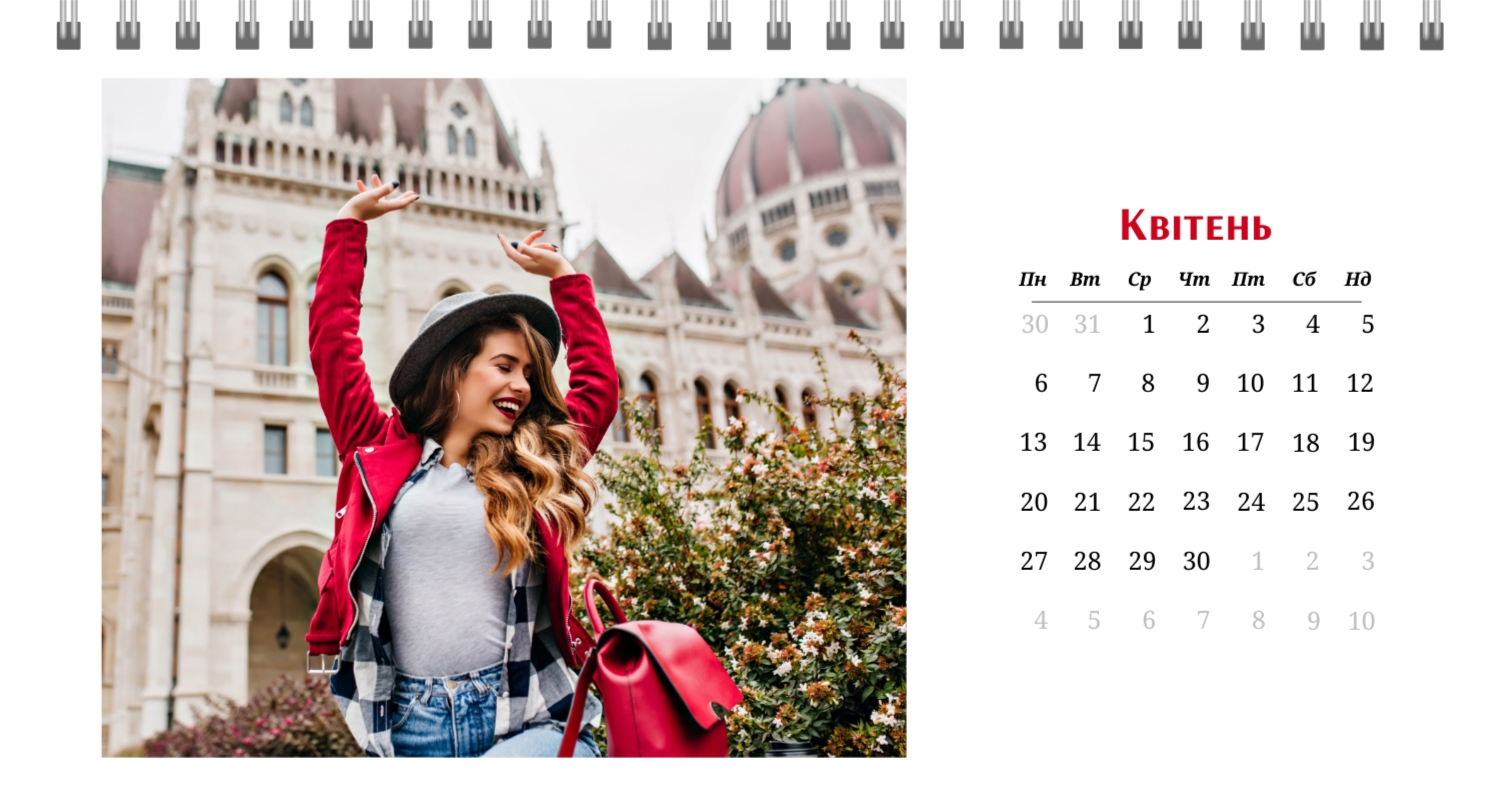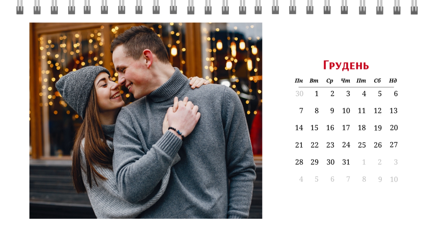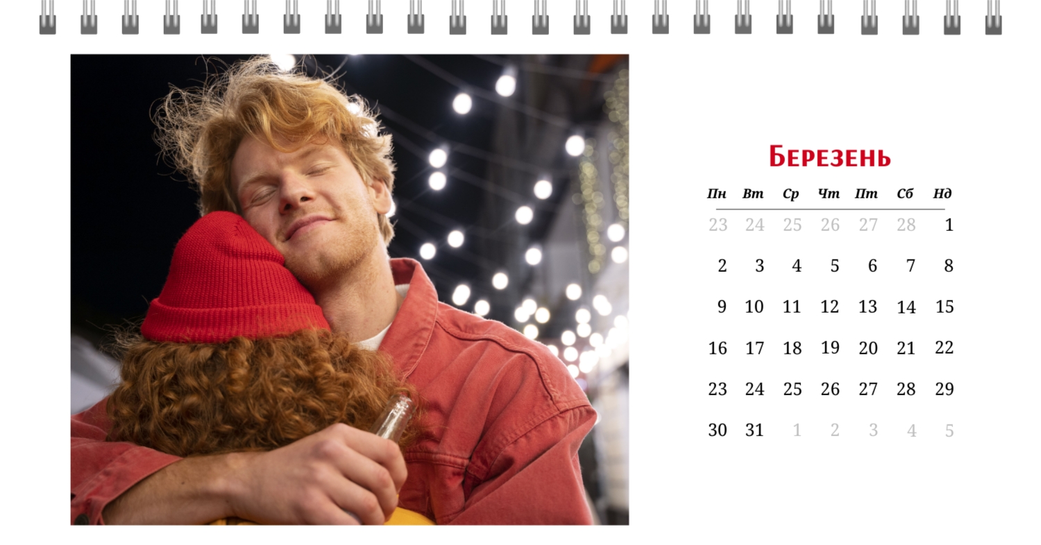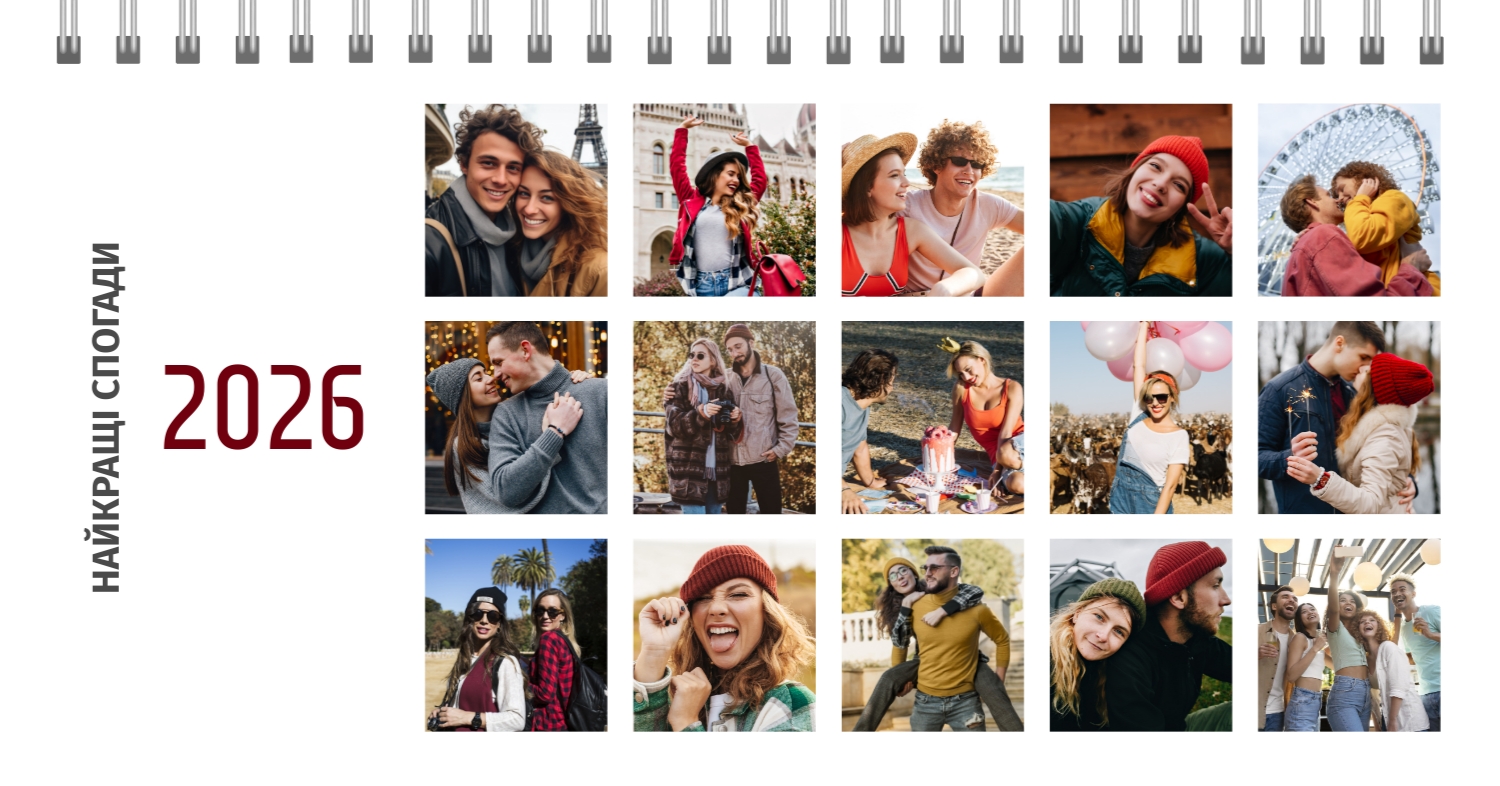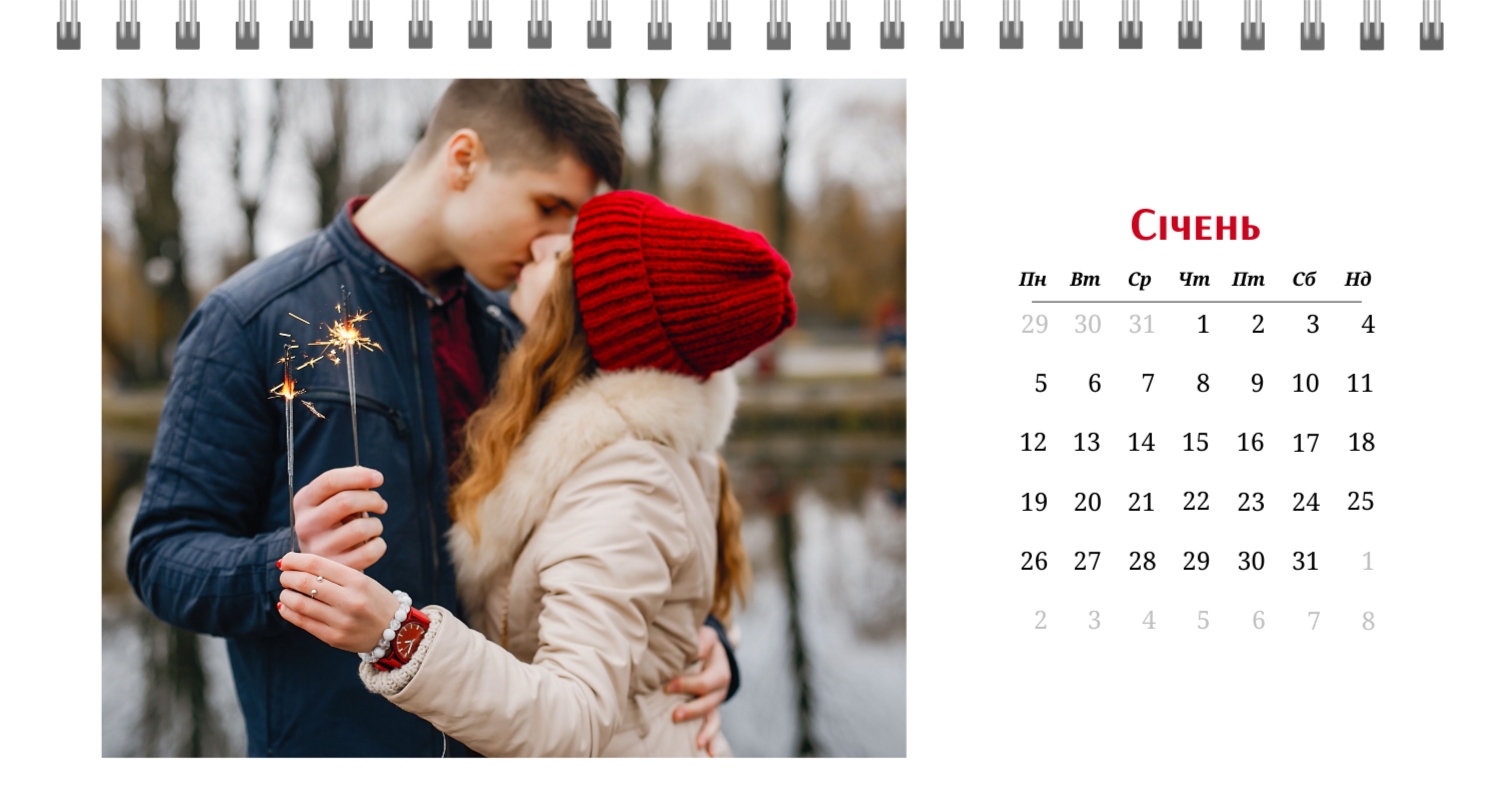 Готовий шаблон настільного календаря на 13 сторінок для закоханих-це ідеальний спосіб зберегти ваші найкращі моменти і зробити їх частиною кожного дня. Цей шаблон створений з урахуванням романтичної тематики: ніжні кольори, стильні декоративні елементи і гармонійна композиція створюють атмосферу тепла і затишку. Шаблон прекрасно підходить для пар, які бажають підкреслити свої почуття, а також для використання в професійній сфері, пов'язаної зі святами, весіллями або творчістю. Головна перевага цього календаря-можливість повної персоналізації в нашому онлайн-конструкторі. Ви можете завантажити свої фотографії, змінити текстові елементи або додати важливі дати, щоб зробити календар максимально унікальним. Наш конструктор дозволяє легко налаштувати шрифти, кольори і навіть декоративні елементи, що дає повну свободу для самовираження. Цей шаблон дає можливість створити не просто настільний календар на 13 сторінок, а справжній пам'ятний подарунок, який буде радувати кожен день. Просто виберіть готову основу, додайте свої ідеї і насолоджуйтеся результатом!