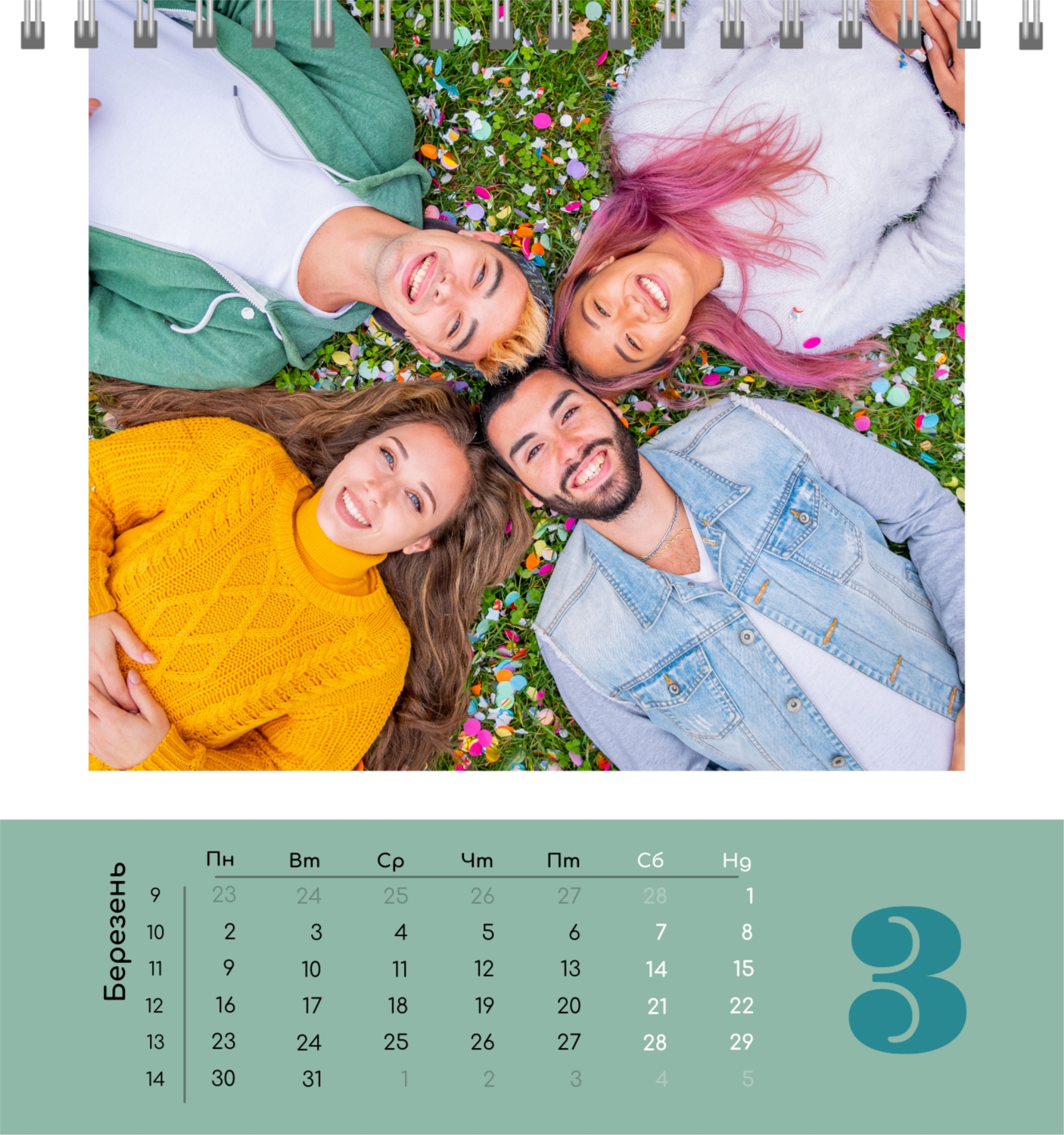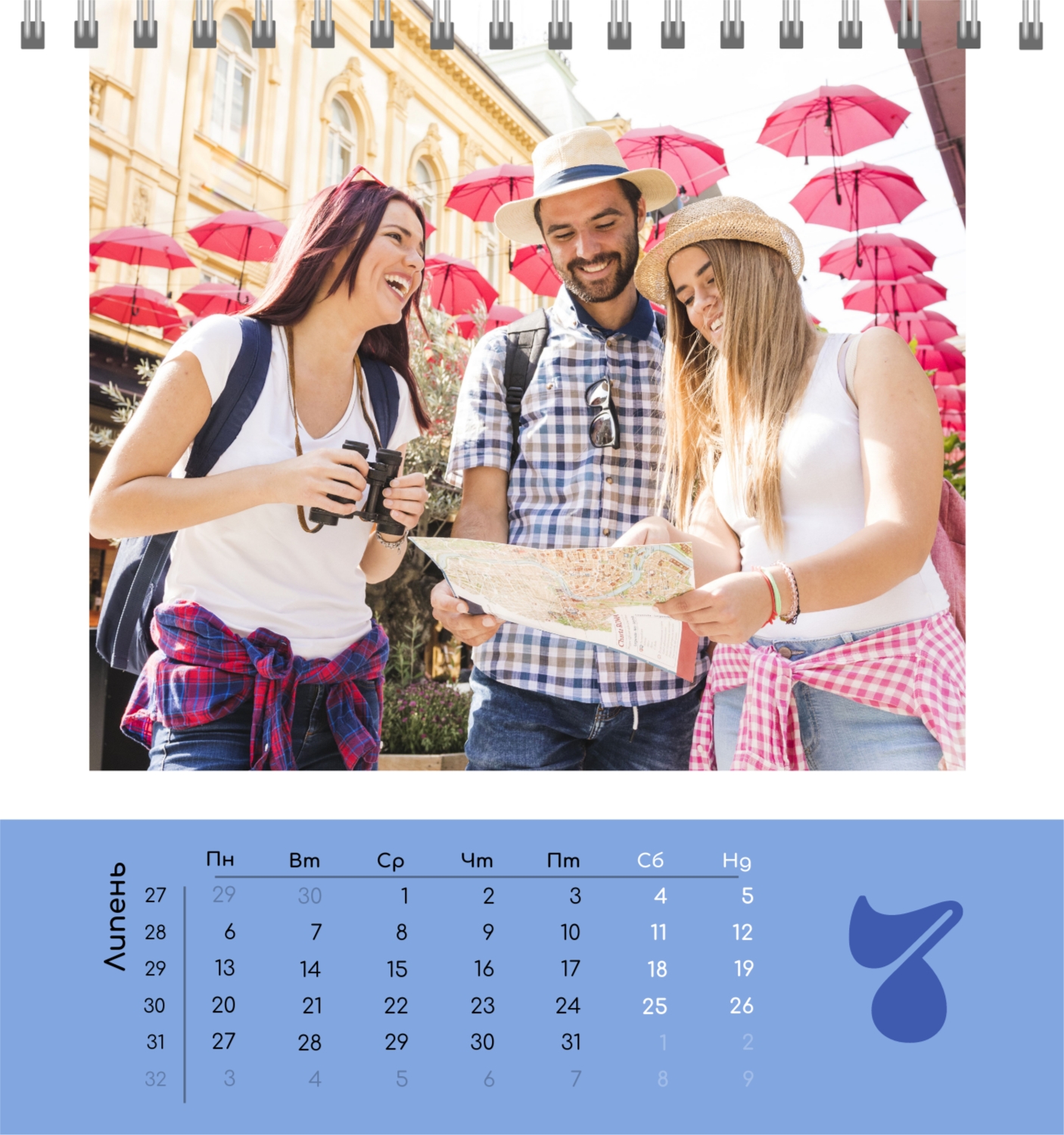 Готовий шаблон настільного квадратного календаря з напуттям на наступний рік створений для тих, хто цінує надихаючий візуальний стиль і хоче щодня отримувати невелике нагадування про мету, мотивацію або важливому життєвому орієнтирі. Такий календар підходить практично для будь-якої сфери: його можна розмістити в офісі, творчій студії, навчальному класі, салоні краси, кабінеті психолога, домашньому робочому просторі або подарувати клієнтам, колегам і партнерам як невеликий знак уваги. Для фахівців зі сфер навчання, дизайну, маркетингу, консультування, продажів або HR він стане особливо цінним, так як допомагає зберігати фокус і задає емоційний настрій на кожен новий день року. У нашому онлайн-конструкторі шаблон легко адаптується під власний стиль і завдання. Можна змінити напуття, замінивши його на фразу, близьку саме вам або вашій команді; скорегувати колірну гамму під фірмові відтінки; замінити шрифти, налаштувати насиченість фону або додати додаткові декоративні елементи. Якщо календар призначений для корпоративного використання, зручно додати логотип компанії, сайт, контакти або навіть корпоративні внутрішні цінності, щоб календар став частиною візуальної айдентики. Для особистого використання можна завантажити фотографії, вибрати улюблені кольори та оформити календар у теплій, надихаючій або мінімалістичній манері. Редагування відбувається прямо в браузері і не вимагає складних навичок дизайну: всі елементи можна перетягувати, змінювати їх розмір, повертати, видаляти або доповнювати. В результаті виходить повністю унікальний настільний календар, створений своїми руками, який не тільки прикрасить простір, але і стане м'яким, але впевненим нагадуванням про обраному напрямку на рік вперед.