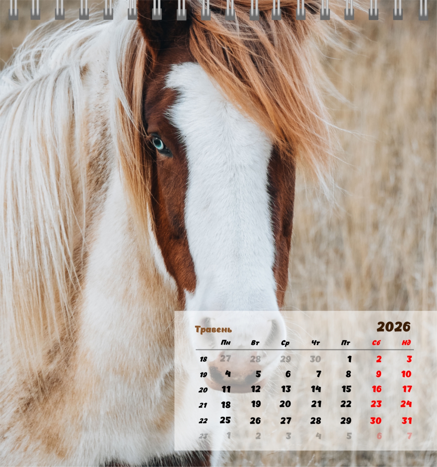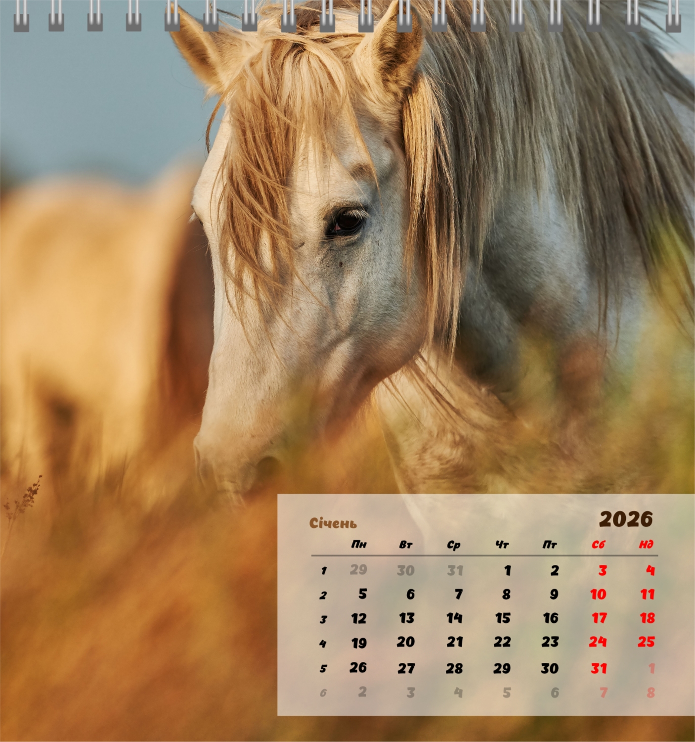 Готовий шаблон настільного компактного календаря з кіньми створений для тих, хто цінує природну гармонію, динаміку і символіку сили. На зображеннях представлені потужні і благородні тварини, які асоціюються зі свободою, прагненням вперед і внутрішньою рівновагою. Такий календар прекрасно підійде для кінних клубів, ферм, ветеринарних центрів, зоомагазинів, а також для тренерів, інструкторів, фотографів і всіх, хто захоплений кінним спортом або просто любить коней. Він буде однаково доречний як в робочому кабінеті, так і в домашньому інтер'єрі, створюючи атмосферу спокою і натхнення. У нашому онлайн-конструкторі цей шаблон можна легко адаптувати під особисті переваги. Ви можете замінити фотографії на свої власні знімки коней, додати логотип клубу або господарства, змінити шрифти, кольори і розстановку елементів. Є можливість підписати місяці, виділити важливі дати, відзначити змагання, тренування, дні народження та інші події. Будь-який елемент календаря – від фону до дрібних деталей-піддається редагуванню, що дозволяє створити дійсно персоналізований варіант. Онлайн-конструктор працює максимально зручно і просто: всі зміни відображаються відразу, можна експериментувати з композиціями, пробувати різні стилі і зберігати кілька варіантів.