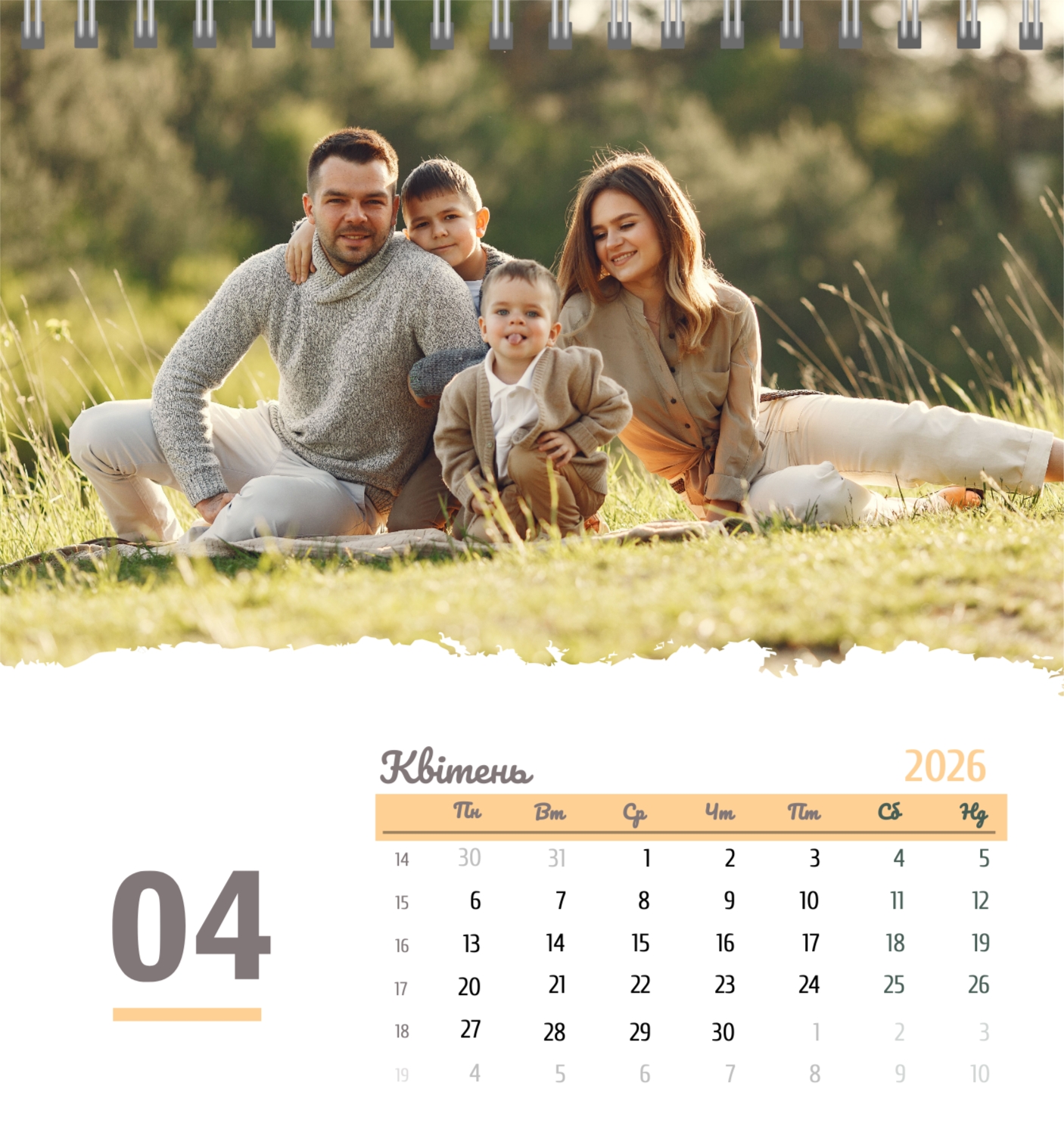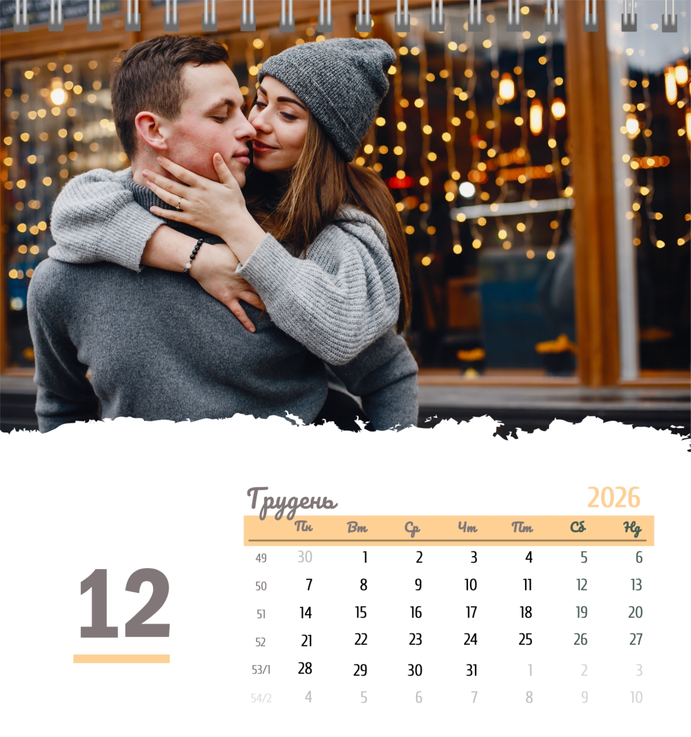 Готовий шаблон настільного календаря з поздоровленням виконаний в мінімалістичному і сучасному стилі, де кожен місяць зустрічає користувача коротким привітанням. Такий підхід робить календар не просто інструментом для планування, але і стильним елементом інтер'єру. Він може підійти дизайнерам, маркетологам, фотографам, творчим фахівцям, викладачам, фрілансерам, власникам невеликих студій або салонів, а також будь-кому, хто цінує естетичність і акуратну візуальну організацію робочого простору. В онлайн-конструкторі цей шаблон можна легко адаптувати під особисті або корпоративні завдання. Є можливість змінити фон, вибрати інші поєднання шрифтів, замінити привітальні фрази або залишити їх у вихідному вигляді, скорегувати колірну гамму, Додати фотографії, ілюстрації або фірмову графіку. При необхідності можна вставити логотип компанії, контактні дані або мотиваційні цитати, щоб календар став частиною корпоративного стилю або персональним творчим об'єктом для натхнення.