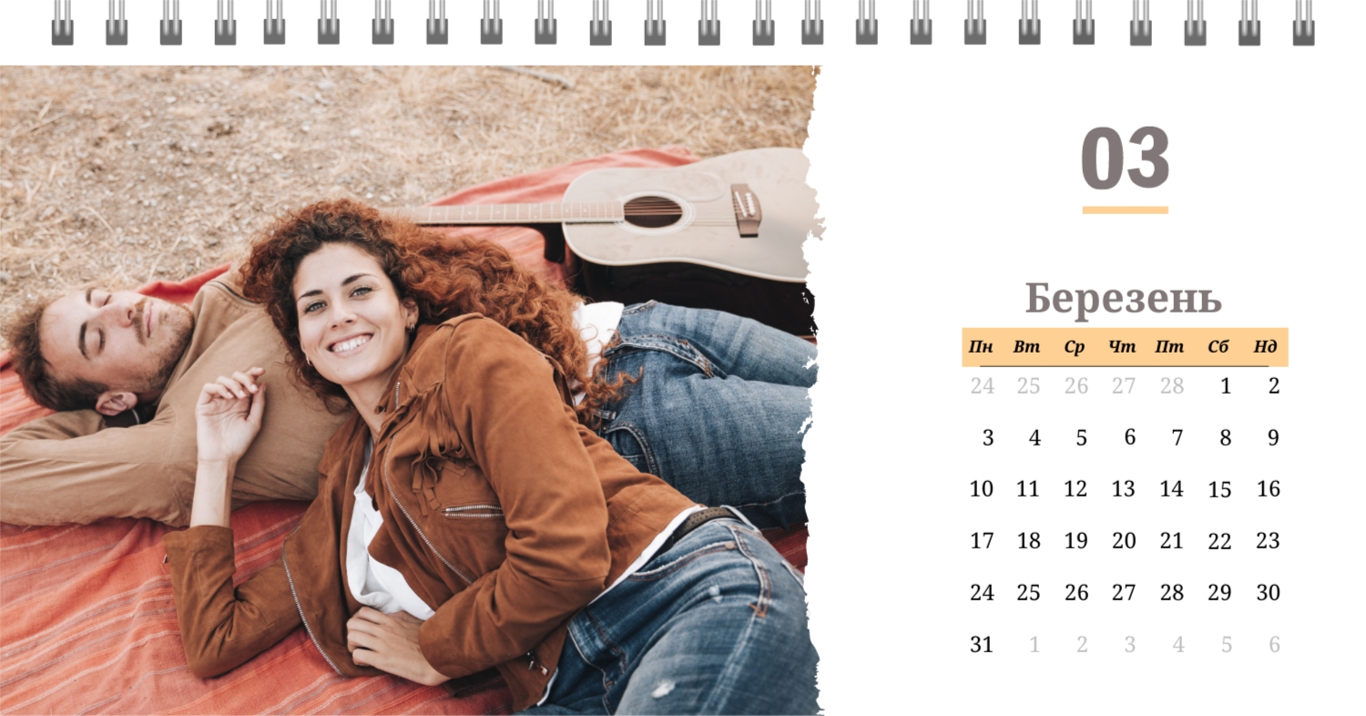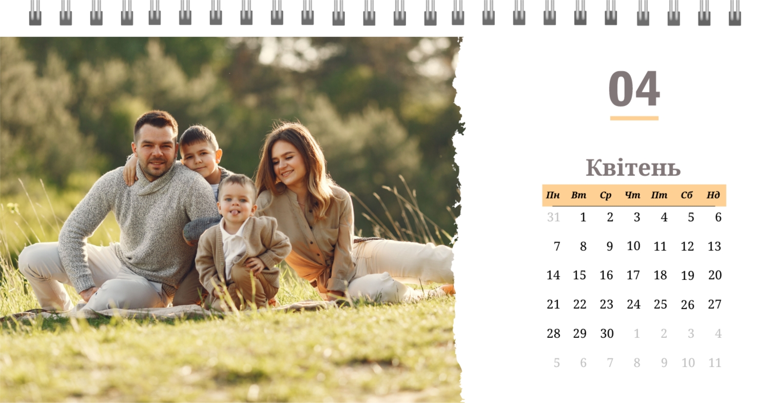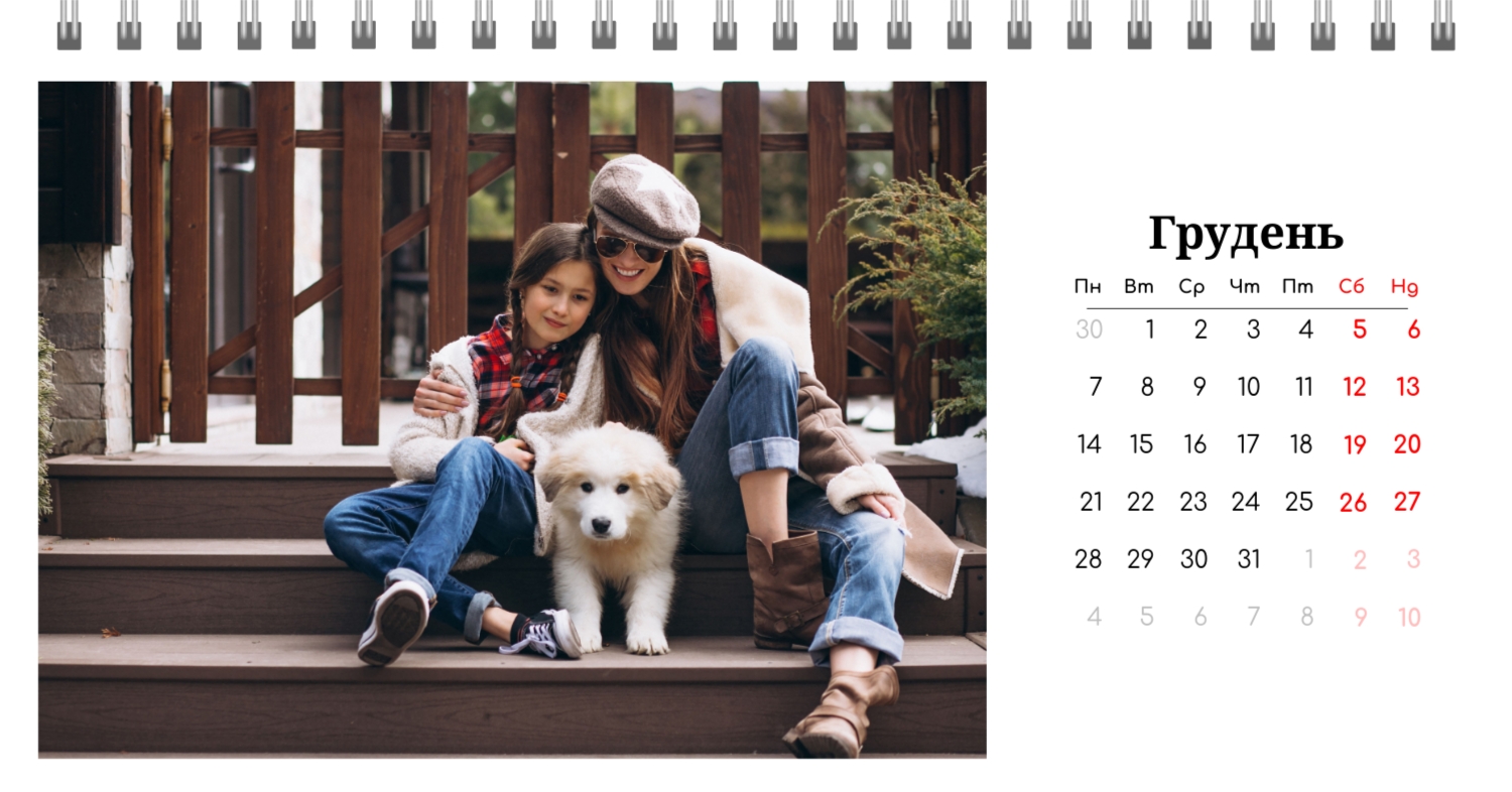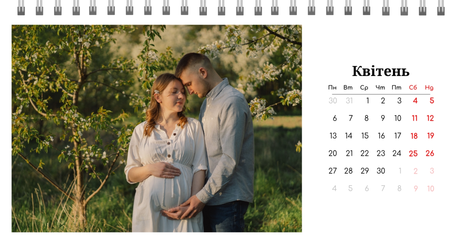 Готовий шаблон настільного перекидного горизонтального календаря з поздоровленням виконаний в мінімалістичному і сучасному стилі, де кожен місяць зустрічає користувача коротким привітанням. В онлайн-конструкторі цей шаблон можна легко адаптувати під особисті або корпоративні завдання. Є можливість змінити фон, вибрати інші поєднання шрифтів, замінити привітальні фрази або залишити їх у вихідному вигляді, скорегувати колірну гамму, Додати фотографії, ілюстрації або фірмову графіку. При необхідності можна вставити логотип компанії, контактні дані або мотиваційні цитати, щоб календар став частиною корпоративного стилю або персональним творчим об'єктом для натхнення.