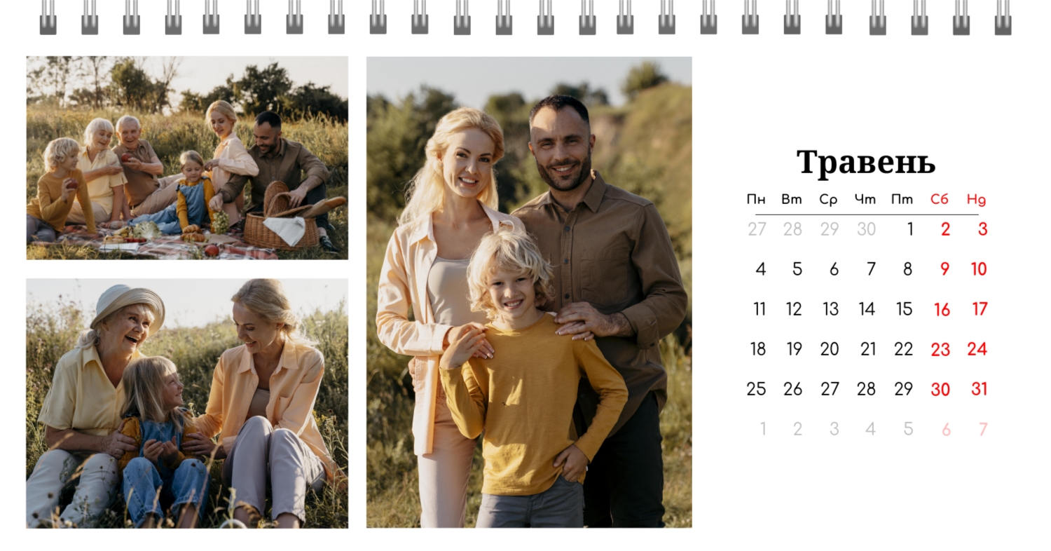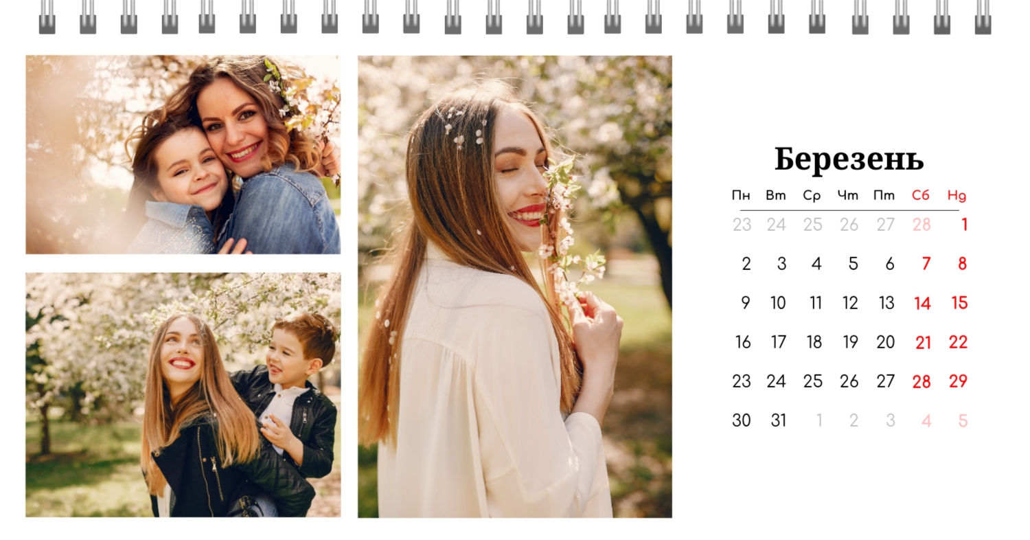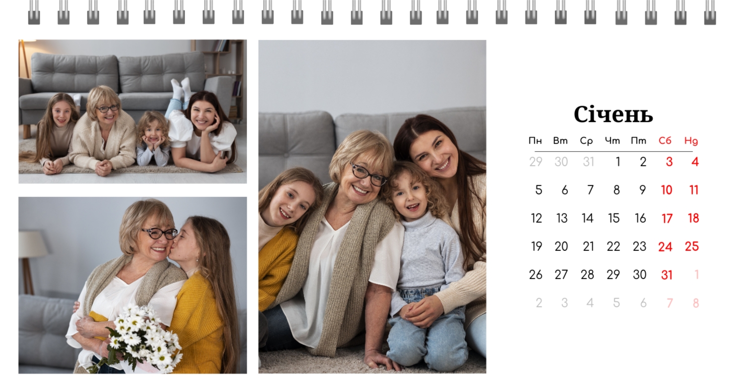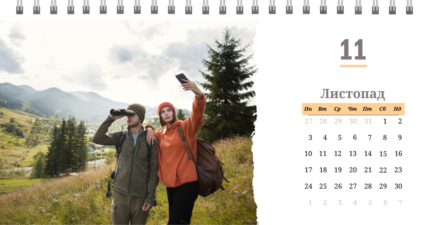 Готовий шаблон настільного перекидного горизонтального календаря з поздоровленням виконаний в мінімалістичному і сучасному стилі, де кожен місяць зустрічає користувача коротким привітанням. В онлайн-конструкторі цей шаблон можна легко адаптувати під особисті або корпоративні завдання. Є можливість змінити фон, вибрати інші поєднання шрифтів, замінити привітальні фрази або залишити їх у вихідному вигляді, скорегувати колірну гамму, Додати фотографії, ілюстрації або фірмову графіку. При необхідності можна вставити логотип компанії, контактні дані або мотиваційні цитати, щоб календар став частиною корпоративного стилю або персональним творчим об'єктом для натхнення.