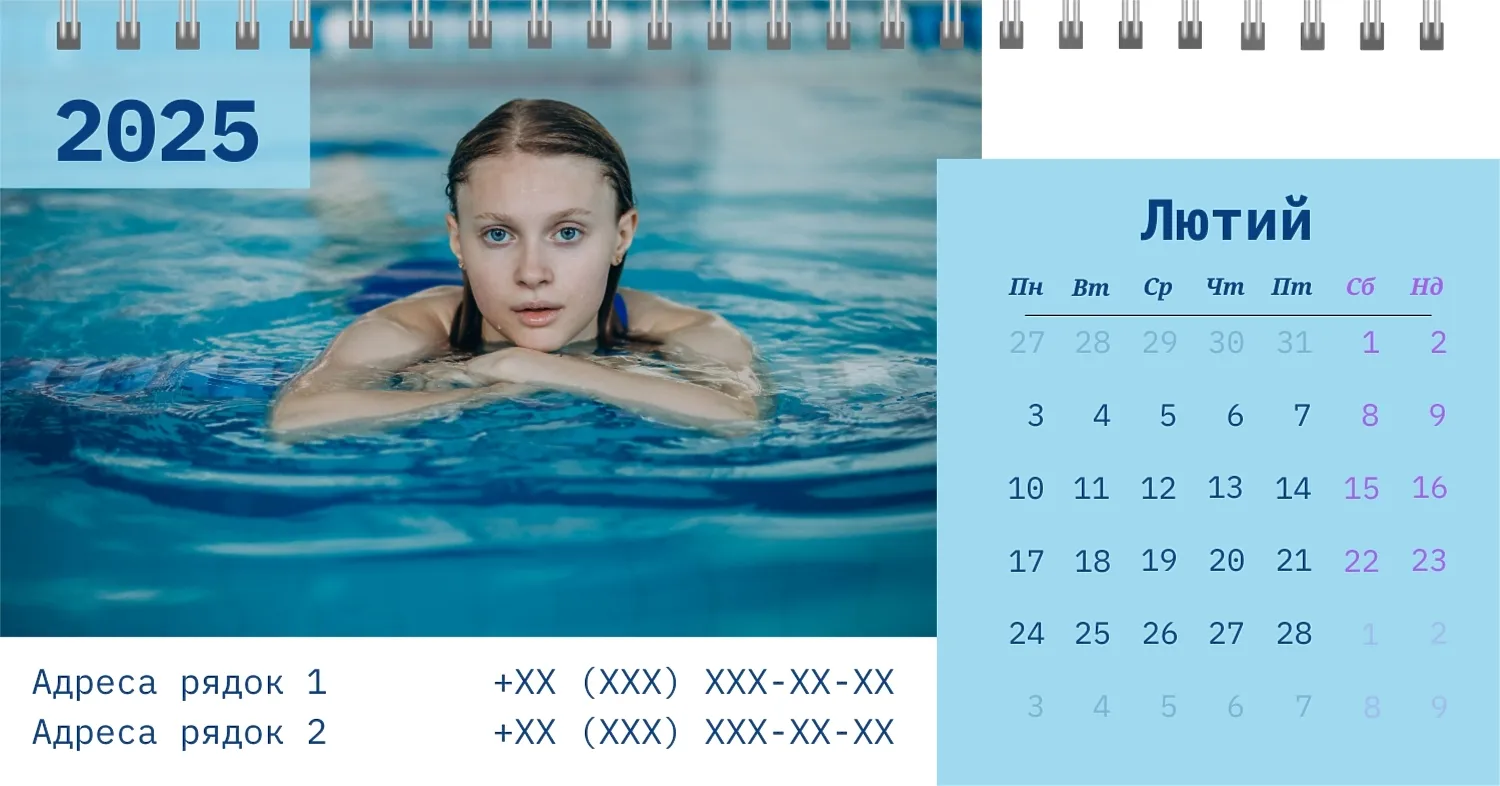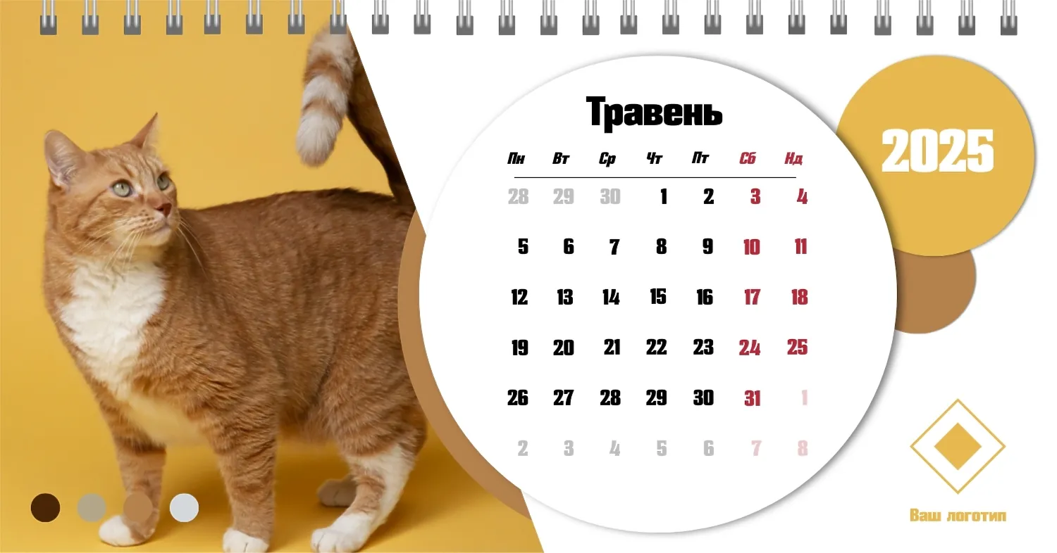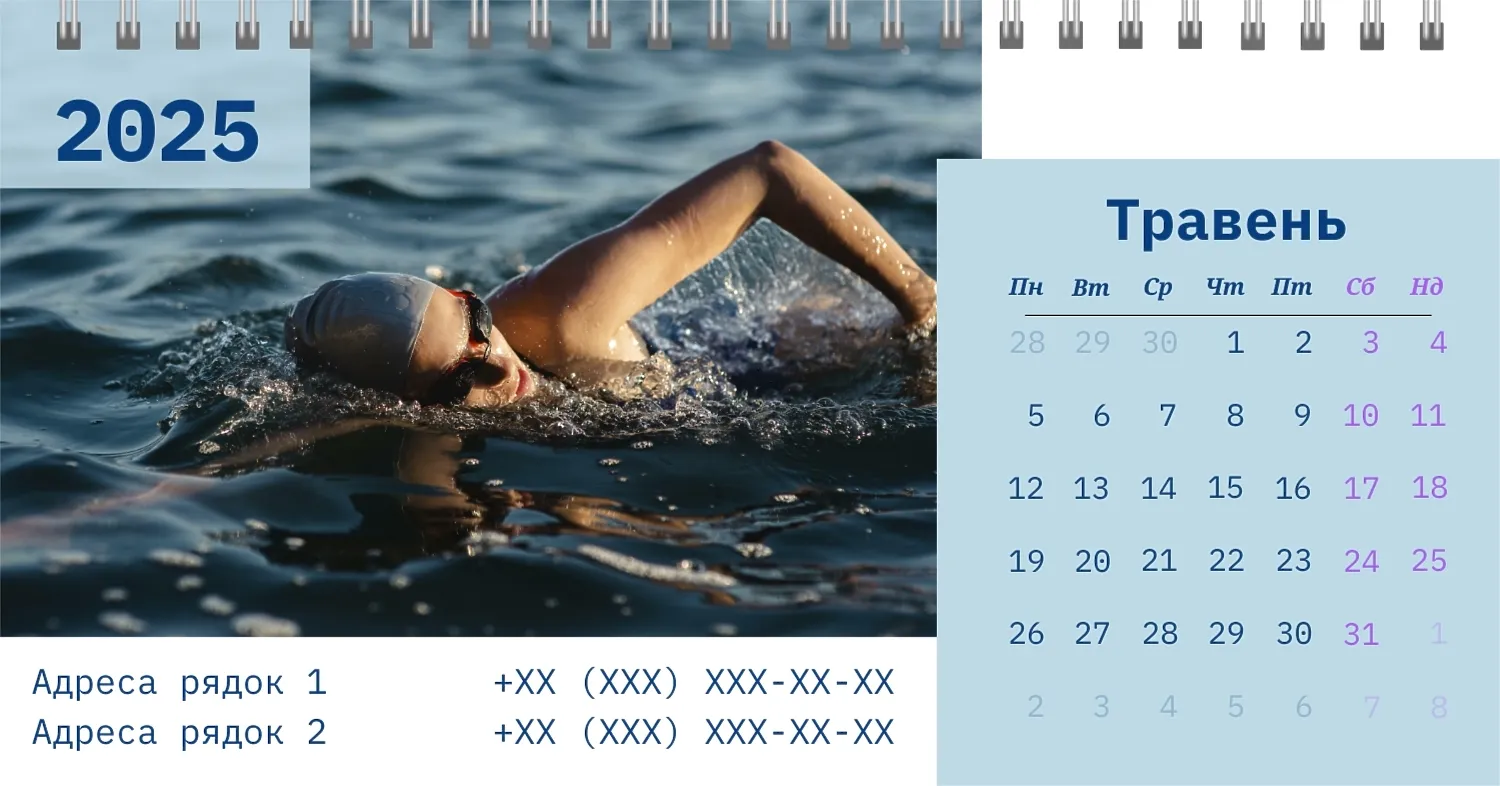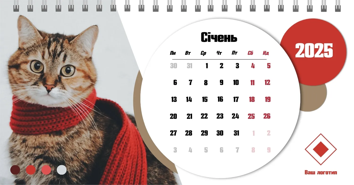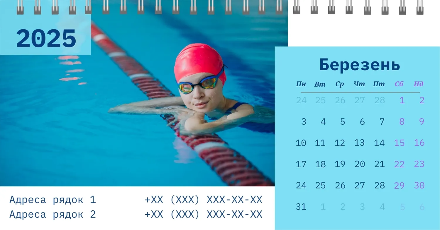 Готовий шаблон настільного горизонтального перекидного календаря з кіньми створений для тих, хто цінує природну гармонію, динаміку і символіку сили. На зображеннях представлені потужні і благородні тварини, які асоціюються зі свободою, прагненням вперед і внутрішньою рівновагою. Такий календар прекрасно підійде для кінних клубів, ферм, ветеринарних центрів, зоомагазинів, а також для тренерів, інструкторів, фотографів і всіх, хто захоплений кінним спортом або просто любить коней. Він буде однаково доречний як в робочому кабінеті, так і в домашньому інтер'єрі, створюючи атмосферу спокою і натхнення. У нашому онлайн-конструкторі цей шаблон можна легко адаптувати під особисті переваги. Ви можете замінити фотографії на свої власні знімки коней, додати логотип клубу або господарства, змінити шрифти, кольори і розстановку елементів. Є можливість підписати місяці, виділити важливі дати, відзначити змагання, тренування, дні народження та інші події. Будь-який елемент календаря – від фону до дрібних деталей-піддається редагуванню, що дозволяє створити дійсно персоналізований варіант. Онлайн-конструктор працює максимально зручно і просто: всі зміни відображаються відразу, можна експериментувати з композиціями, пробувати різні стилі і зберігати кілька варіантів.