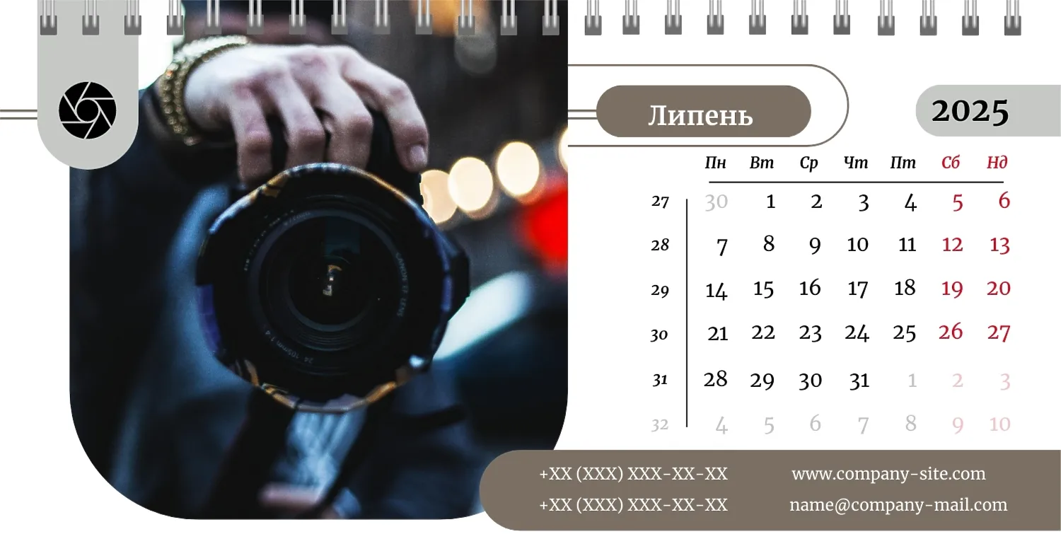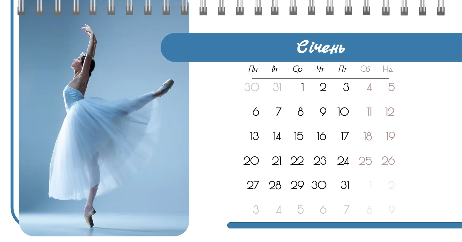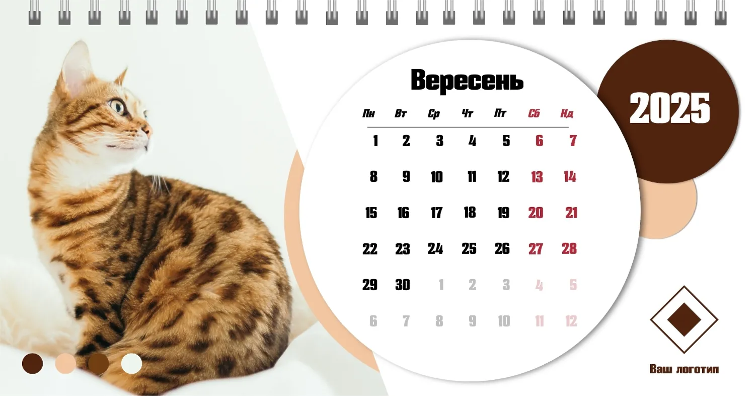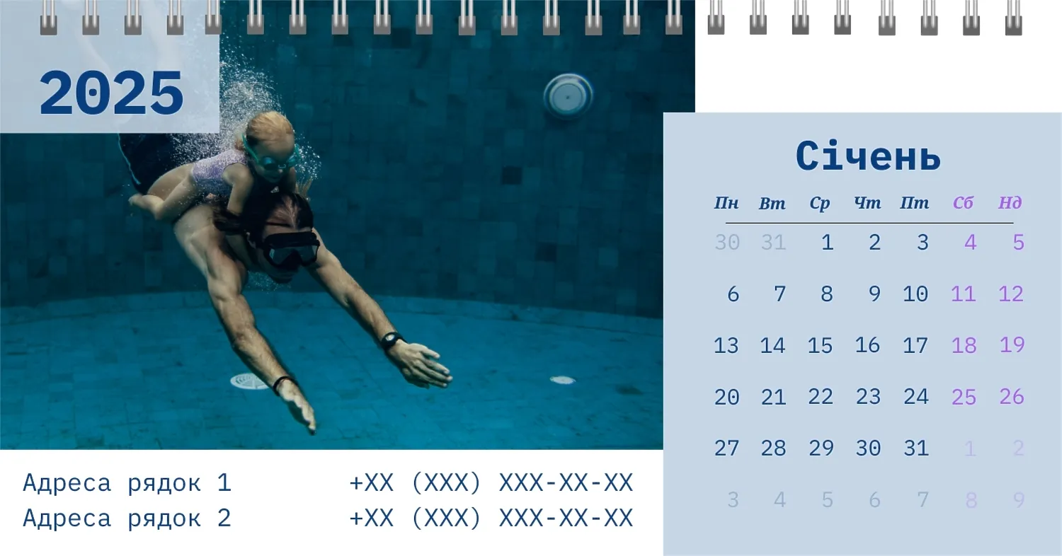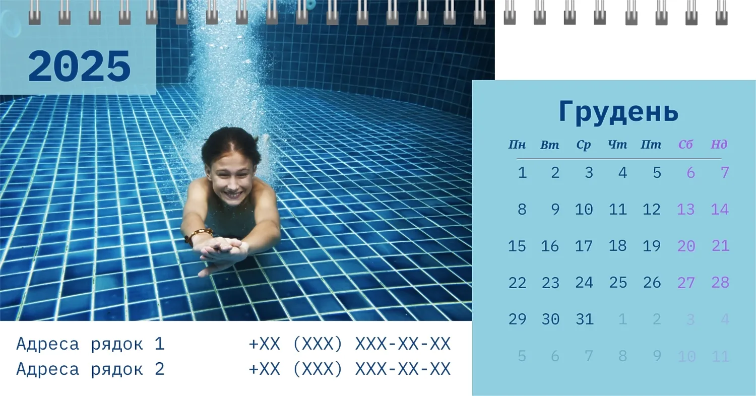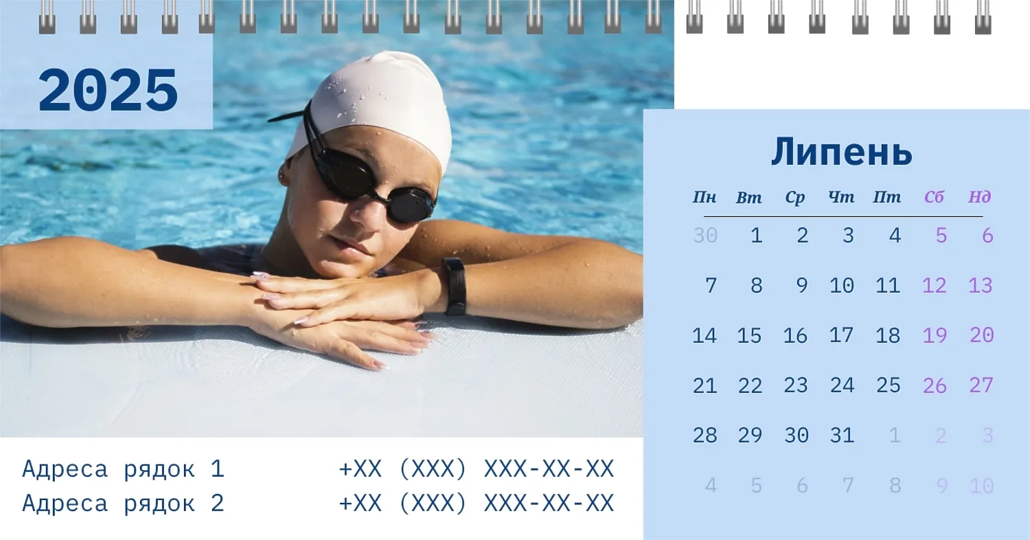 Готовий шаблон настільного горизонтального перекидного календаря з кіньми створений для тих, хто цінує природну гармонію, динаміку і символіку сили. На зображеннях представлені потужні і благородні тварини, які асоціюються зі свободою, прагненням вперед і внутрішньою рівновагою. Такий календар прекрасно підійде для кінних клубів, ферм, ветеринарних центрів, зоомагазинів, а також для тренерів, інструкторів, фотографів і всіх, хто захоплений кінним спортом або просто любить коней. Він буде однаково доречний як в робочому кабінеті, так і в домашньому інтер'єрі, створюючи атмосферу спокою і натхнення. У нашому онлайн-конструкторі цей шаблон можна легко адаптувати під особисті переваги. Ви можете замінити фотографії на свої власні знімки коней, додати логотип клубу або господарства, змінити шрифти, кольори і розстановку елементів. Є можливість підписати місяці, виділити важливі дати, відзначити змагання, тренування, дні народження та інші події. Будь-який елемент календаря – від фону до дрібних деталей-піддається редагуванню, що дозволяє створити дійсно персоналізований варіант. Онлайн-конструктор працює максимально зручно і просто: всі зміни відображаються відразу, можна експериментувати з композиціями, пробувати різні стилі і зберігати кілька варіантів.