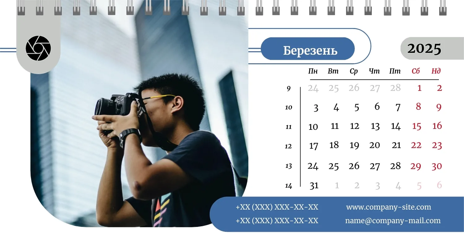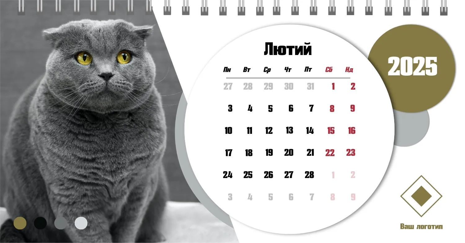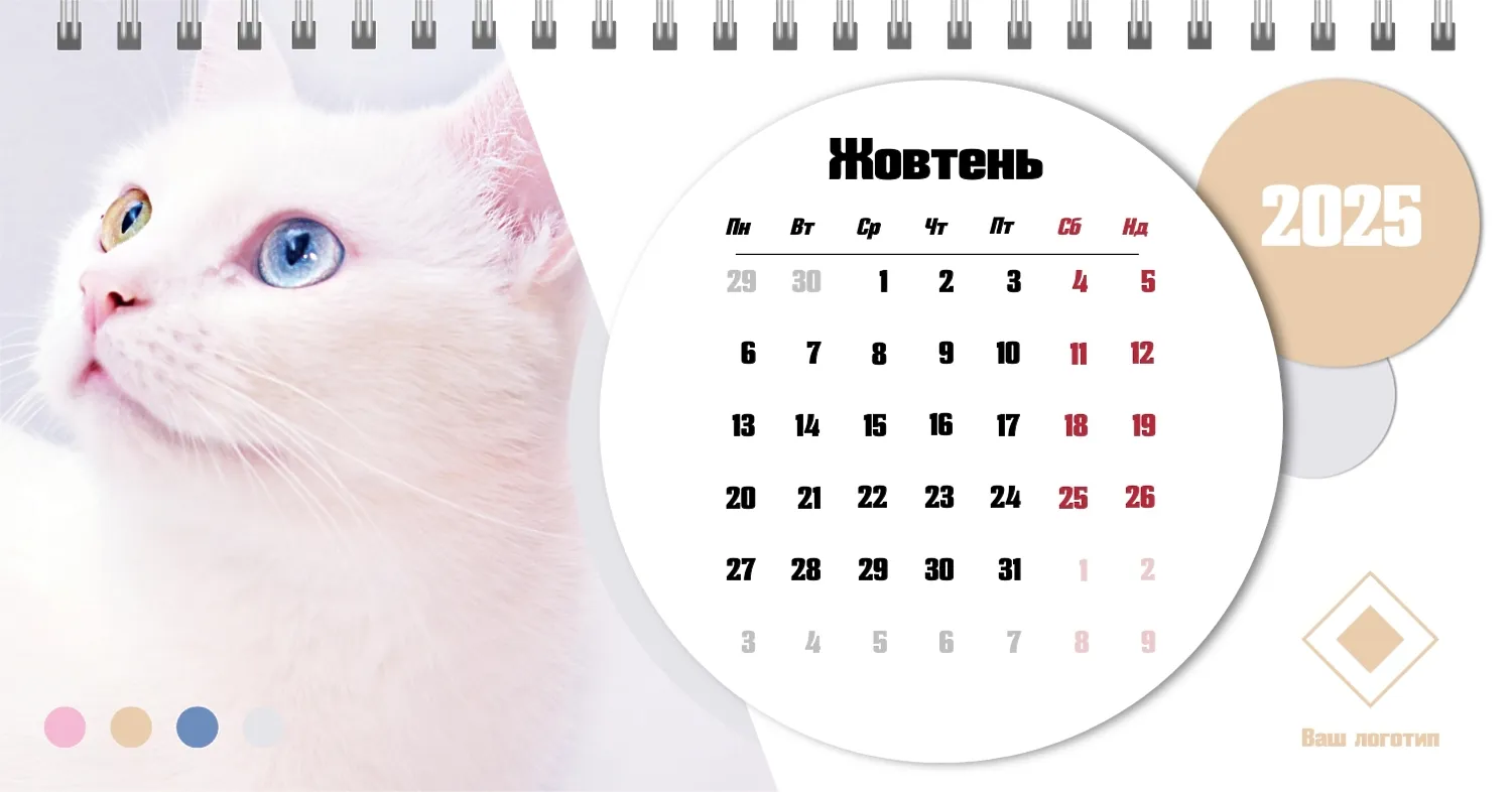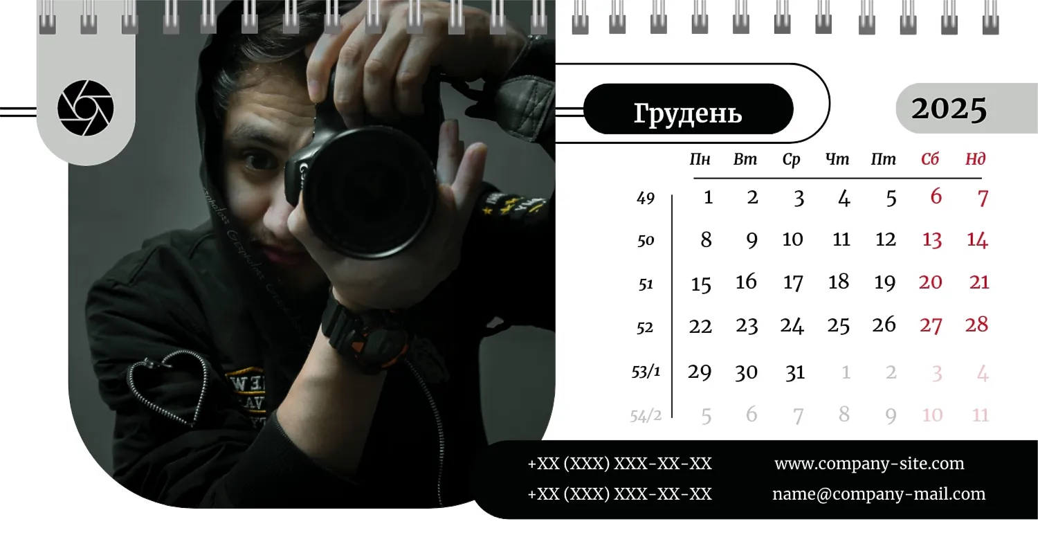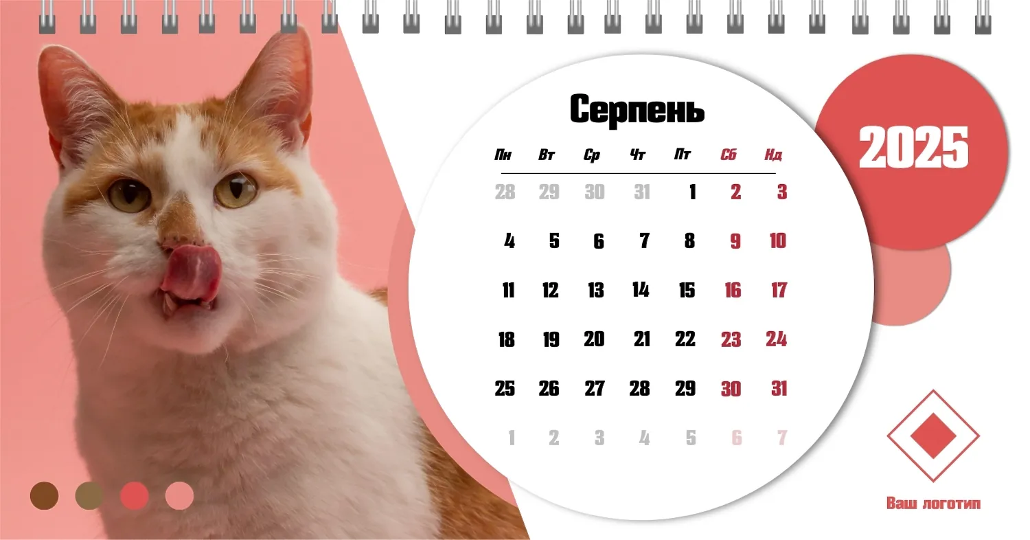 Готовий шаблон настільного горизонтального перекидного календаря з кіньми створений для тих, хто цінує природну гармонію, динаміку і символіку сили. На зображеннях представлені потужні і благородні тварини, які асоціюються зі свободою, прагненням вперед і внутрішньою рівновагою. Такий календар прекрасно підійде для кінних клубів, ферм, ветеринарних центрів, зоомагазинів, а також для тренерів, інструкторів, фотографів і всіх, хто захоплений кінним спортом або просто любить коней. Він буде однаково доречний як в робочому кабінеті, так і в домашньому інтер'єрі, створюючи атмосферу спокою і натхнення. У нашому онлайн-конструкторі цей шаблон можна легко адаптувати під особисті переваги. Ви можете замінити фотографії на свої власні знімки коней, додати логотип клубу або господарства, змінити шрифти, кольори і розстановку елементів. Є можливість підписати місяці, виділити важливі дати, відзначити змагання, тренування, дні народження та інші події. Будь-який елемент календаря – від фону до дрібних деталей-піддається редагуванню, що дозволяє створити дійсно персоналізований варіант. Онлайн-конструктор працює максимально зручно і просто: всі зміни відображаються відразу, можна експериментувати з композиціями, пробувати різні стилі і зберігати кілька варіантів.