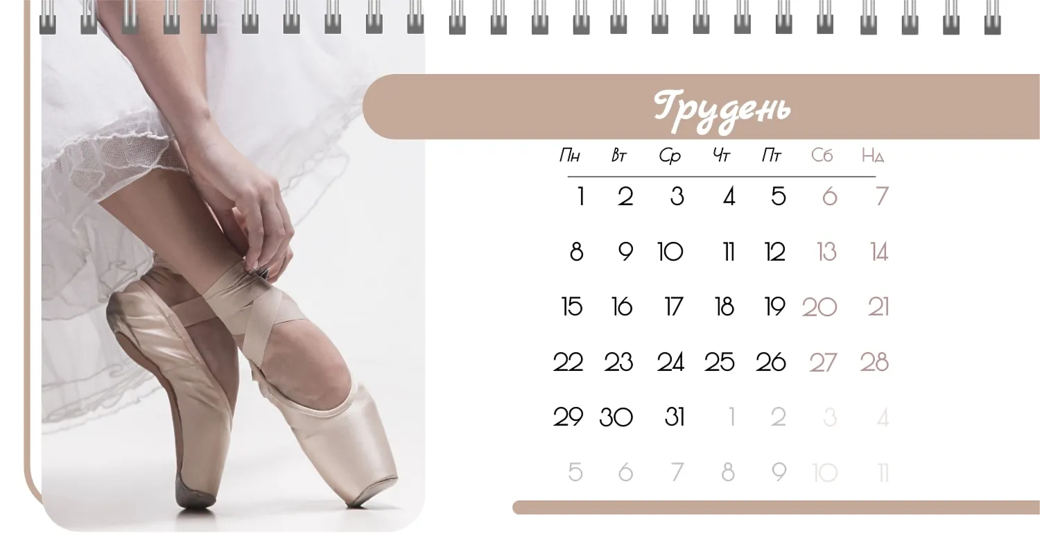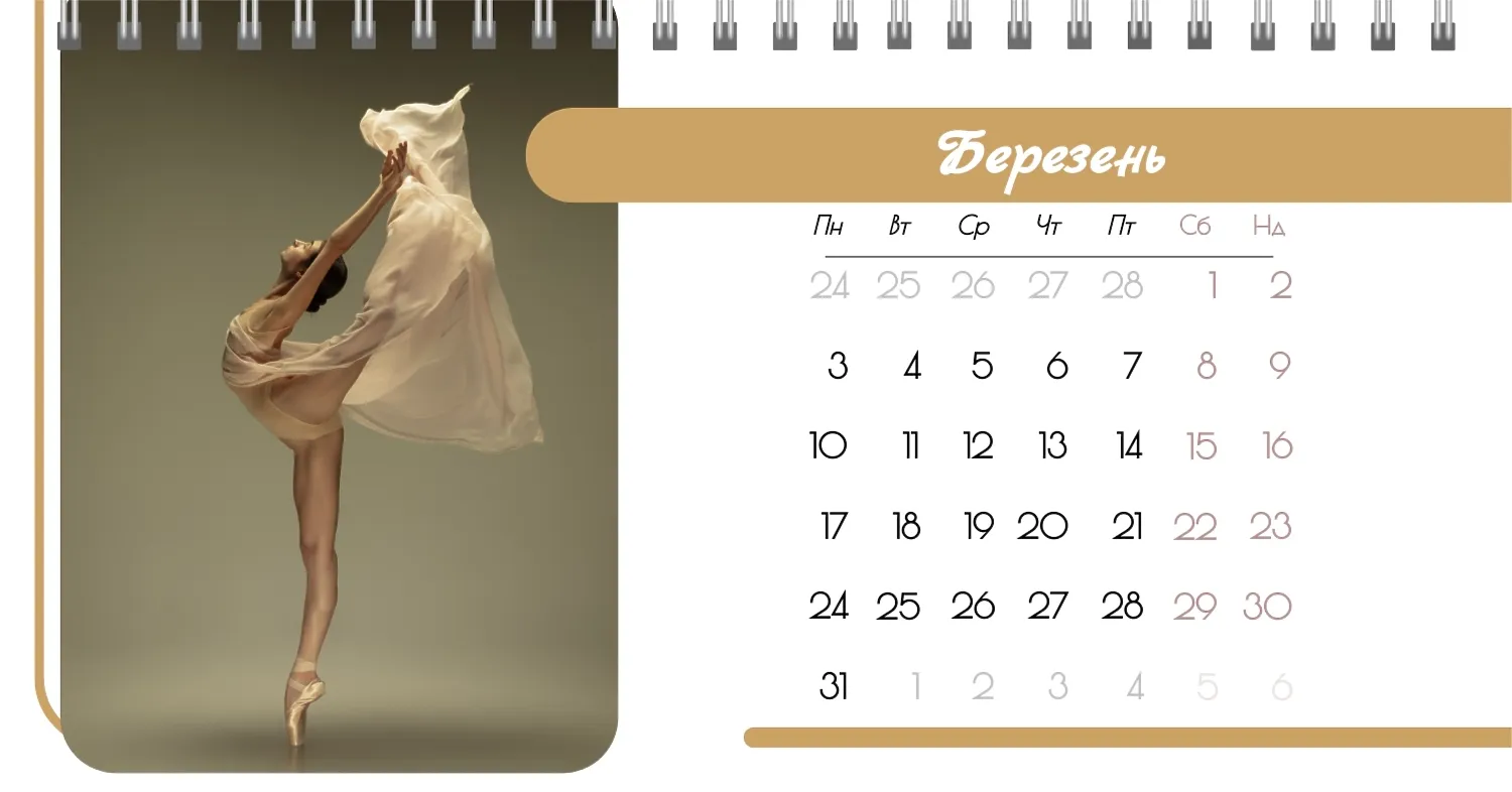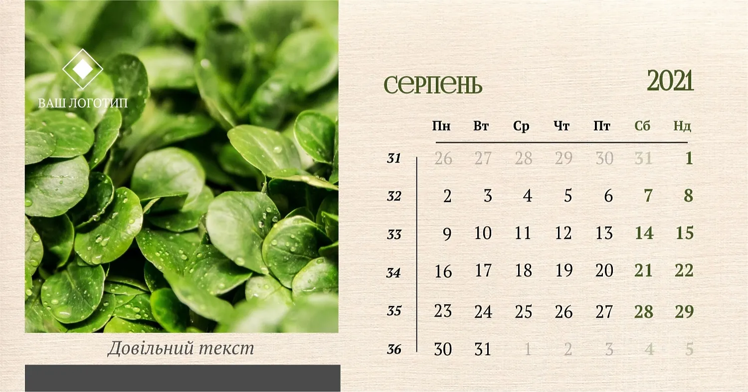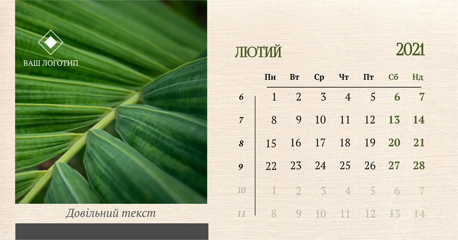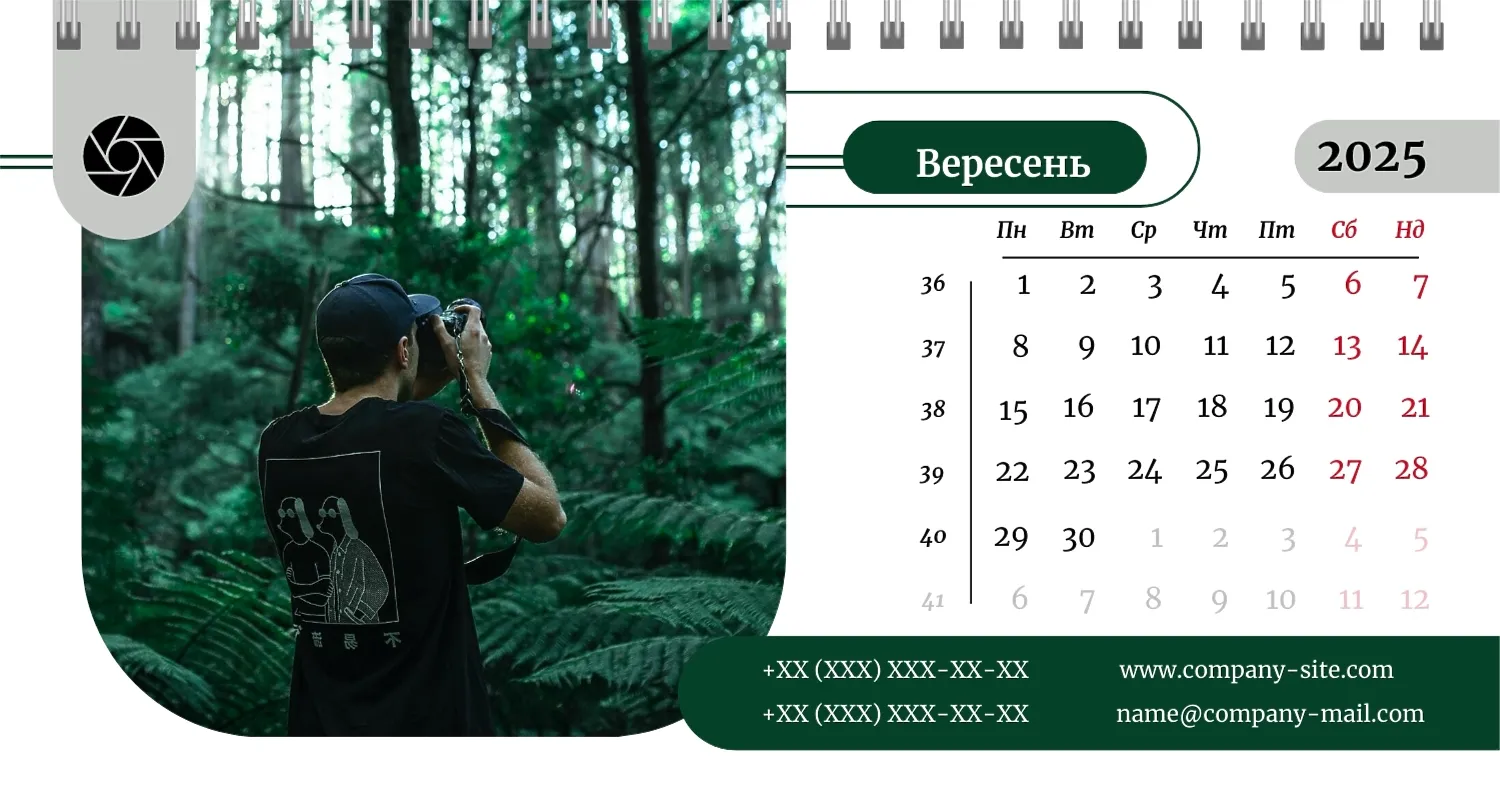 Готовий шаблон настільного горизонтального перекидного календаря з кіньми створений для тих, хто цінує природну гармонію, динаміку і символіку сили. На зображеннях представлені потужні і благородні тварини, які асоціюються зі свободою, прагненням вперед і внутрішньою рівновагою. Такий календар прекрасно підійде для кінних клубів, ферм, ветеринарних центрів, зоомагазинів, а також для тренерів, інструкторів, фотографів і всіх, хто захоплений кінним спортом або просто любить коней. Він буде однаково доречний як в робочому кабінеті, так і в домашньому інтер'єрі, створюючи атмосферу спокою і натхнення. У нашому онлайн-конструкторі цей шаблон можна легко адаптувати під особисті переваги. Ви можете замінити фотографії на свої власні знімки коней, додати логотип клубу або господарства, змінити шрифти, кольори і розстановку елементів. Є можливість підписати місяці, виділити важливі дати, відзначити змагання, тренування, дні народження та інші події. Будь-який елемент календаря – від фону до дрібних деталей-піддається редагуванню, що дозволяє створити дійсно персоналізований варіант. Онлайн-конструктор працює максимально зручно і просто: всі зміни відображаються відразу, можна експериментувати з композиціями, пробувати різні стилі і зберігати кілька варіантів.