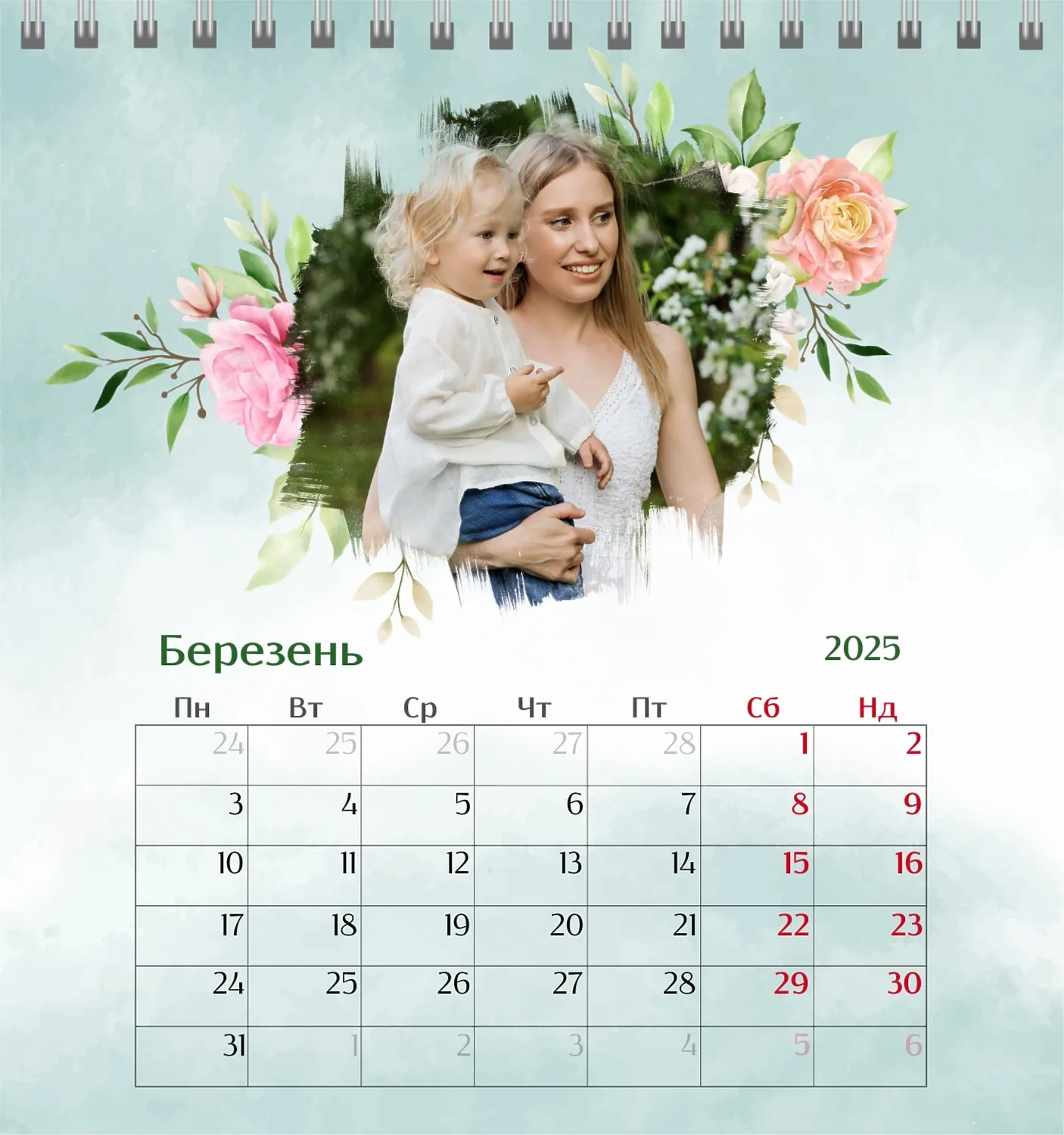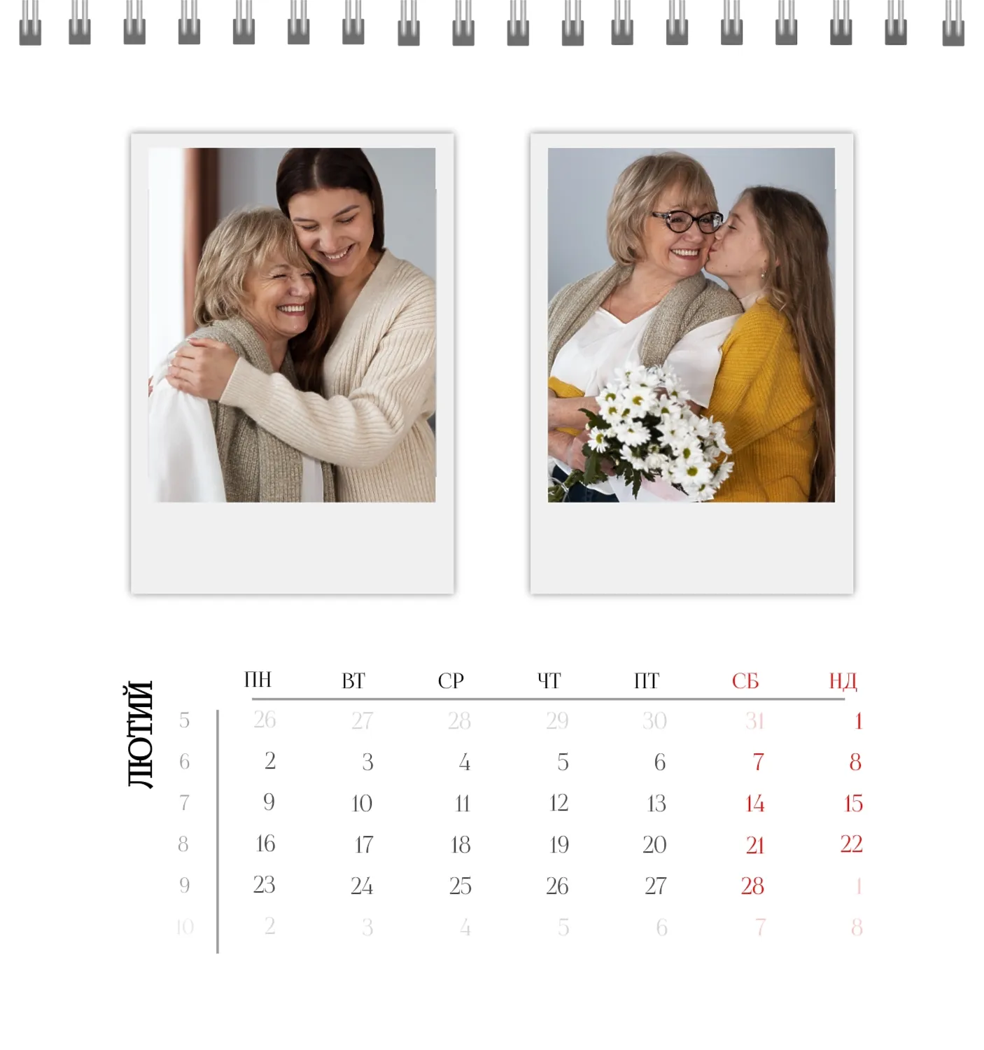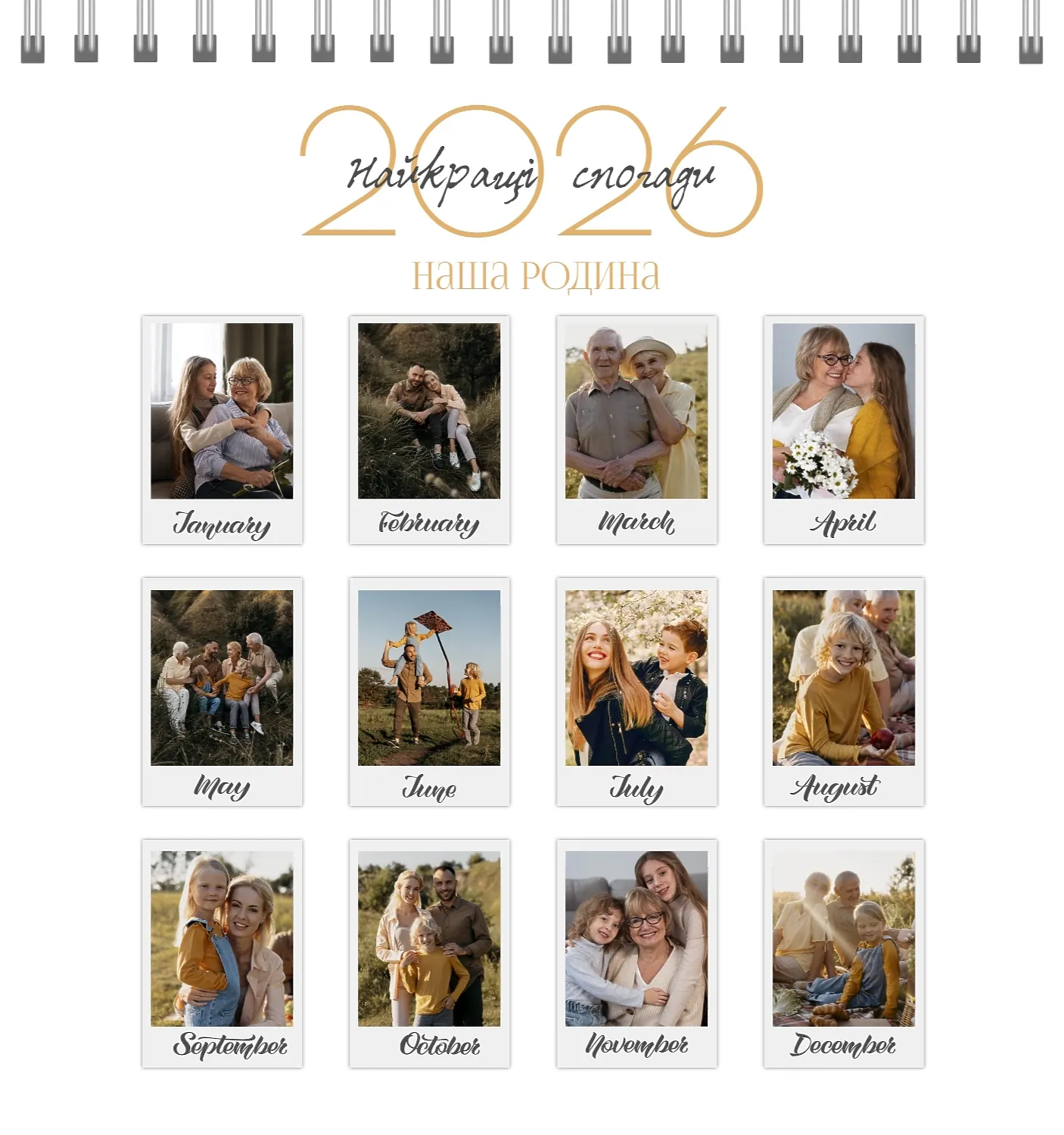 Готовий шаблон настільного календаря з поздоровленням виконаний в мінімалістичному і сучасному стилі, де кожен місяць зустрічає користувача коротким привітанням. Такий підхід робить календар не просто інструментом для планування, але і стильним елементом інтер'єру. Він може підійти дизайнерам, маркетологам, фотографам, творчим фахівцям, викладачам, фрілансерам, власникам невеликих студій або салонів, а також будь-кому, хто цінує естетичність і акуратну візуальну організацію робочого простору. В онлайн-конструкторі цей шаблон можна легко адаптувати під особисті або корпоративні завдання. Є можливість змінити фон, вибрати інші поєднання шрифтів, замінити привітальні фрази або залишити їх у вихідному вигляді, скорегувати колірну гамму, Додати фотографії, ілюстрації або фірмову графіку. При необхідності можна вставити логотип компанії, контактні дані або мотиваційні цитати, щоб календар став частиною корпоративного стилю або персональним творчим об'єктом для натхнення.