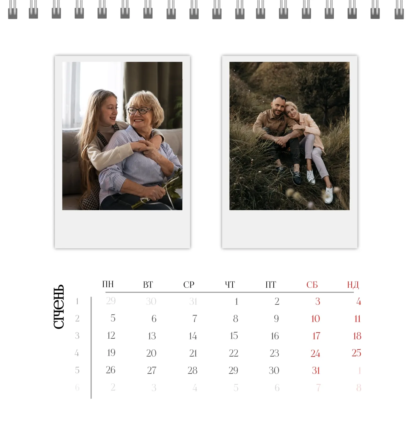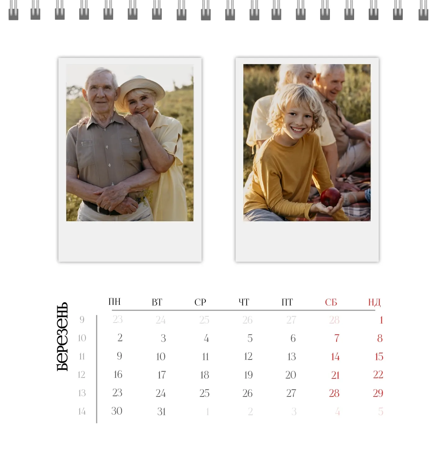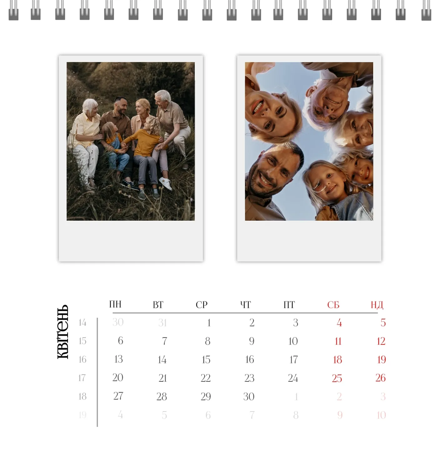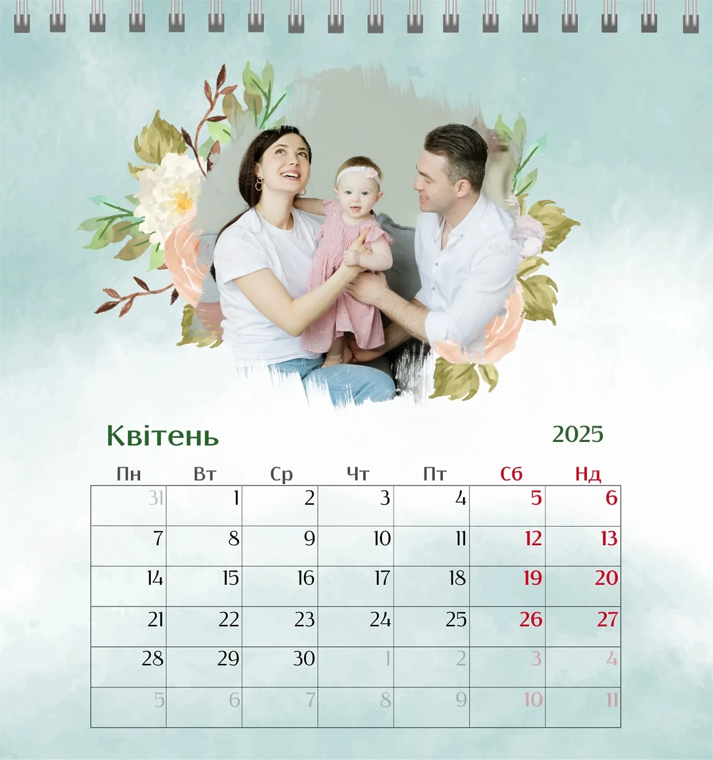 Готовий шаблон настільного календаря з поздоровленням виконаний в мінімалістичному і сучасному стилі, де кожен місяць зустрічає користувача коротким привітанням. Такий підхід робить календар не просто інструментом для планування, але і стильним елементом інтер'єру. Він може підійти дизайнерам, маркетологам, фотографам, творчим фахівцям, викладачам, фрілансерам, власникам невеликих студій або салонів, а також будь-кому, хто цінує естетичність і акуратну візуальну організацію робочого простору. В онлайн-конструкторі цей шаблон можна легко адаптувати під особисті або корпоративні завдання. Є можливість змінити фон, вибрати інші поєднання шрифтів, замінити привітальні фрази або залишити їх у вихідному вигляді, скорегувати колірну гамму, Додати фотографії, ілюстрації або фірмову графіку. При необхідності можна вставити логотип компанії, контактні дані або мотиваційні цитати, щоб календар став частиною корпоративного стилю або персональним творчим об'єктом для натхнення.