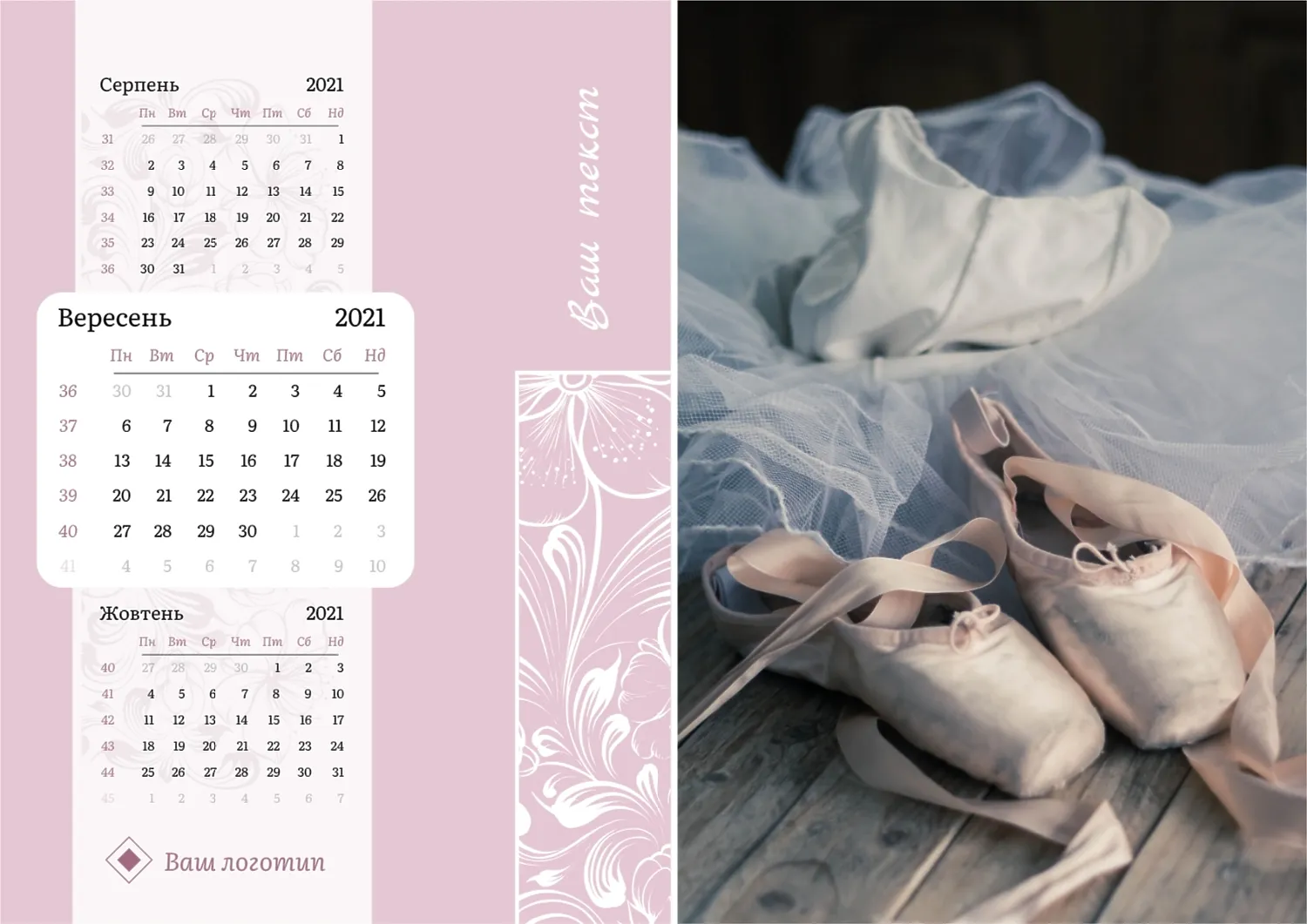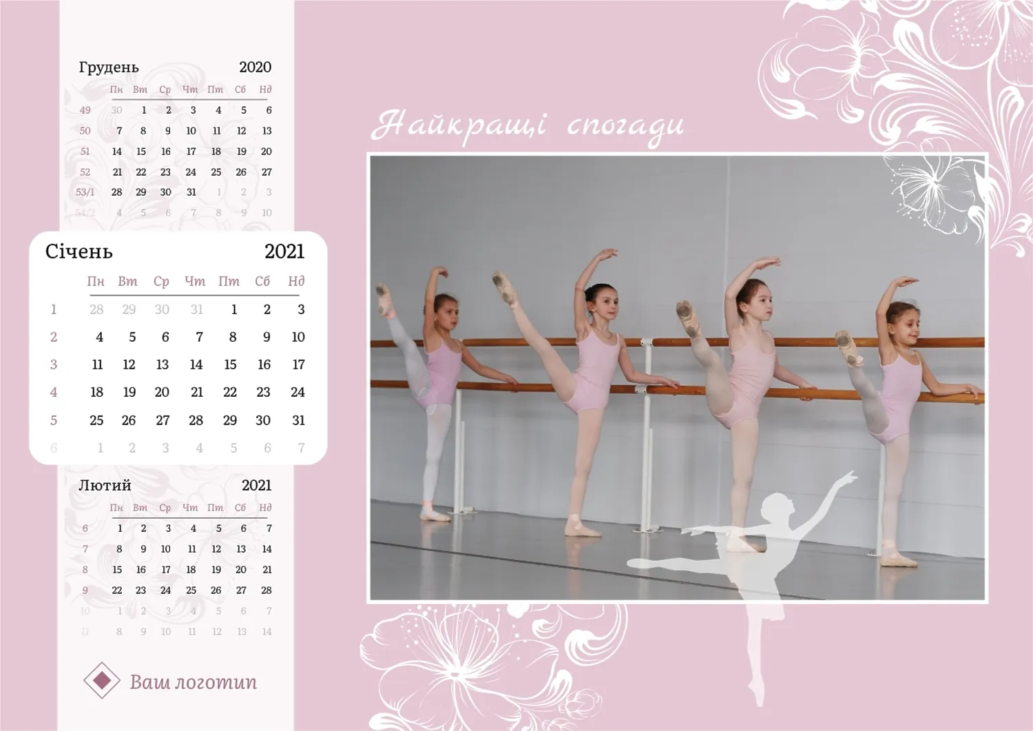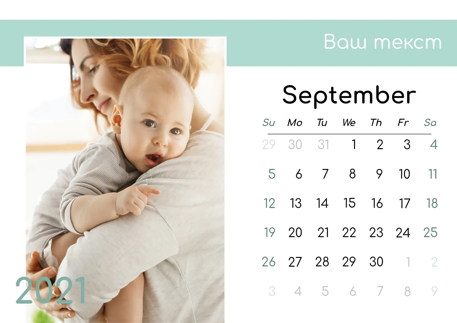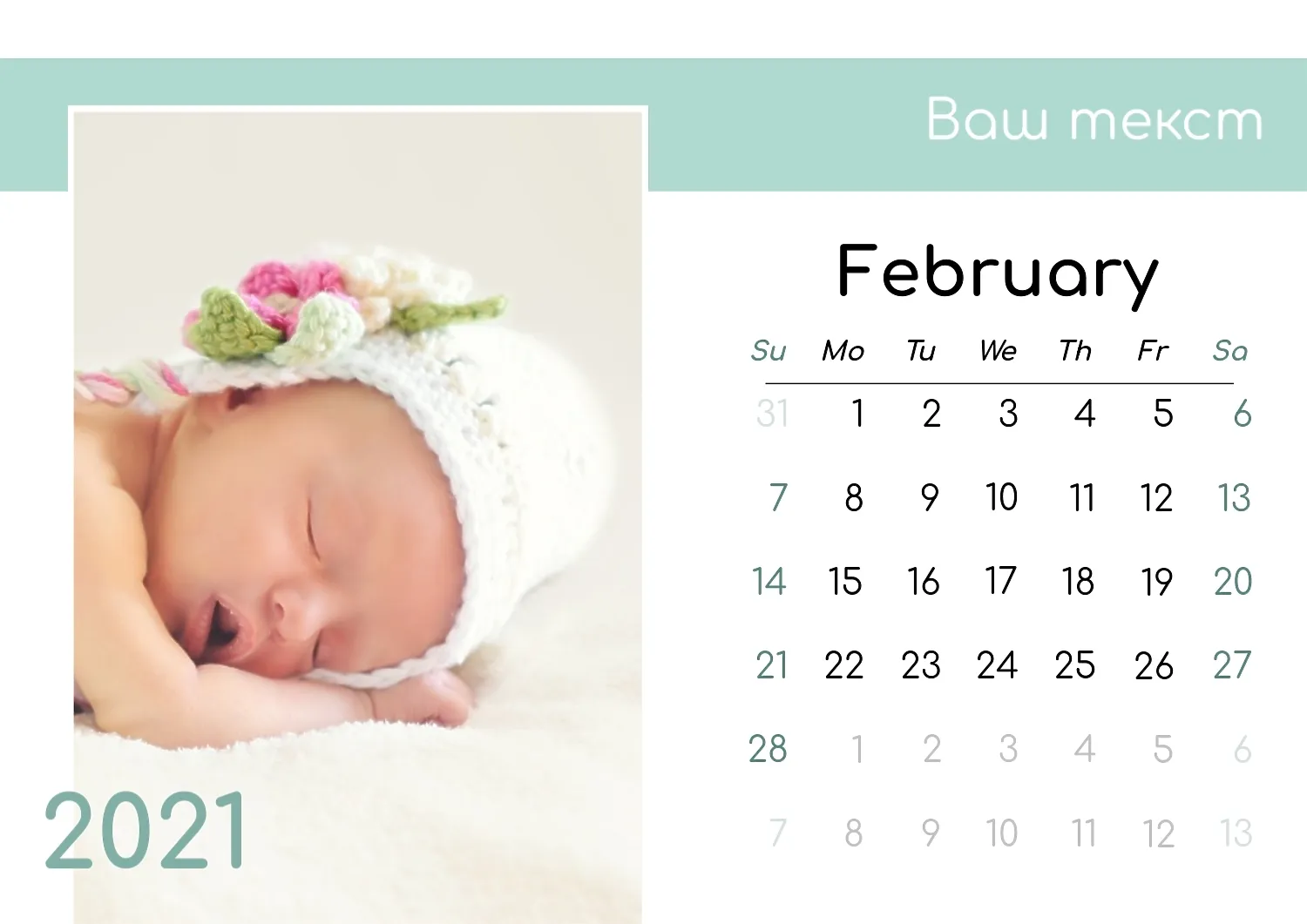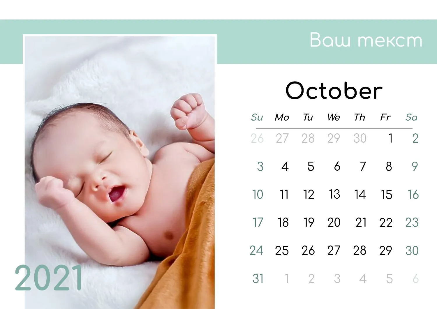 Готовий шаблон настінного горизонтального перекидного календаря з фото дітей і милим декоративним оформленням створений для тих, хто цінує теплі сімейні емоції і хоче перетворити звичайний календар в затишний персональний аксесуар. Ніжні пастельні відтінки, акуратні ілюстрації, дитячі елементи декору і акцент на фотографії роблять такий календар особливо привабливим для батьків, вихователів, педагогів творчих студій, дитячих фотографів і всіх, хто працює з дітьми або створює для них контент. Він підходить для сімейних архівів, дитячих садків, центрів розвитку та невеликих студій, які хочуть запропонувати клієнтам приємний та емоційний продукт. У нашому онлайн-конструкторі цей шаблон легко перетворити під власні завдання. Ви можете замінити фотографії, змінювати розташування елементів, редагувати написи, вибирати інші шрифти і відтінки, додавати декоративні вставки або навпаки — прибирати зайві, щоб створити більш минималистичную композицію. Кожен місяць можна оформити по-різному, додавши важливі дати, індивідуальні примітки або невеликі картинки, які підкреслюють характер дитини або тематику фото.