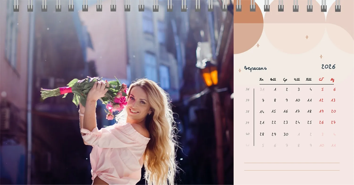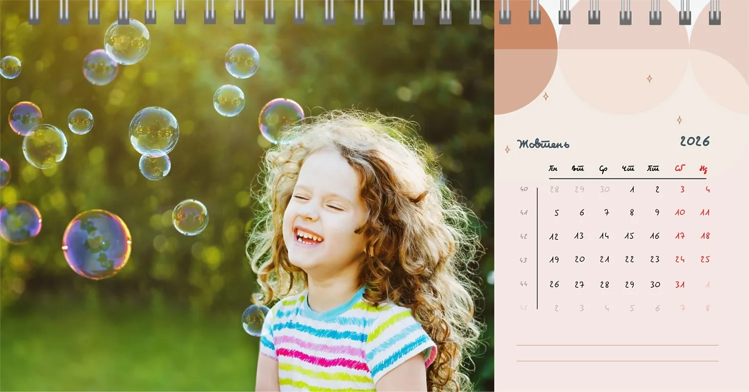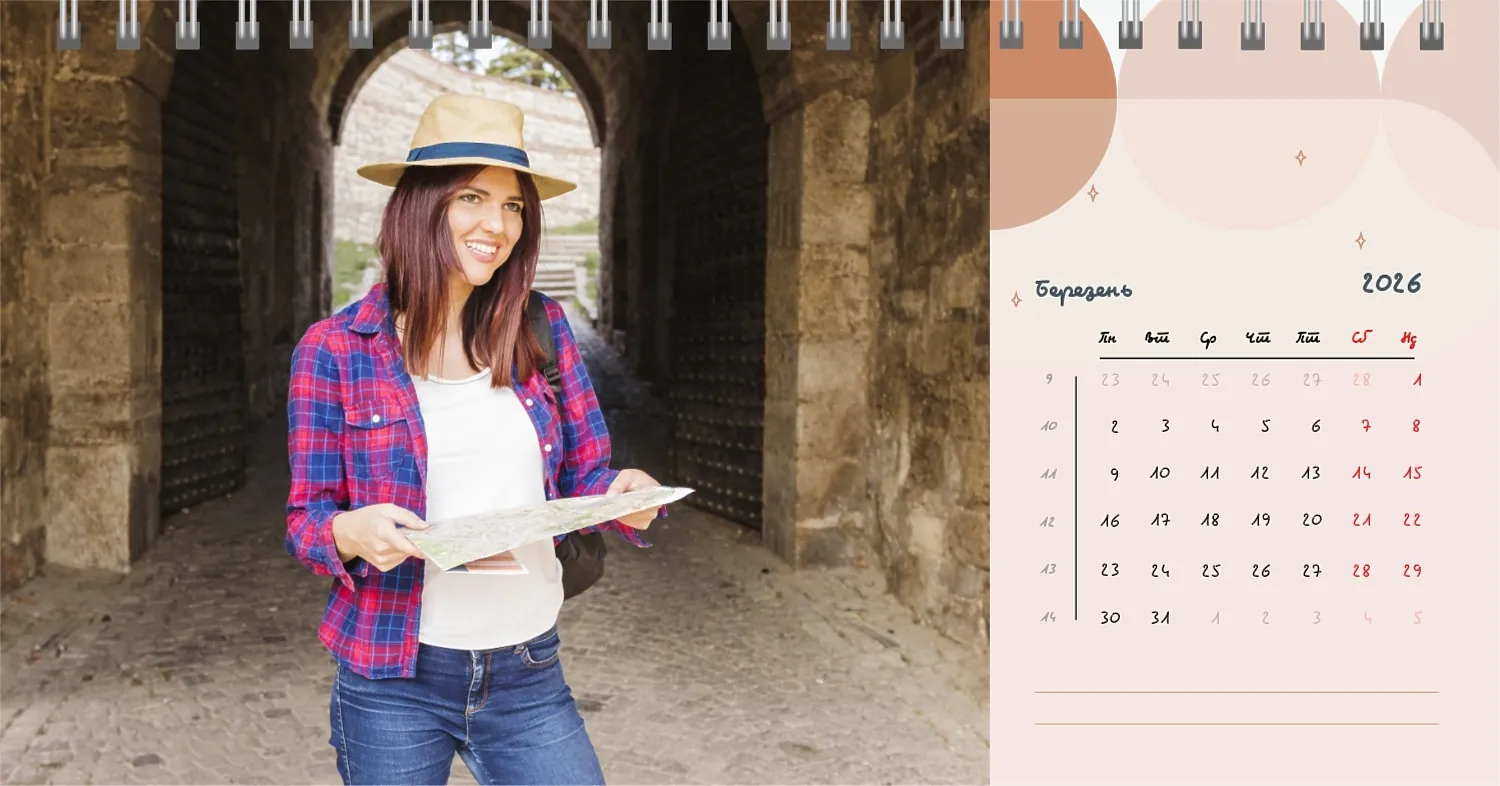 Готовий шаблон настільного перекидного календаря "кращі спогади" створений для тих, хто хоче зберегти важливі моменти і надати їм красиву візуальну форму. В онлайн-конструкторі шаблон можна легко адаптувати під будь-яке завдання. Ви можете замінити фотографії на свої, вибрати найбільш значущі моменти року, змінити підписи до місяців, відзначити важливі дати або свята, додати імена, місця і навіть короткі історії. Шрифти, розміри зображень, кольорові акценти — все це доступно для редагування. Якщо календар створюється для бізнесу, можна включити фірмовий стиль, логотип і корпоративні кольори, щоб зробити продукт одночасно функціональним і брендовим. Онлайн-конструктор дозволяє виконувати всі налаштування швидко і без складних навичок. Кожен елемент можна переміщати, редагувати і налаштовувати в режимі реального часу, відразу бачачи, як змінюється загальний вигляд календаря. Це дає можливість створити по-справжньому унікальне оформлення-будь то подарунок для близьких, стильний декор для дому або презентабельний календар для клієнтів. Шаблон "кращі спогади" стане основою, на якій легко побудувати особисту історію, наповнену теплом і значенням.