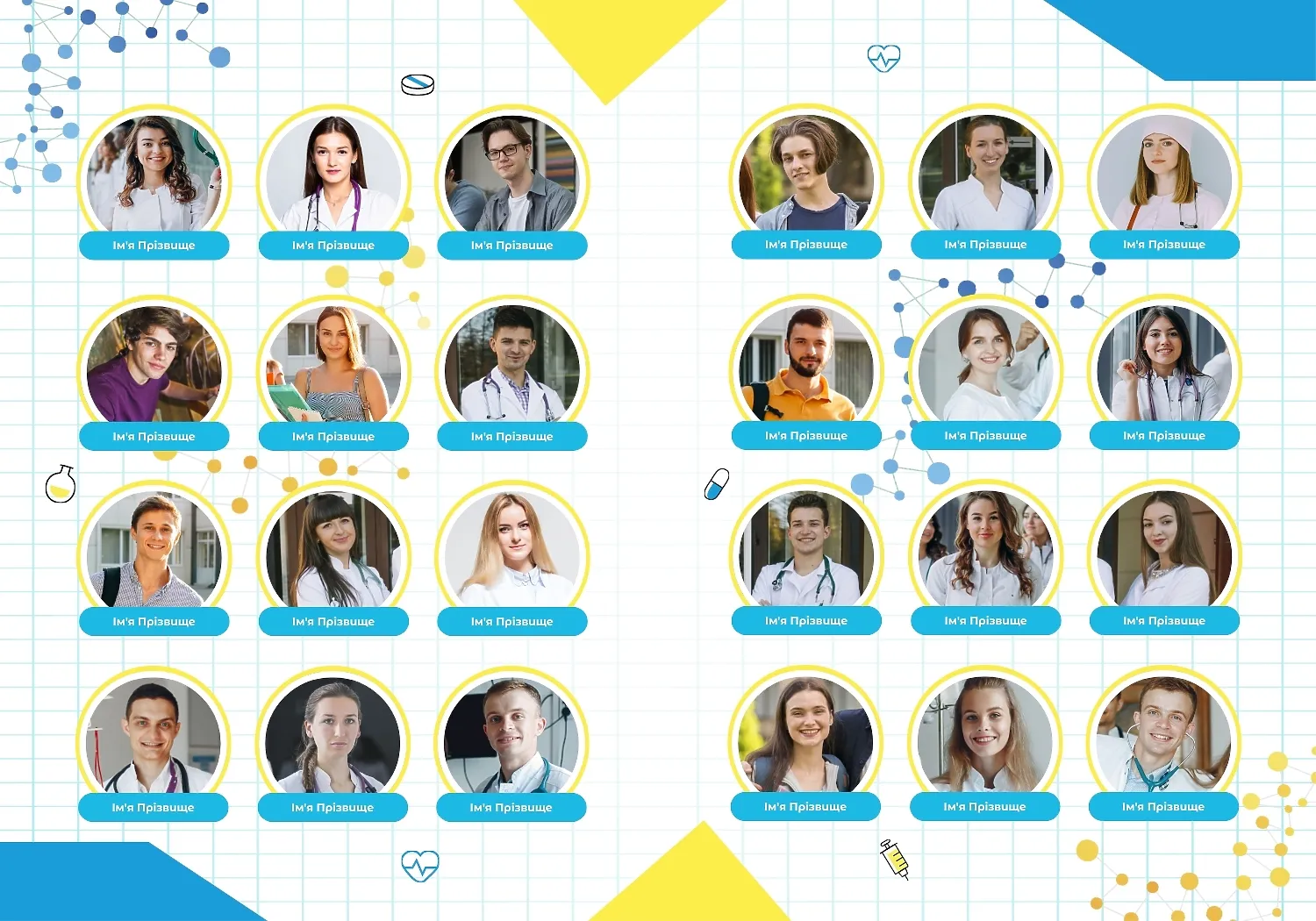 Готовий шаблон фотокниги для випускника медичного вишу в українському стилі являє собою напрочуд барвисте й надихаюче творіння, яке ви з легкістю можете адаптувати й налаштувати в нашому онлайн-конструкторі, щоб створити по-справжньому унікальний фотоальбом, що відображає ваш неповторний навчальний і життєвий шлях. У кожному розвороті вертикального панорамного фотоальбому відображається ваш унікальний шлях, починаючи з навчання і закінчуючи моментами радості та досягнень під час навчання в медичному ВНЗ. Використовуючи наш онлайн-конструктор, ви можете налаштувати цей шаблон під себе, обравши колірну гамму, додавши додаткові сторінки та вставивши ваші власні фотографії й тексти.