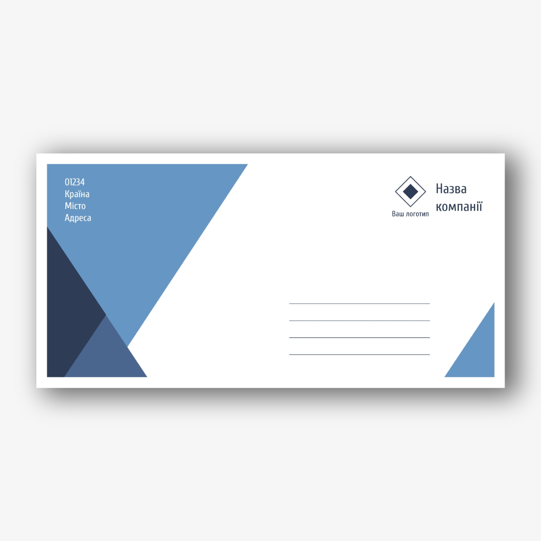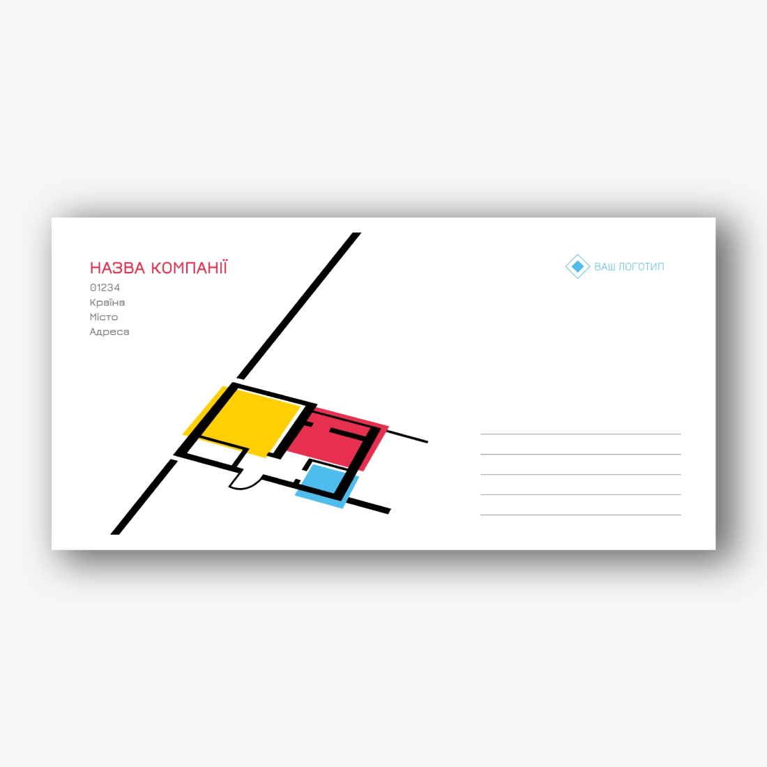 Безкоштовний шаблон фірмового конверту з логотипом для різних компаній та організацій. Створіть макет своїми руками в онлайн-конструкторі конвертів.