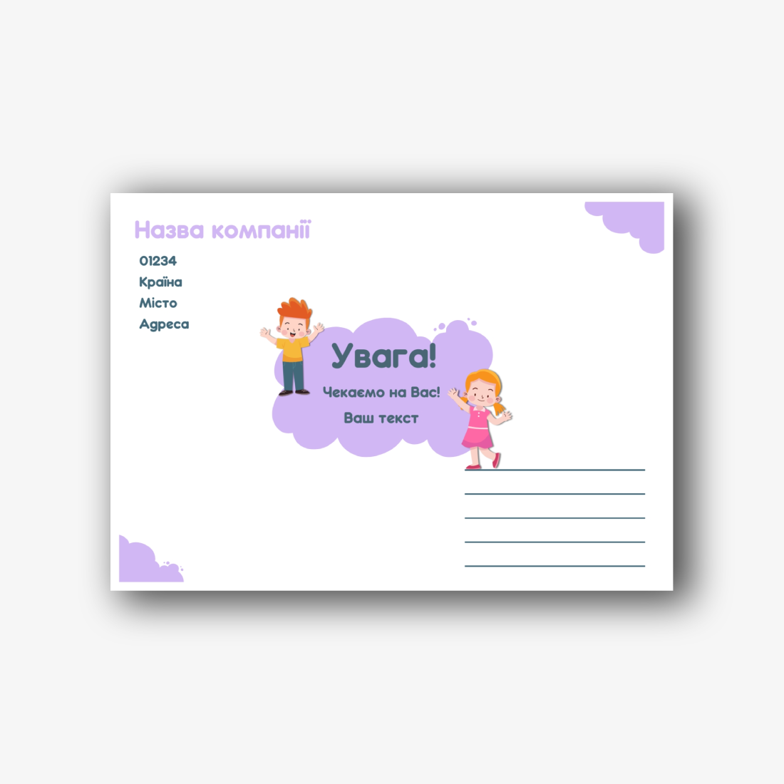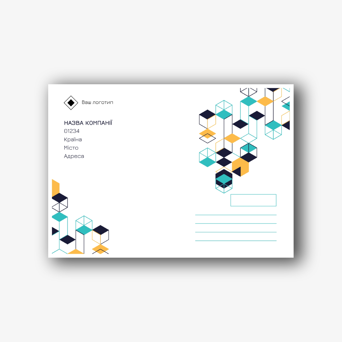 Безкоштовний шаблон поштового конверту для відправки листів, документів. Створіть макет своїми руками в онлайн-конструкторі конвертів.