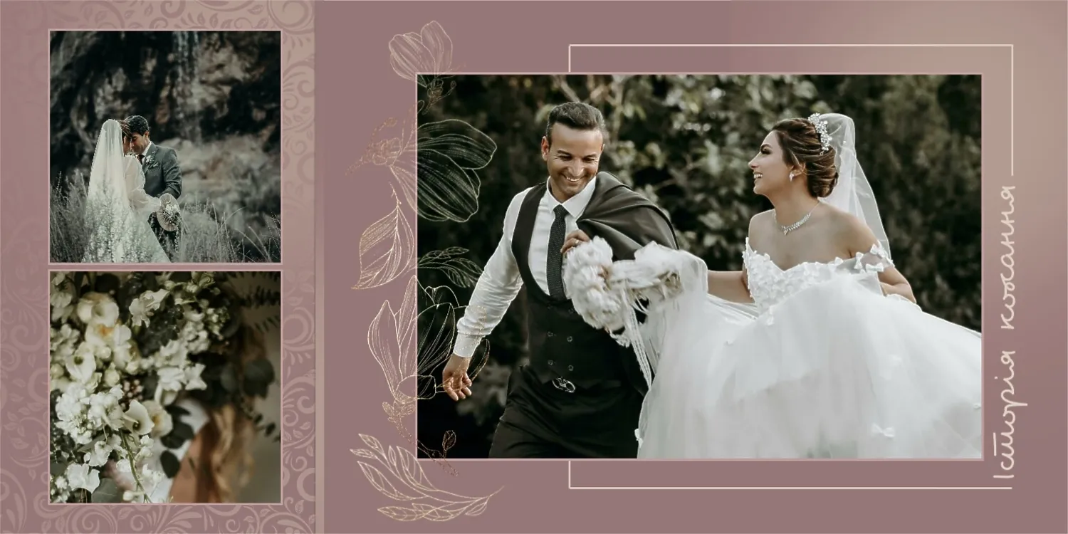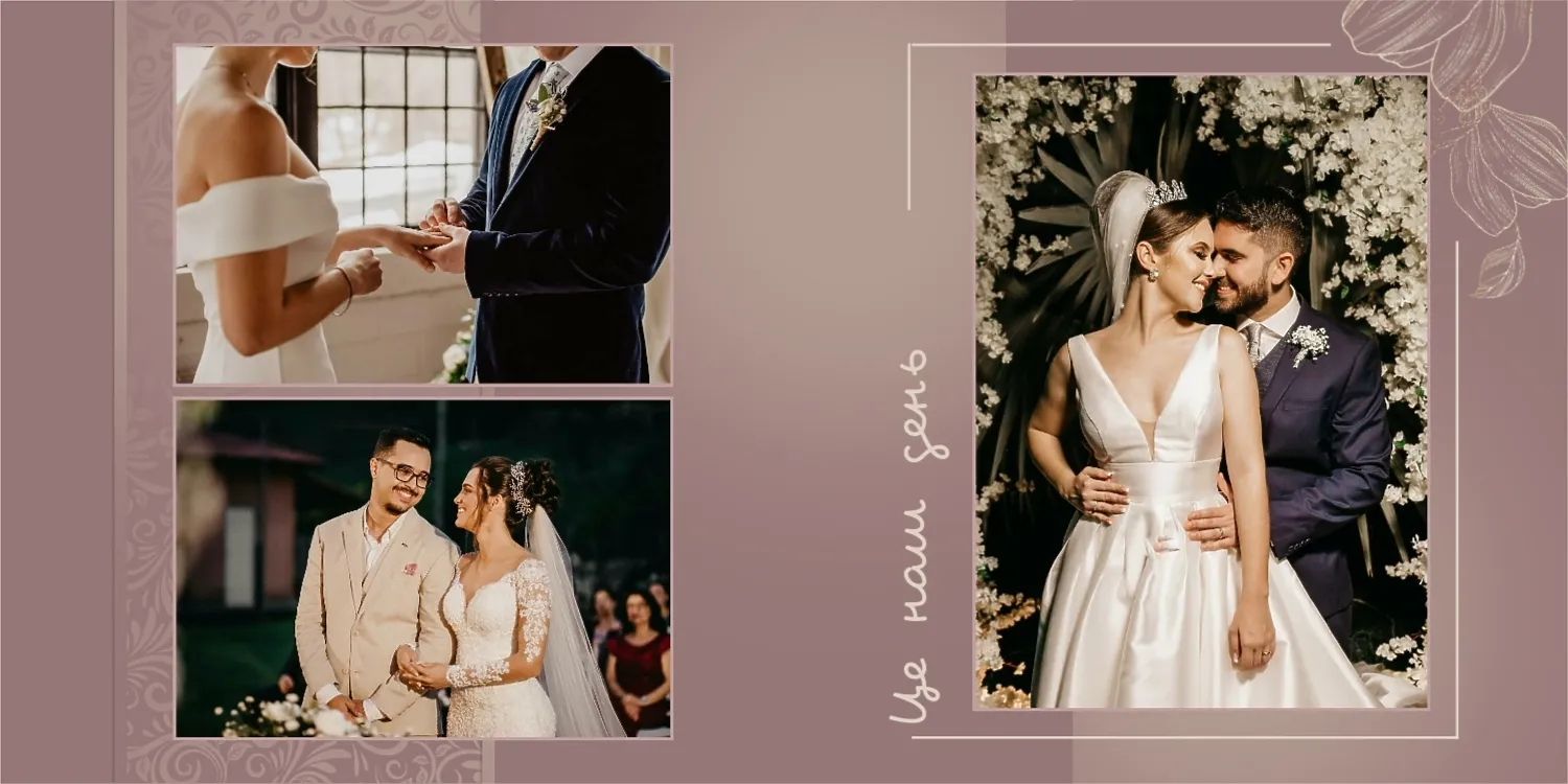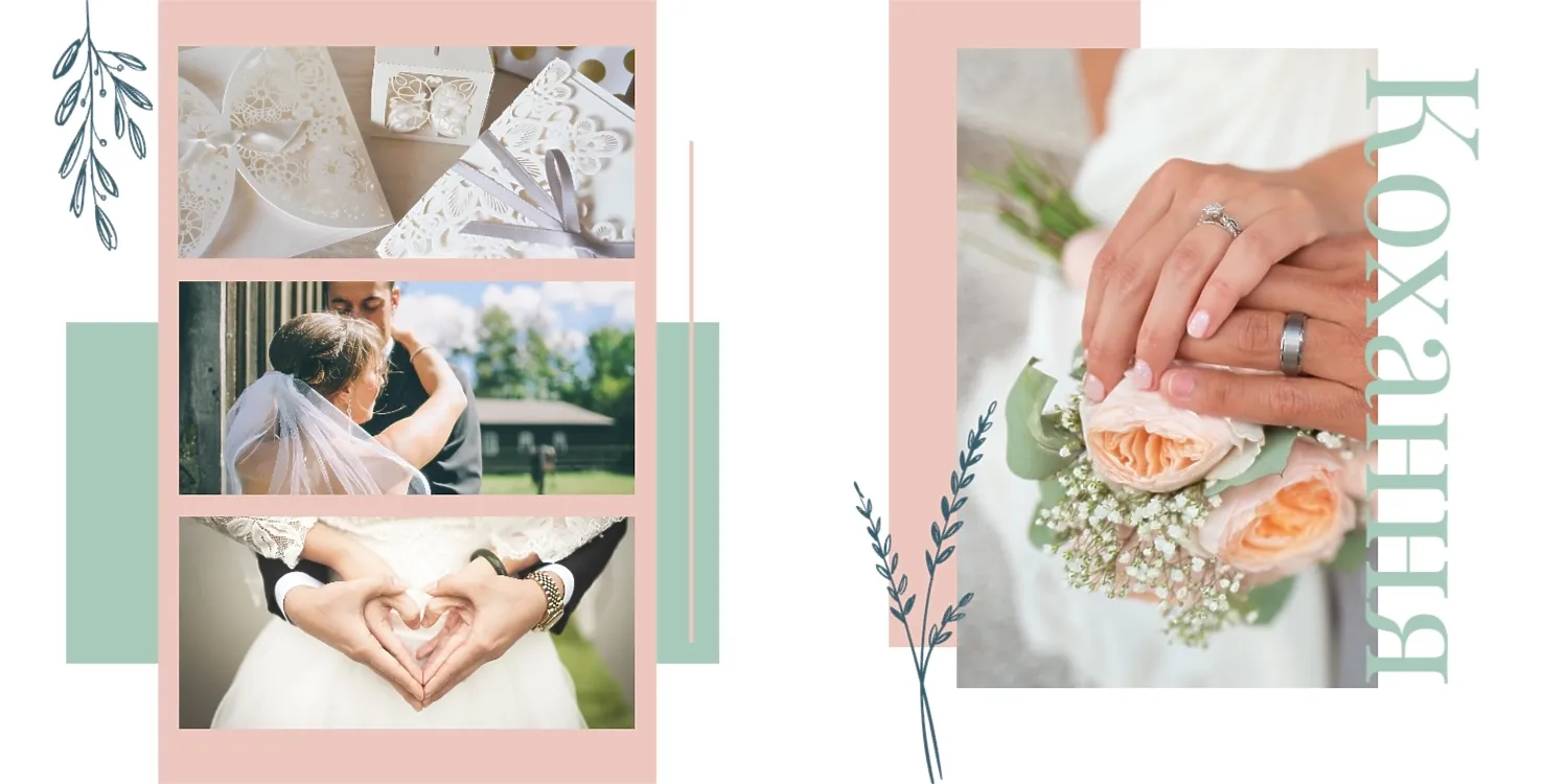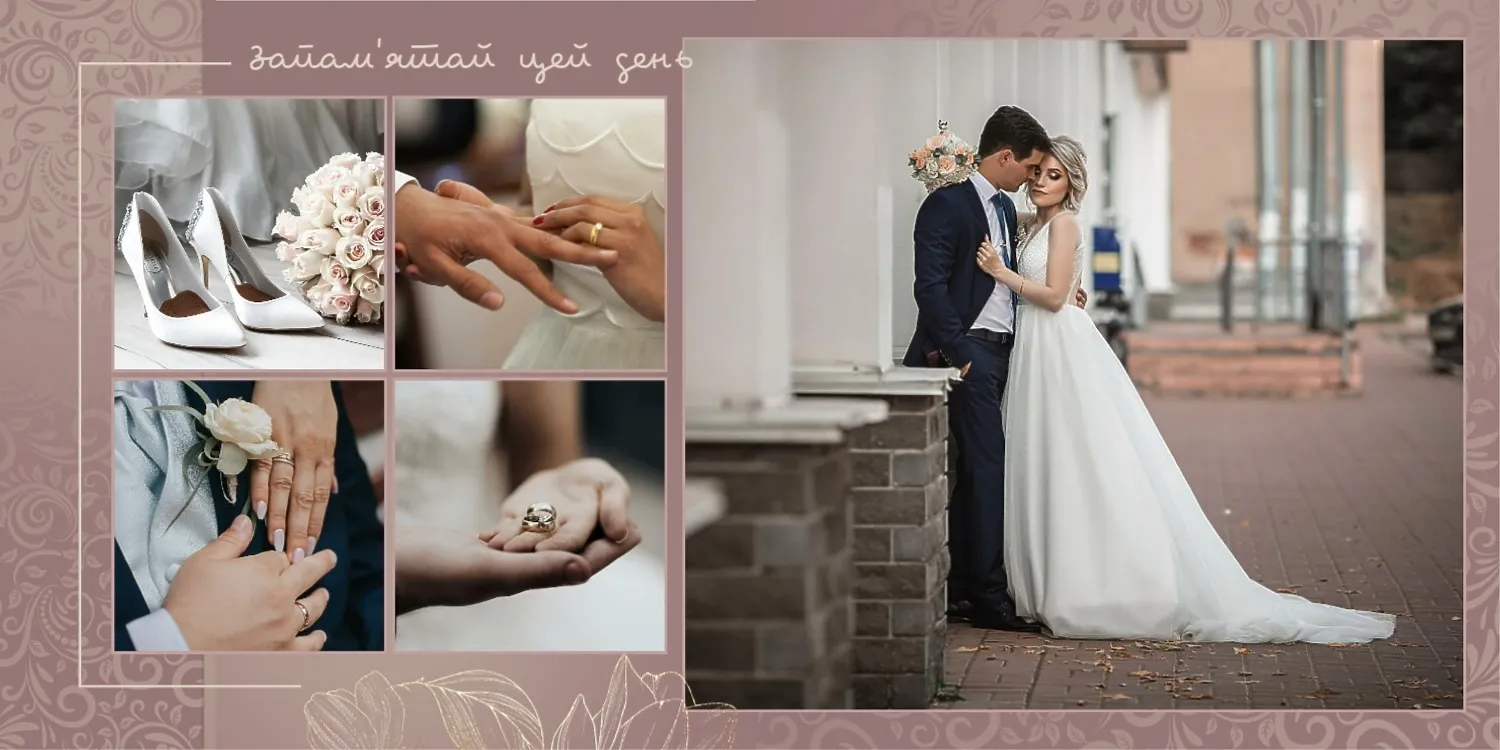 Безкоштовний шаблон весільної фотокниги квадратної. Створіть макет власноруч в онлайн-конструкторі фотокниг.