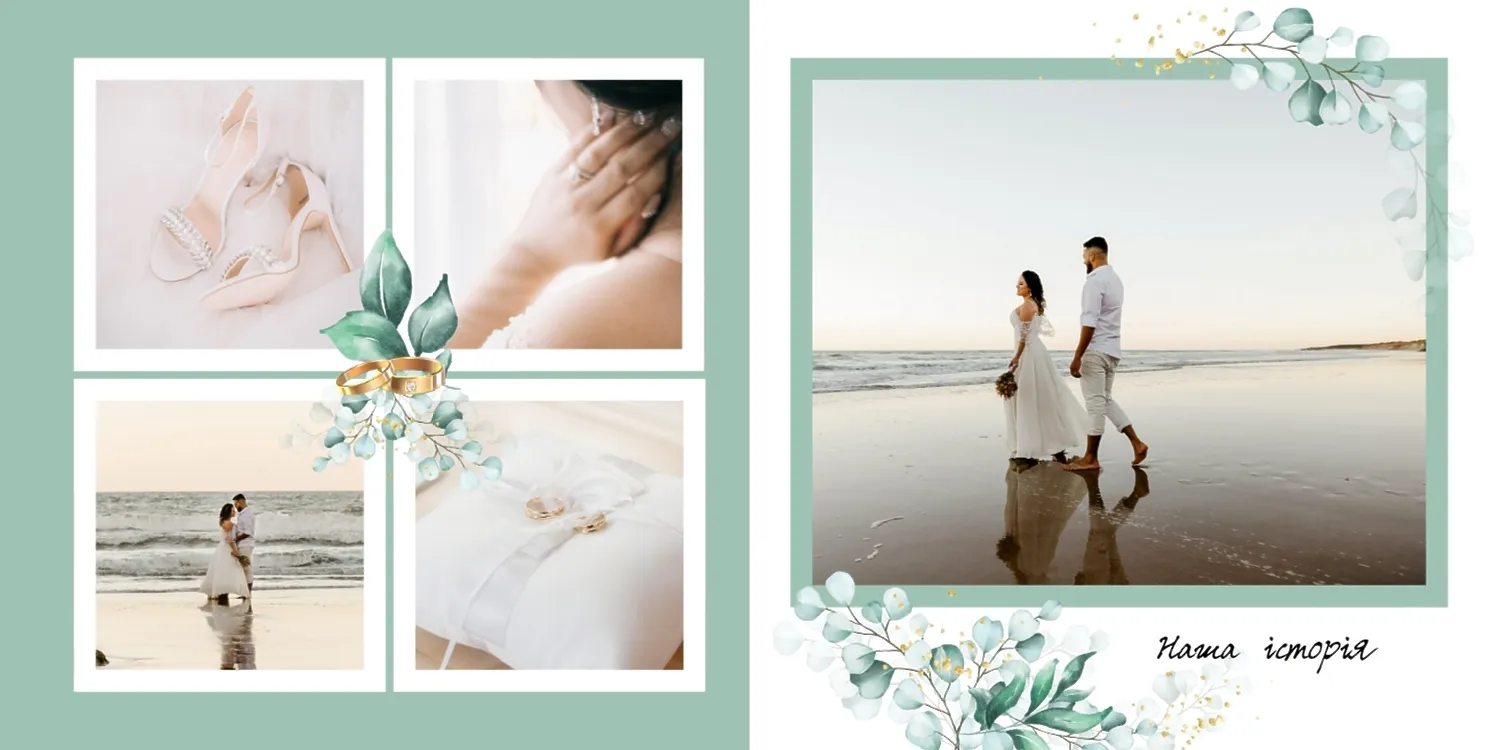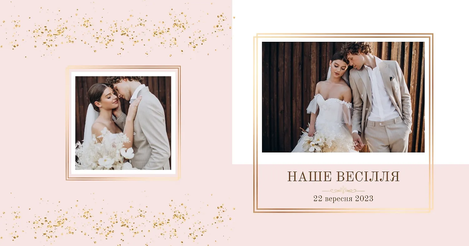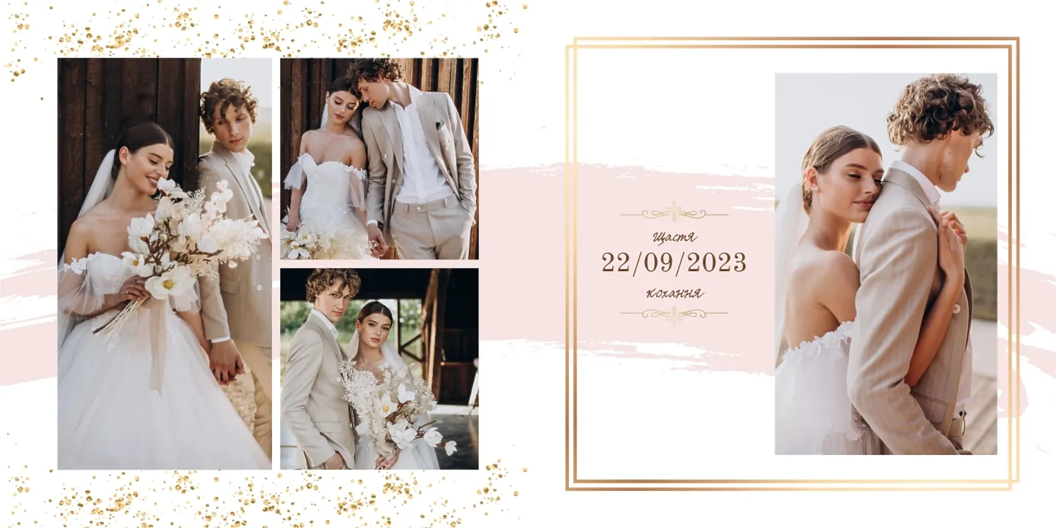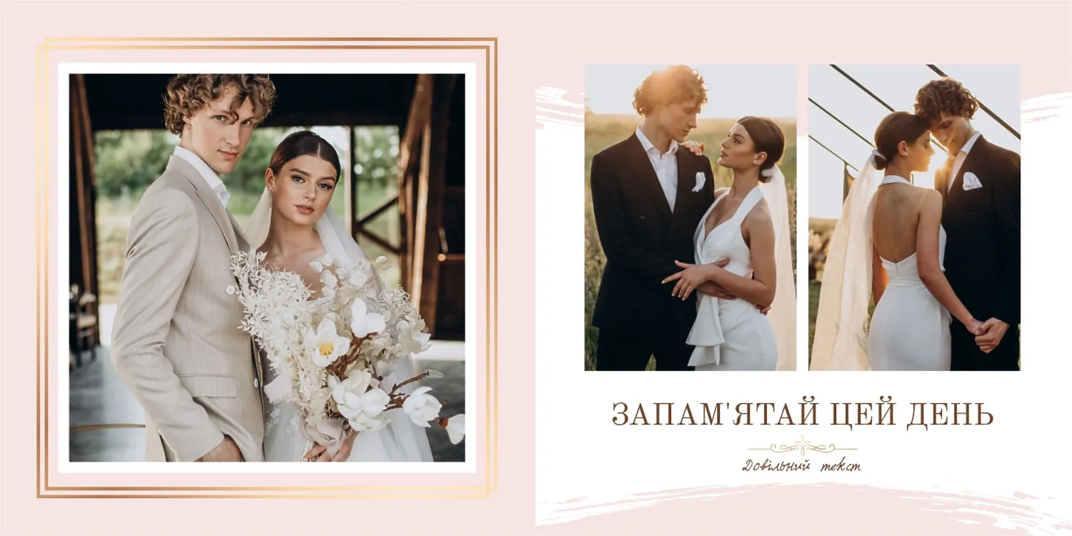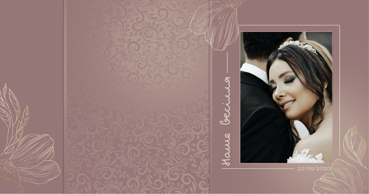 Безкоштовний шаблон весільної фотокниги квадратної. Створіть макет власноруч в онлайн-конструкторі фотокниг.