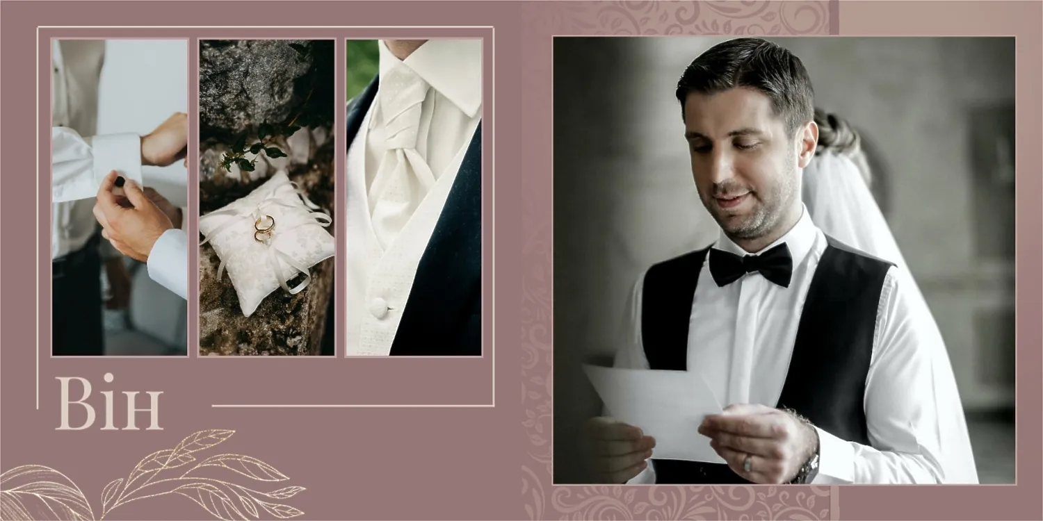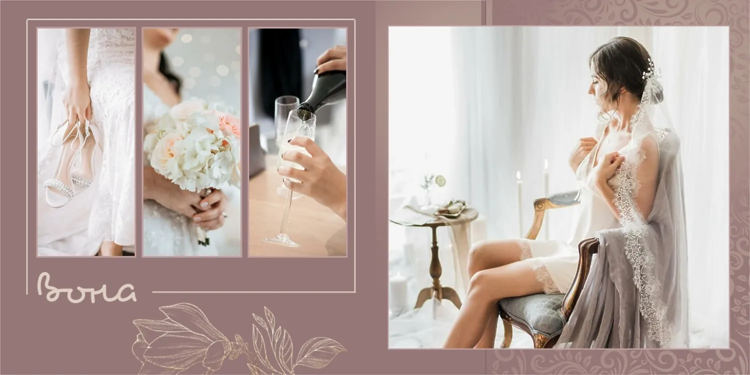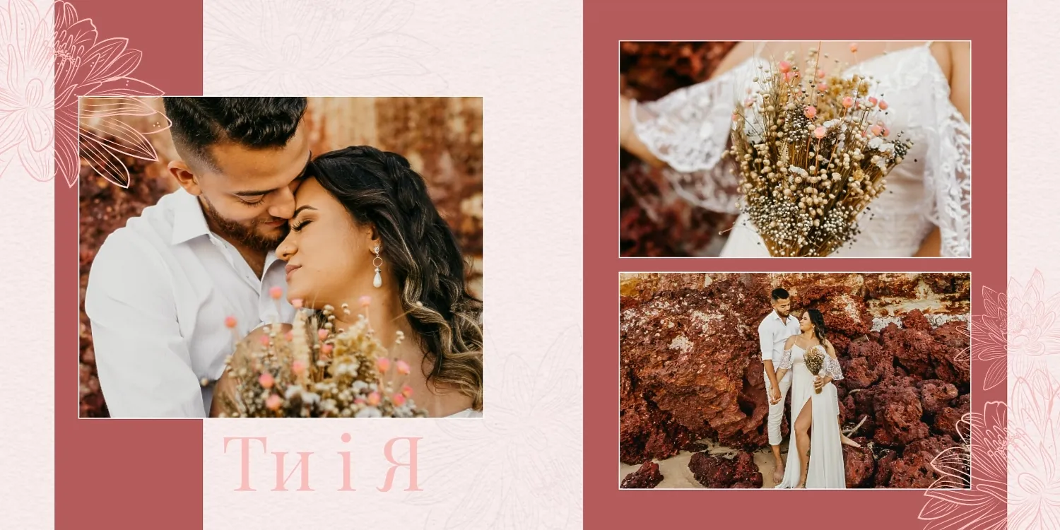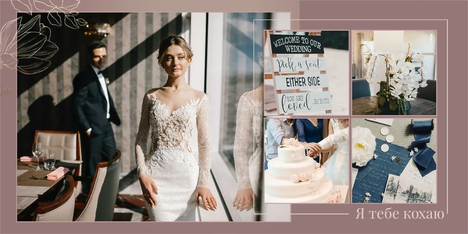 Безкоштовний шаблон весільної фотокниги квадратної. Створіть макет власноруч в онлайн-конструкторі фотокниг.