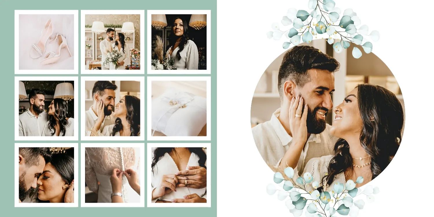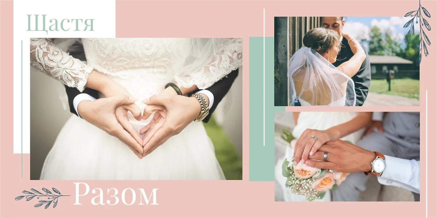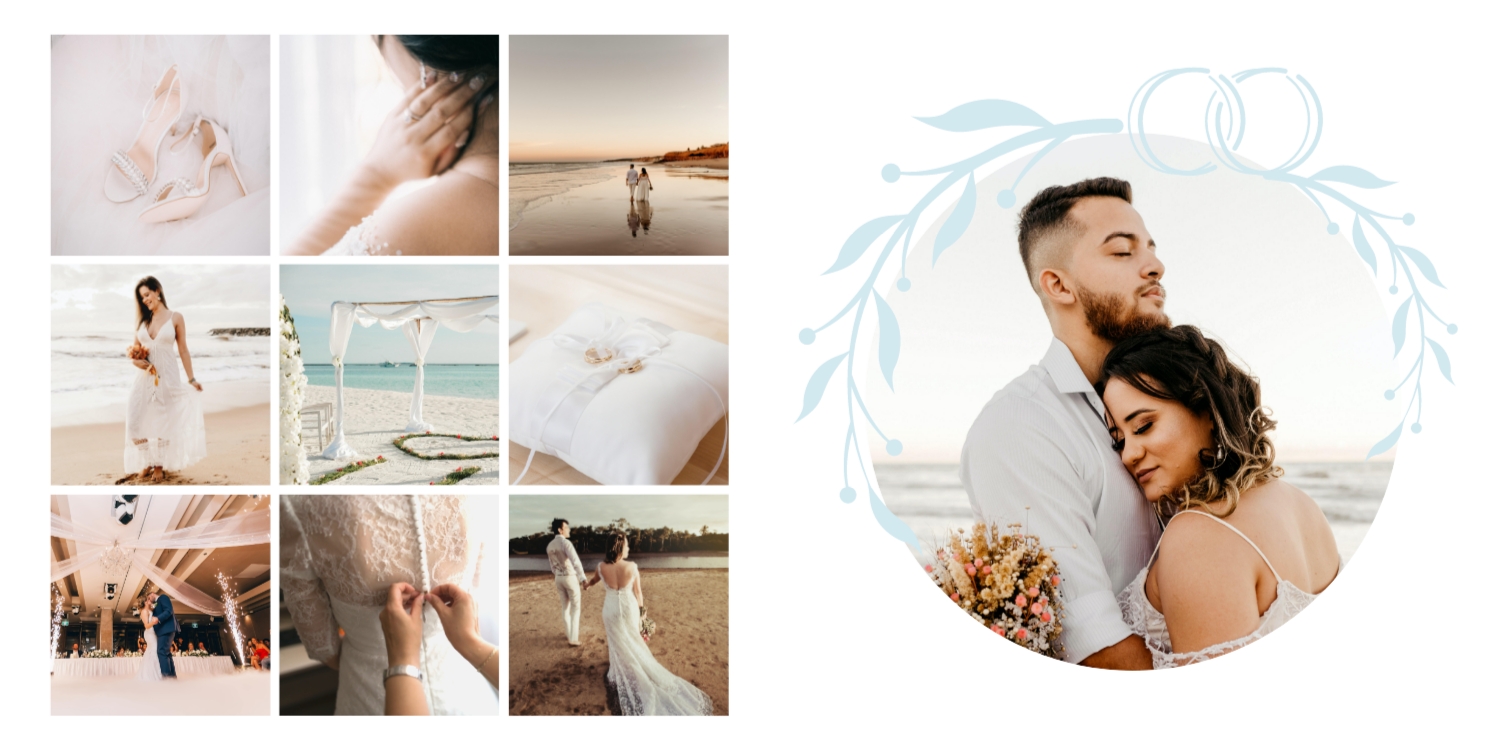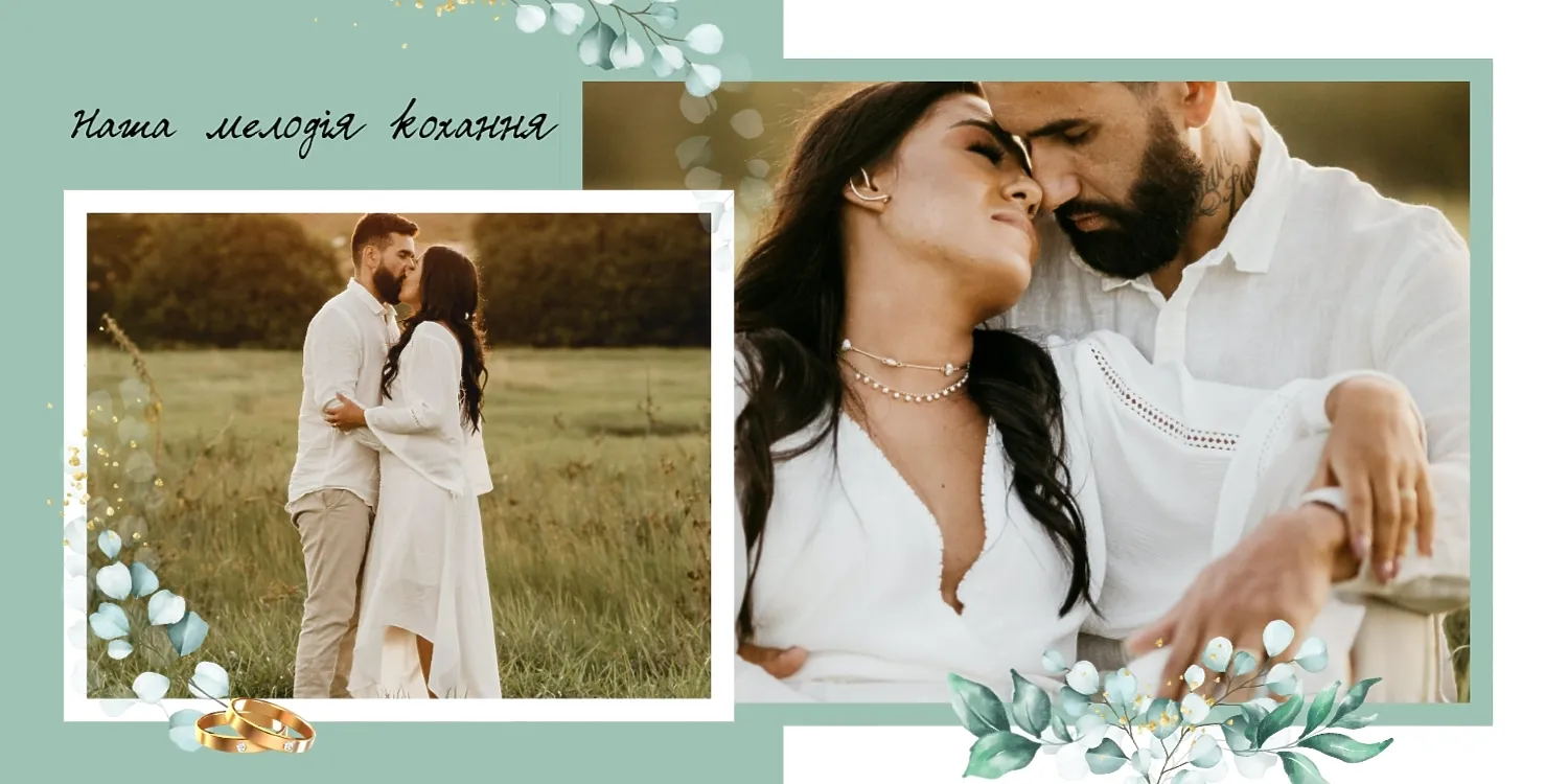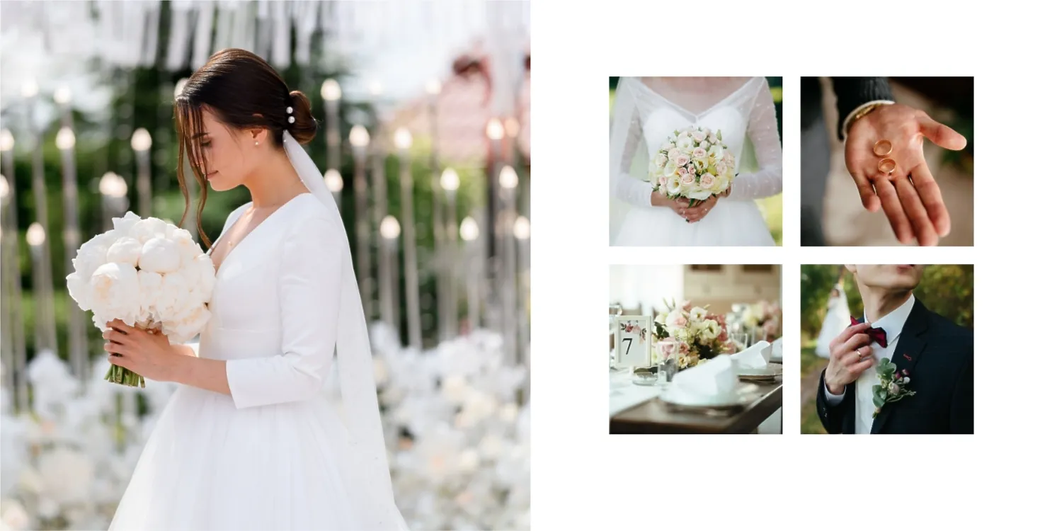 Безкоштовний шаблон весільної фотокниги квадратної. Створіть макет власноруч в онлайн-конструкторі фотокниг.