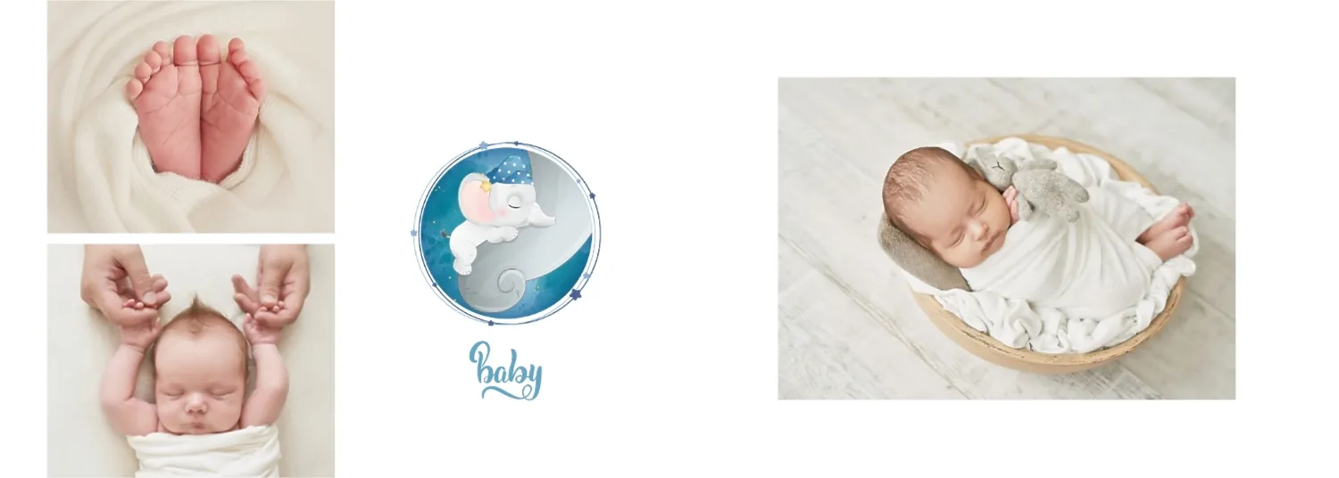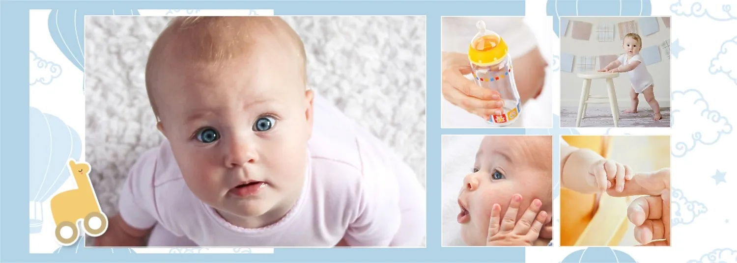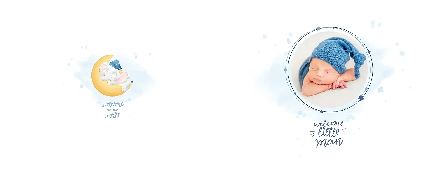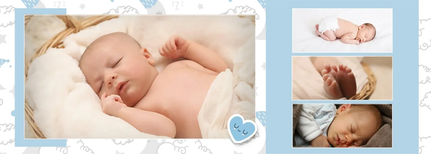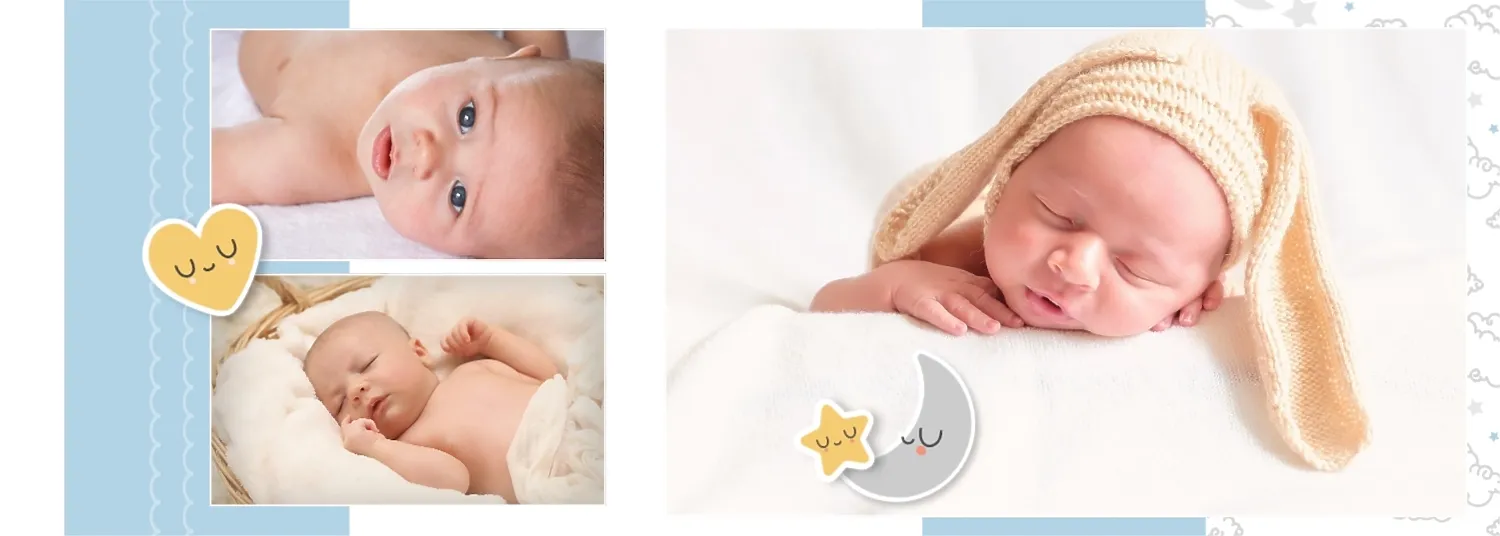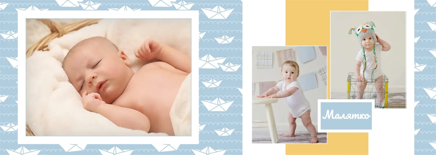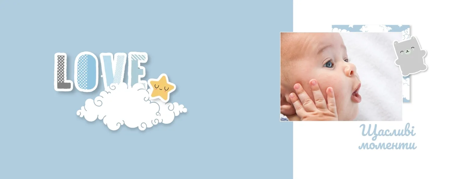 Безкоштовний шаблон дитячої фотокниги новонародженого хлопчика. Створіть макет власноруч в онлайн-конструкторі фотокниг.