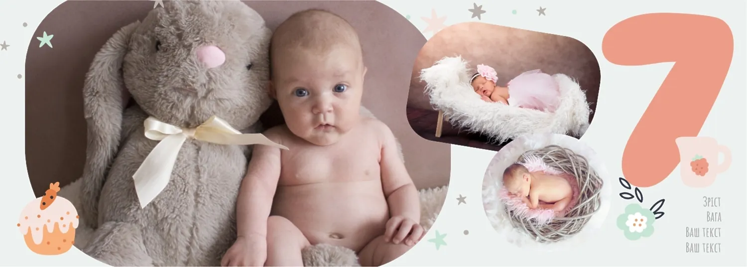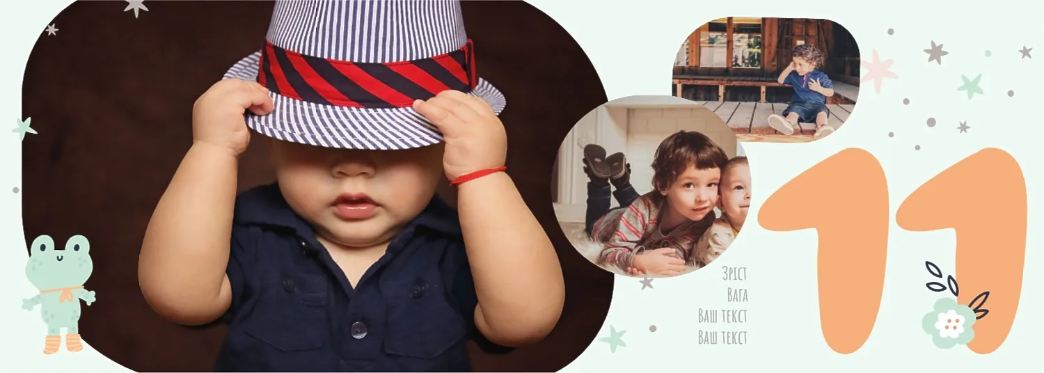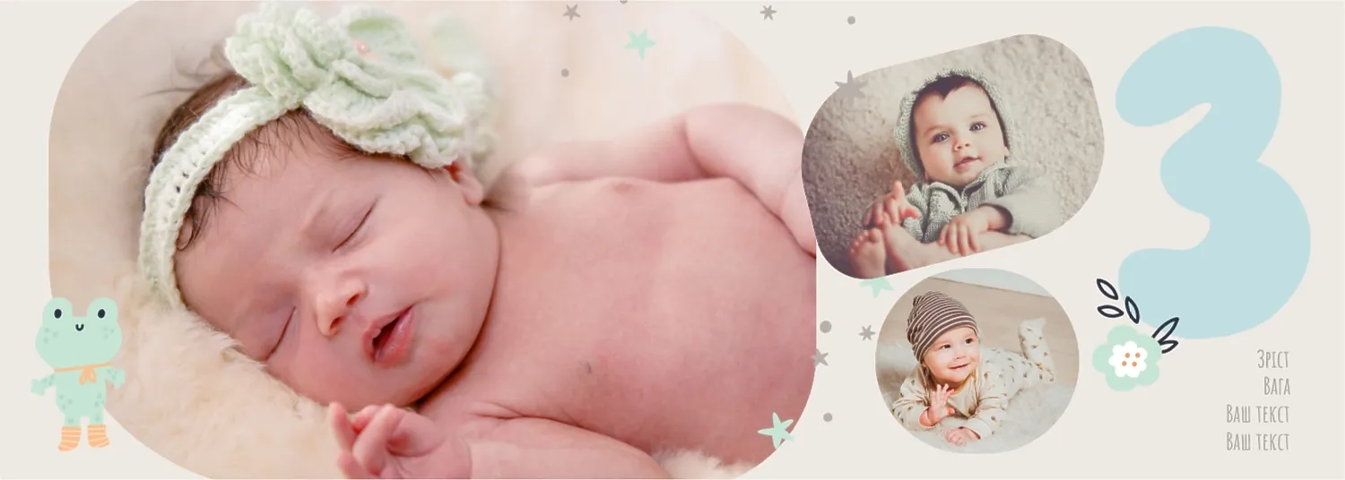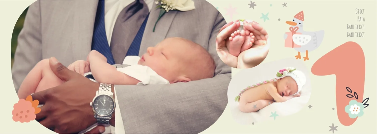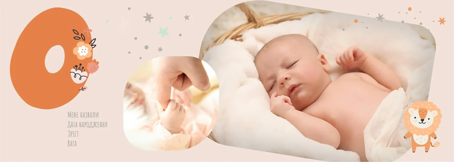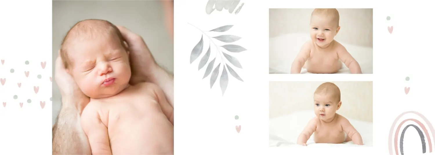 Безкоштовний шаблон дитячої фотокниги новонародженого хлопчика. Створіть макет власноруч в онлайн-конструкторі фотокниг.