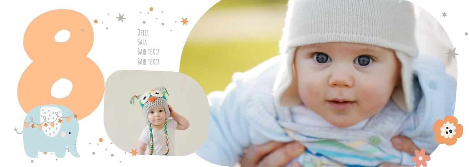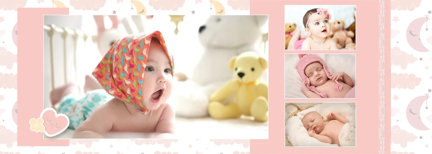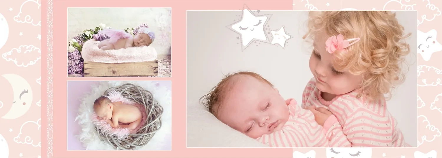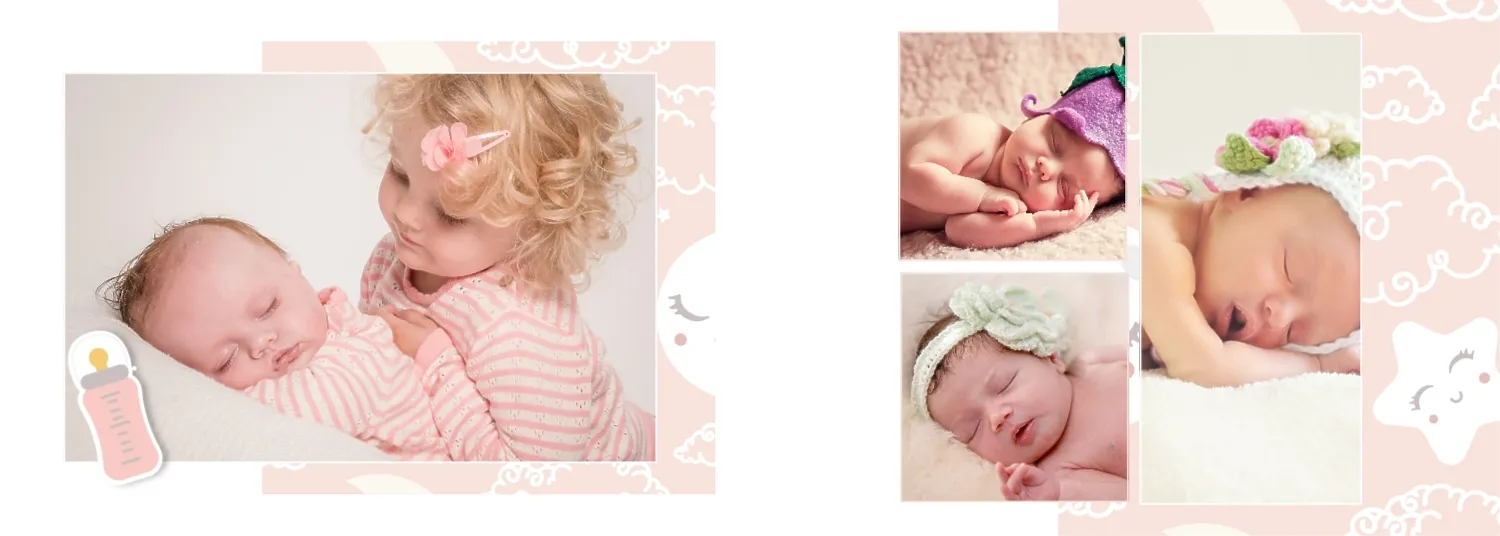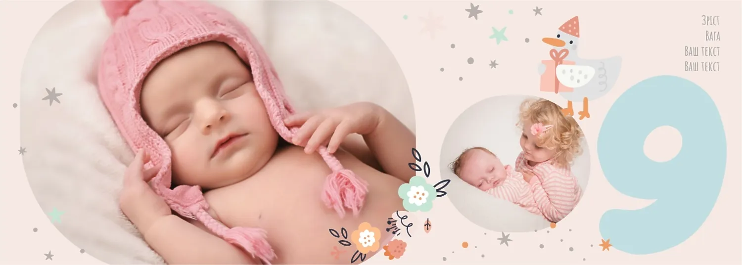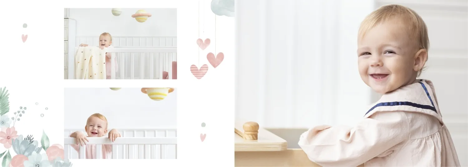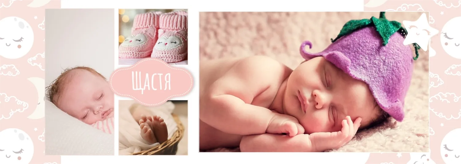 Безкоштовний шаблон дитячої фотокниги новонародженого хлопчика. Створіть макет власноруч в онлайн-конструкторі фотокниг.