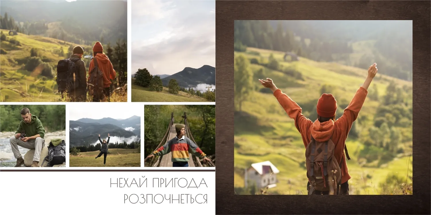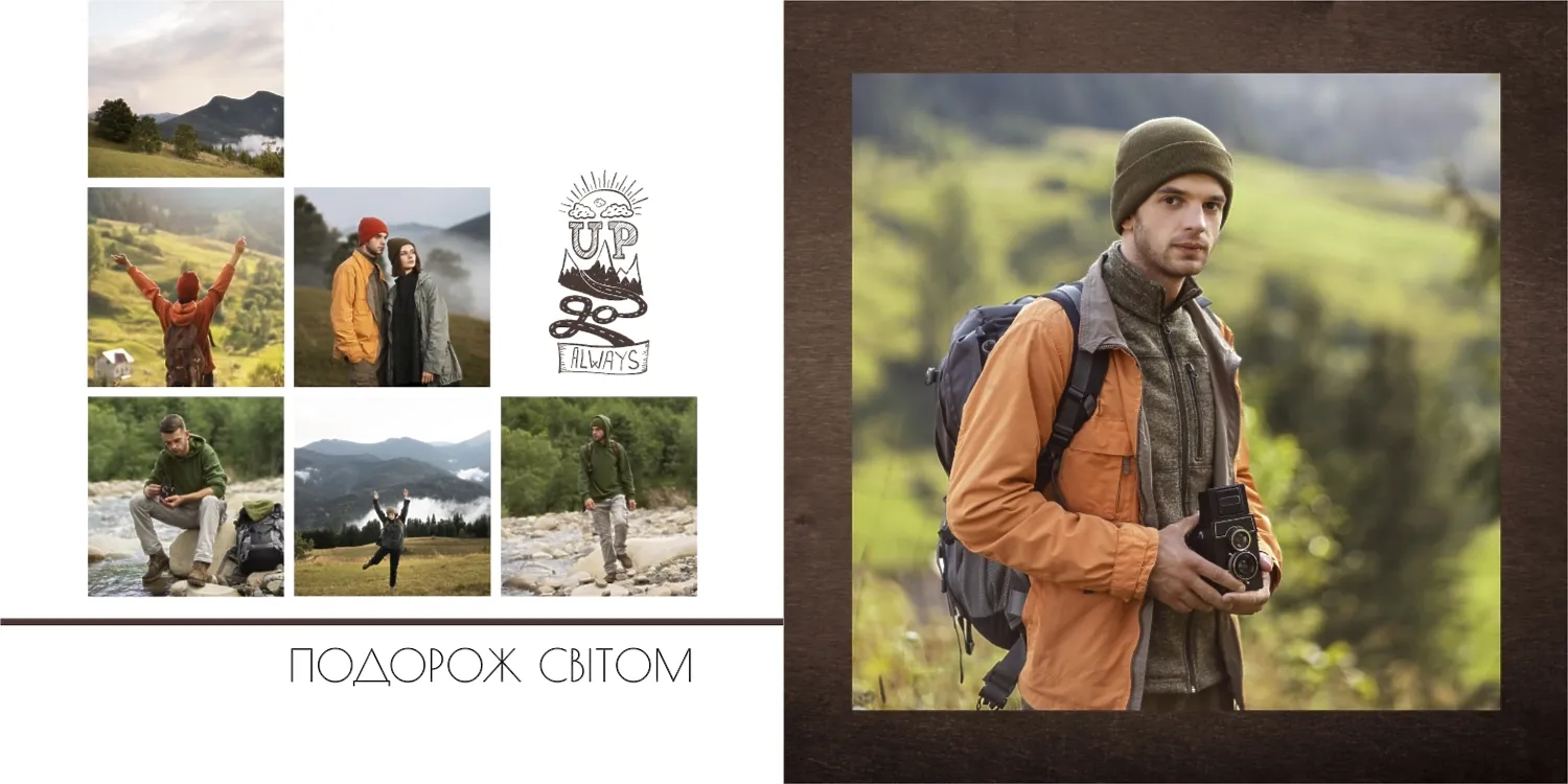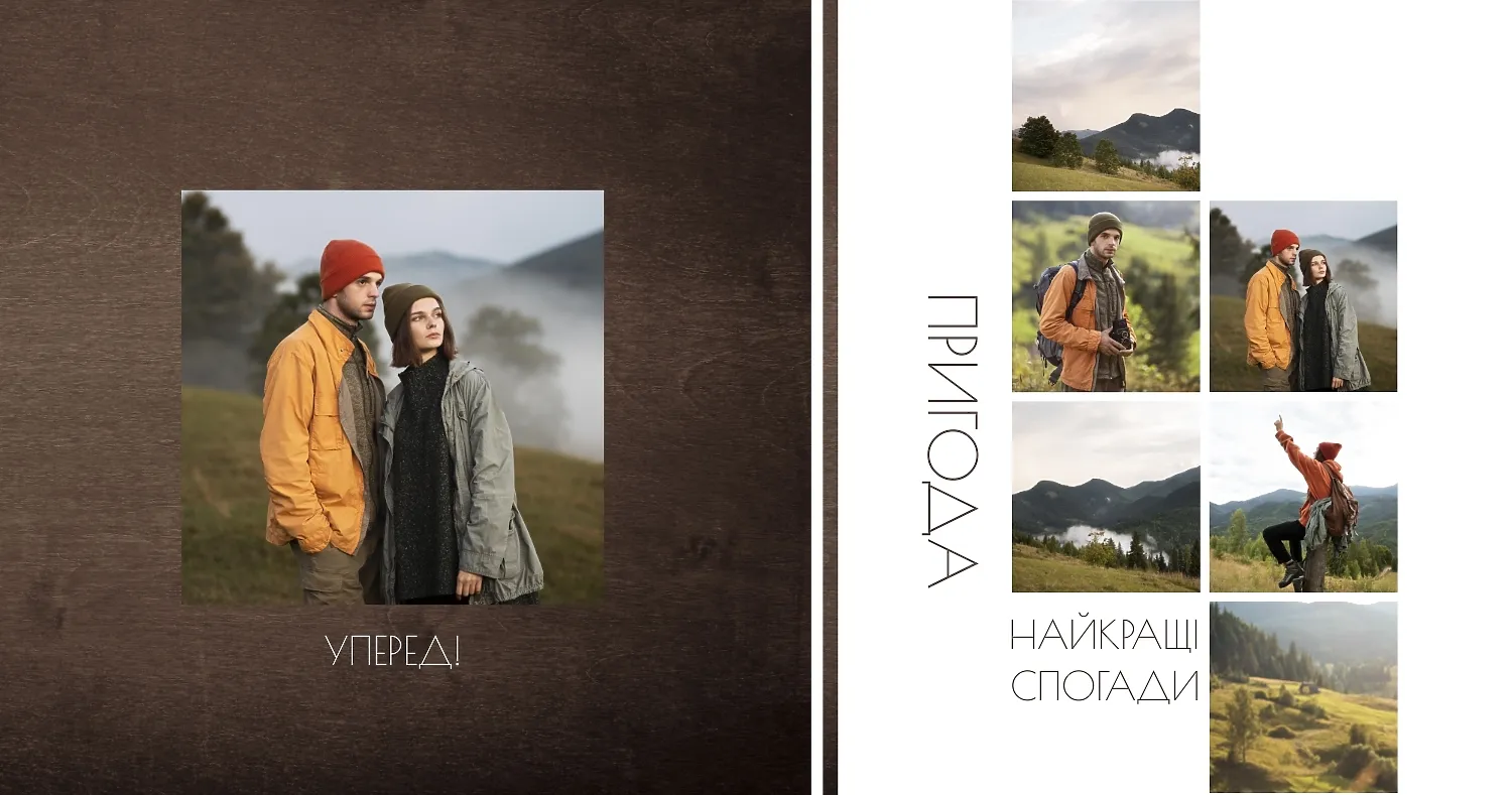Безкоштовний шаблон фотокниги подорожей з найкращими спогадами. Створіть макет власноруч в онлайн-конструкторі фотокниг.