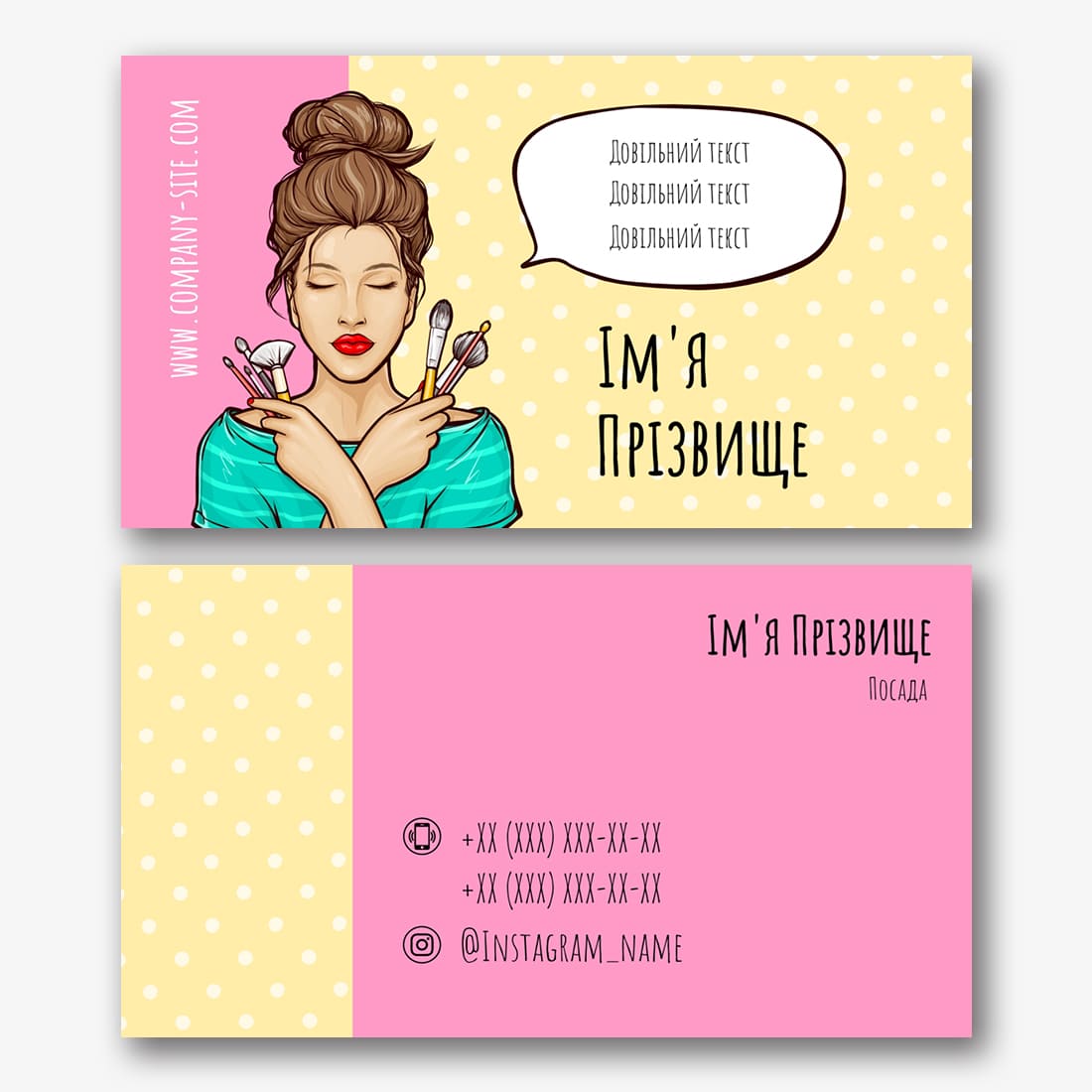 Безкоштовний шаблон візитки для салона краси, візажиста, майстра макіяжу. Створіть макет візитки своїми руками в конструкторі візиток.