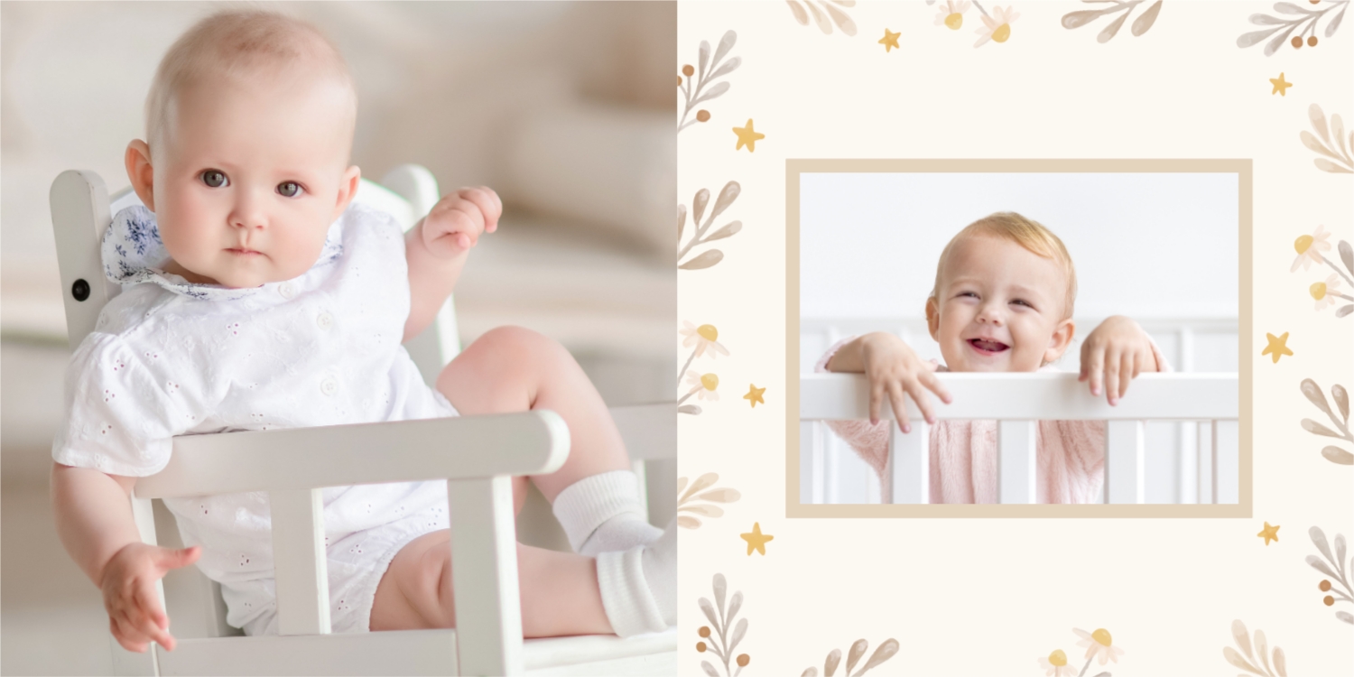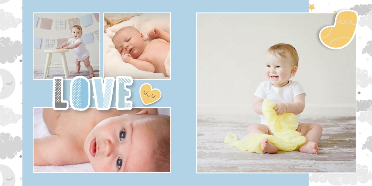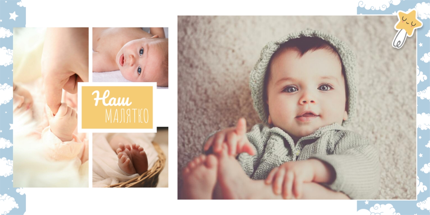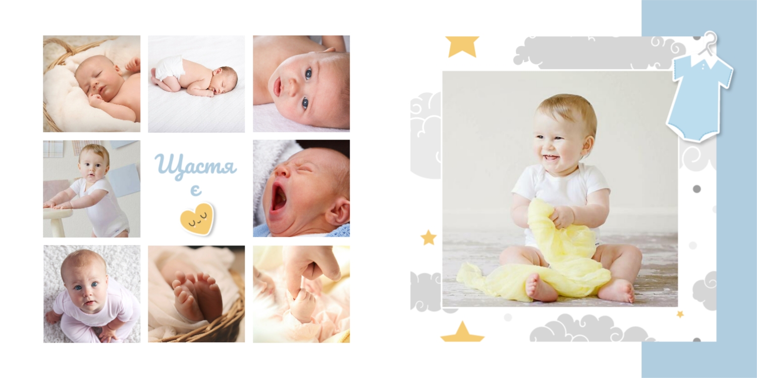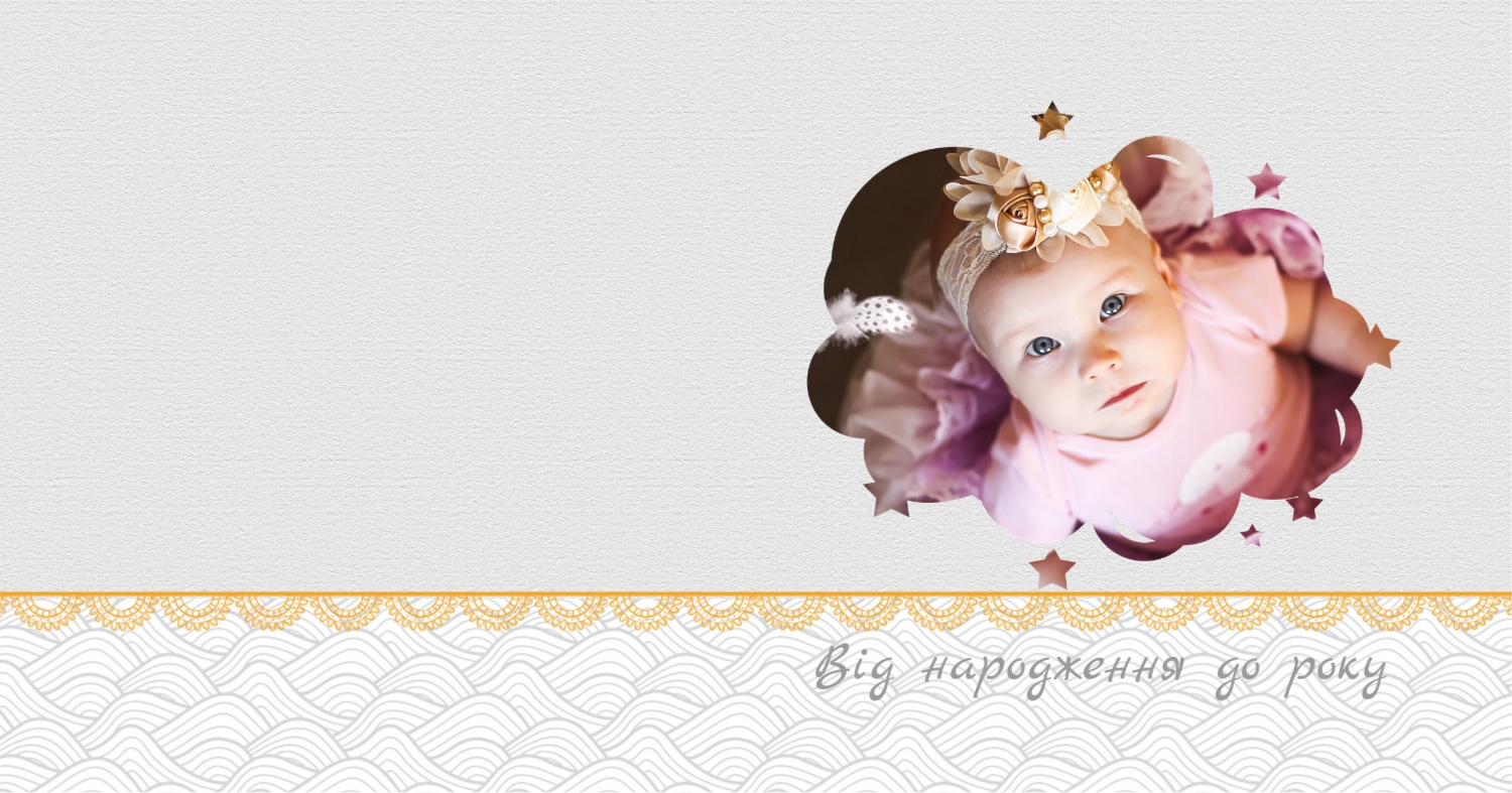 Безкоштовний шаблон дитячої фотокниги від народження до року. Створіть макет власноруч в онлайн-конструкторі фотокниг.