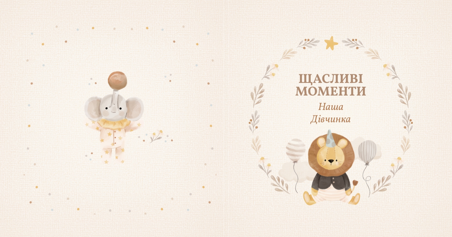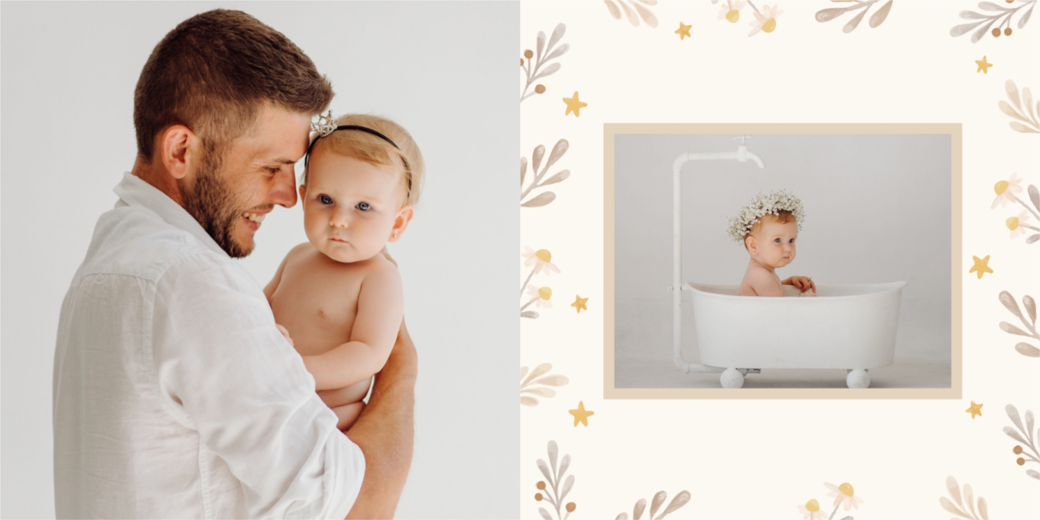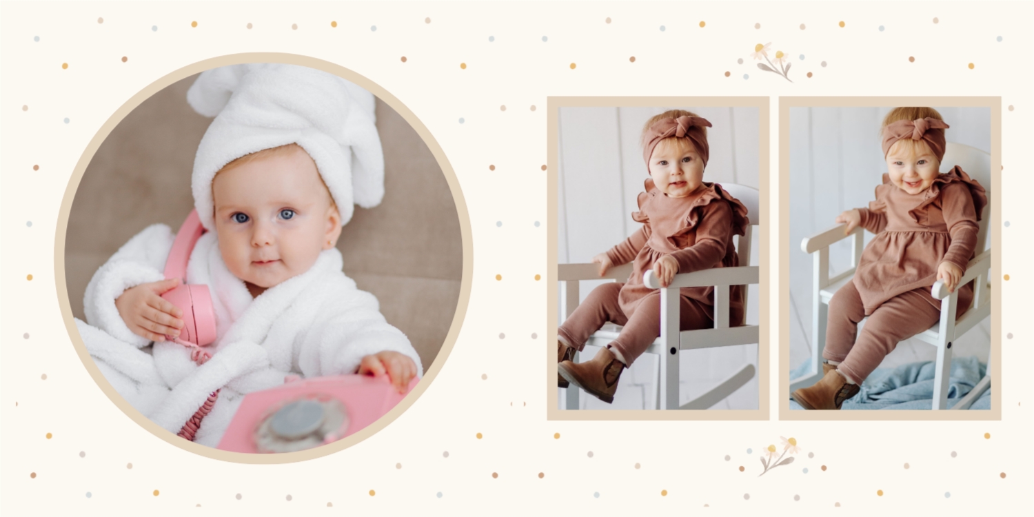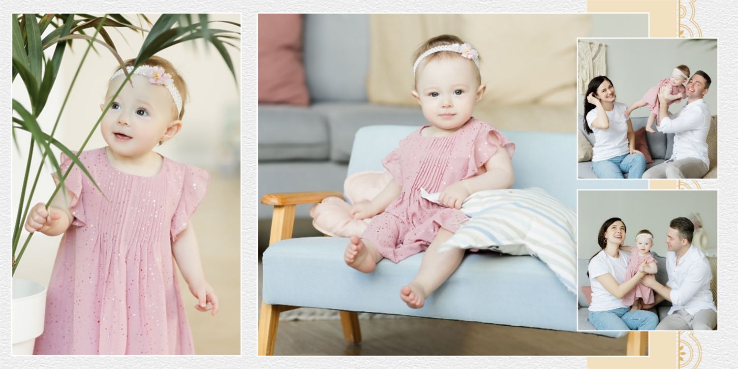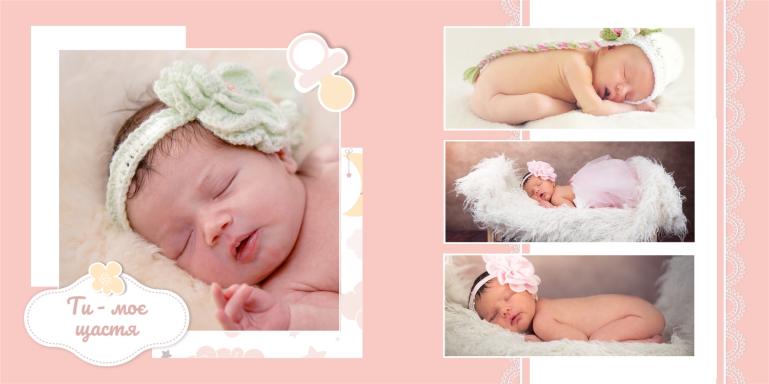 Безкоштовний шаблон дитячої фотокниги від народження до року. Створіть макет власноруч в онлайн-конструкторі фотокниг.