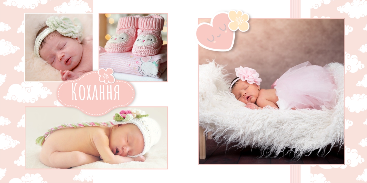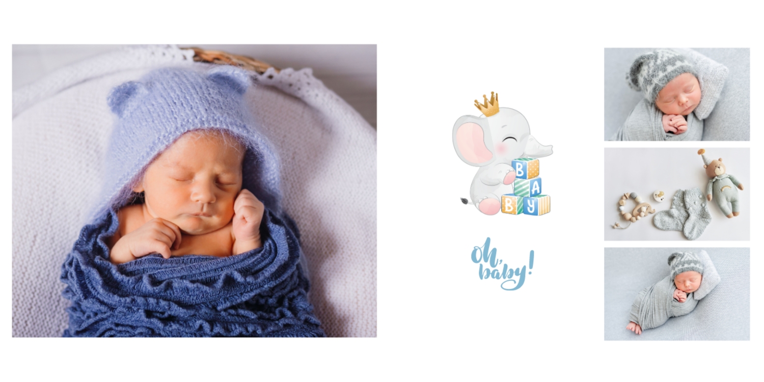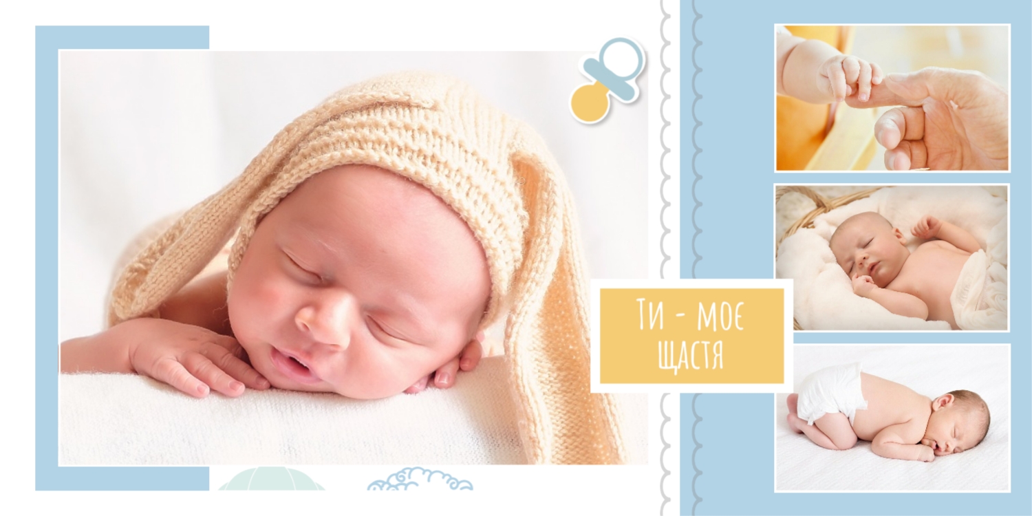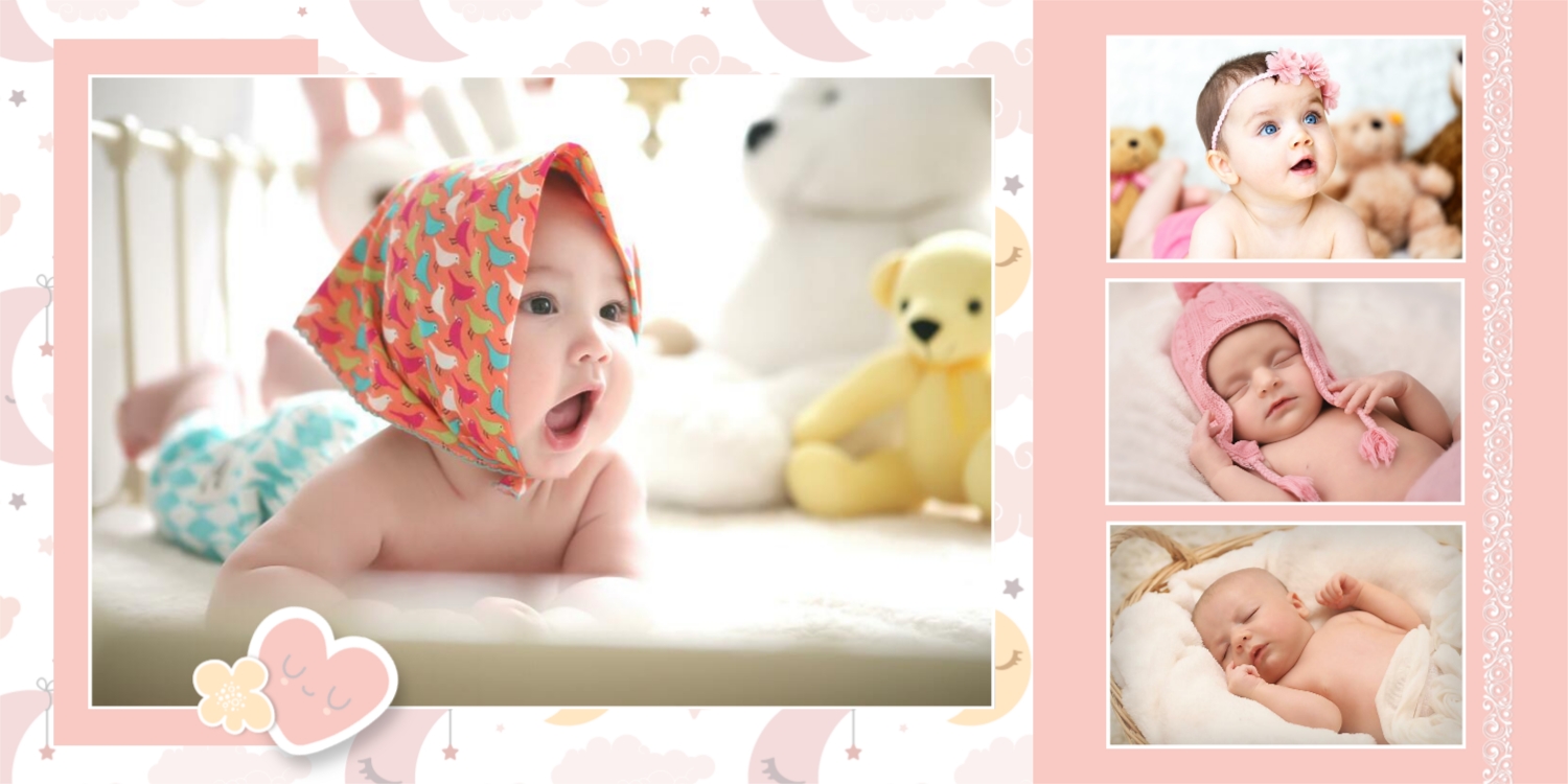 Безкоштовний шаблон дитячої фотокниги від народження до року. Створіть макет власноруч в онлайн-конструкторі фотокниг.